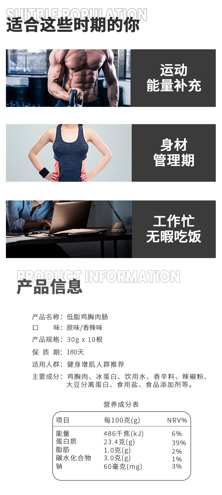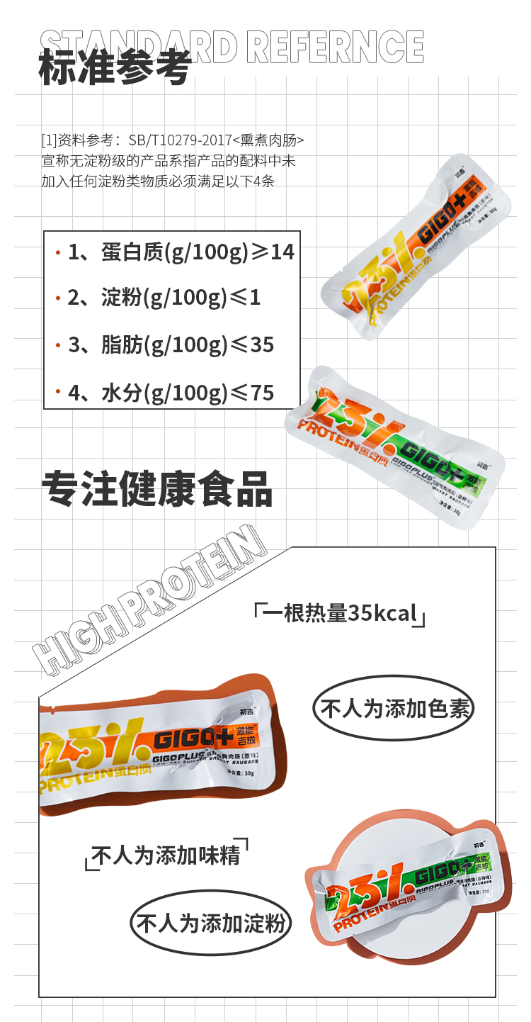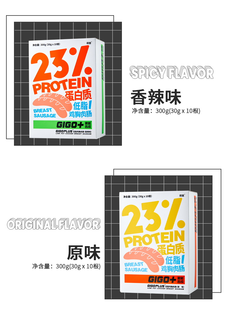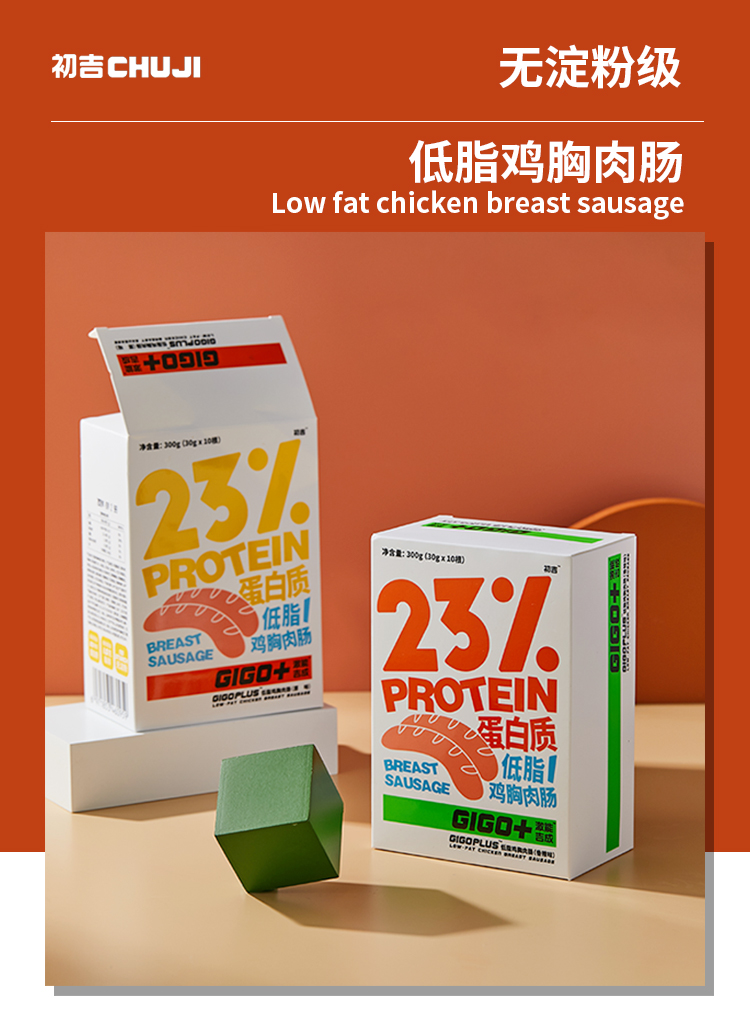 初吉低脂鸡胸肉肠无淀粉即食健身饱腹代餐食品30g*10根/盒