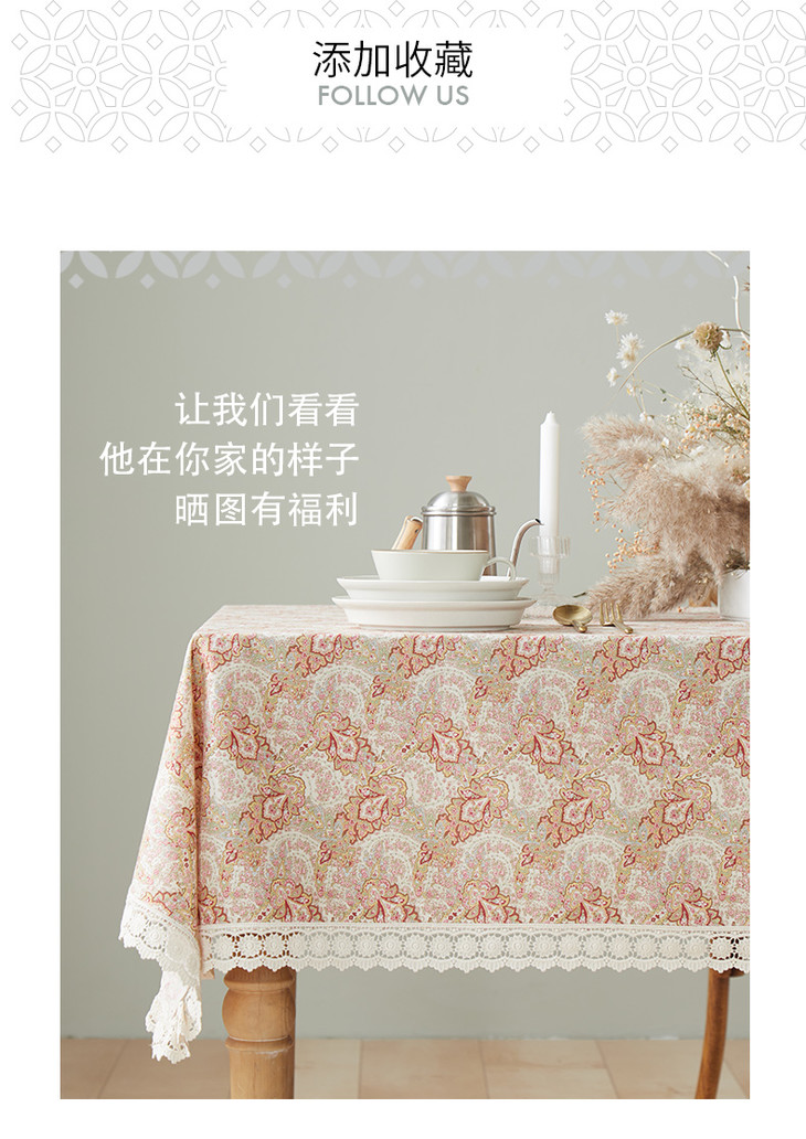 佩斯利蕾丝花边餐桌布艺全棉方桌布