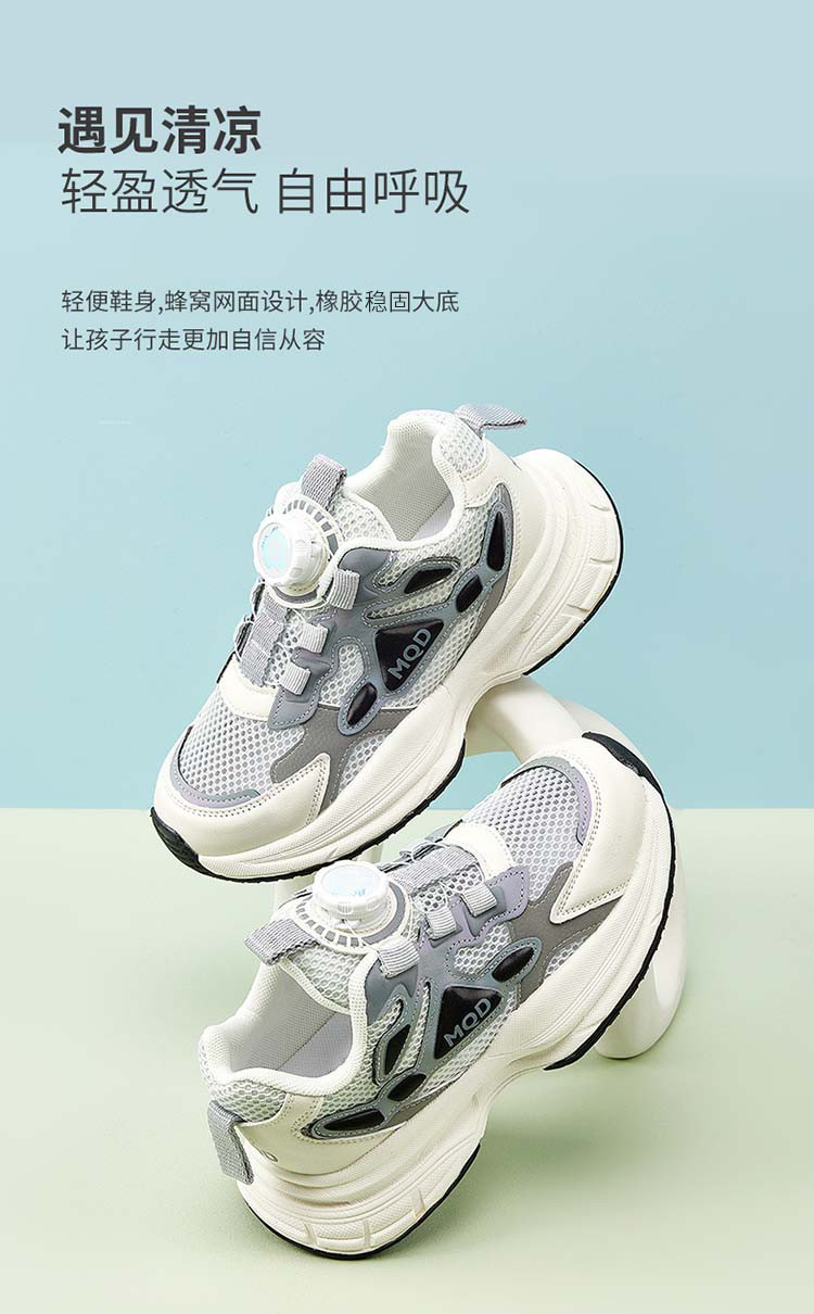 【ZY马骑顿】单网透气儿童夏季网面男童旋钮扣透气轻便女童运动鞋