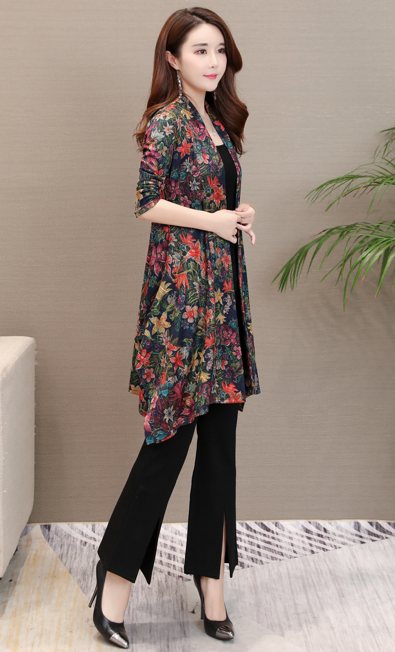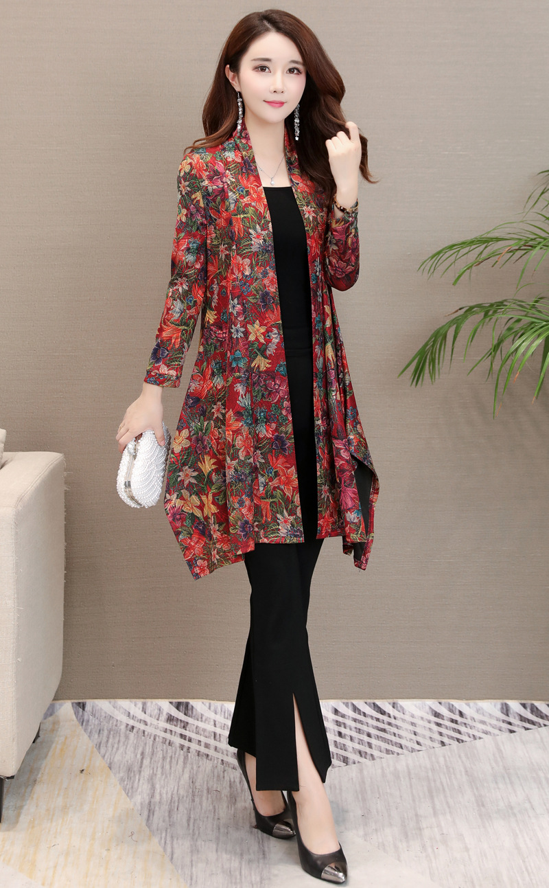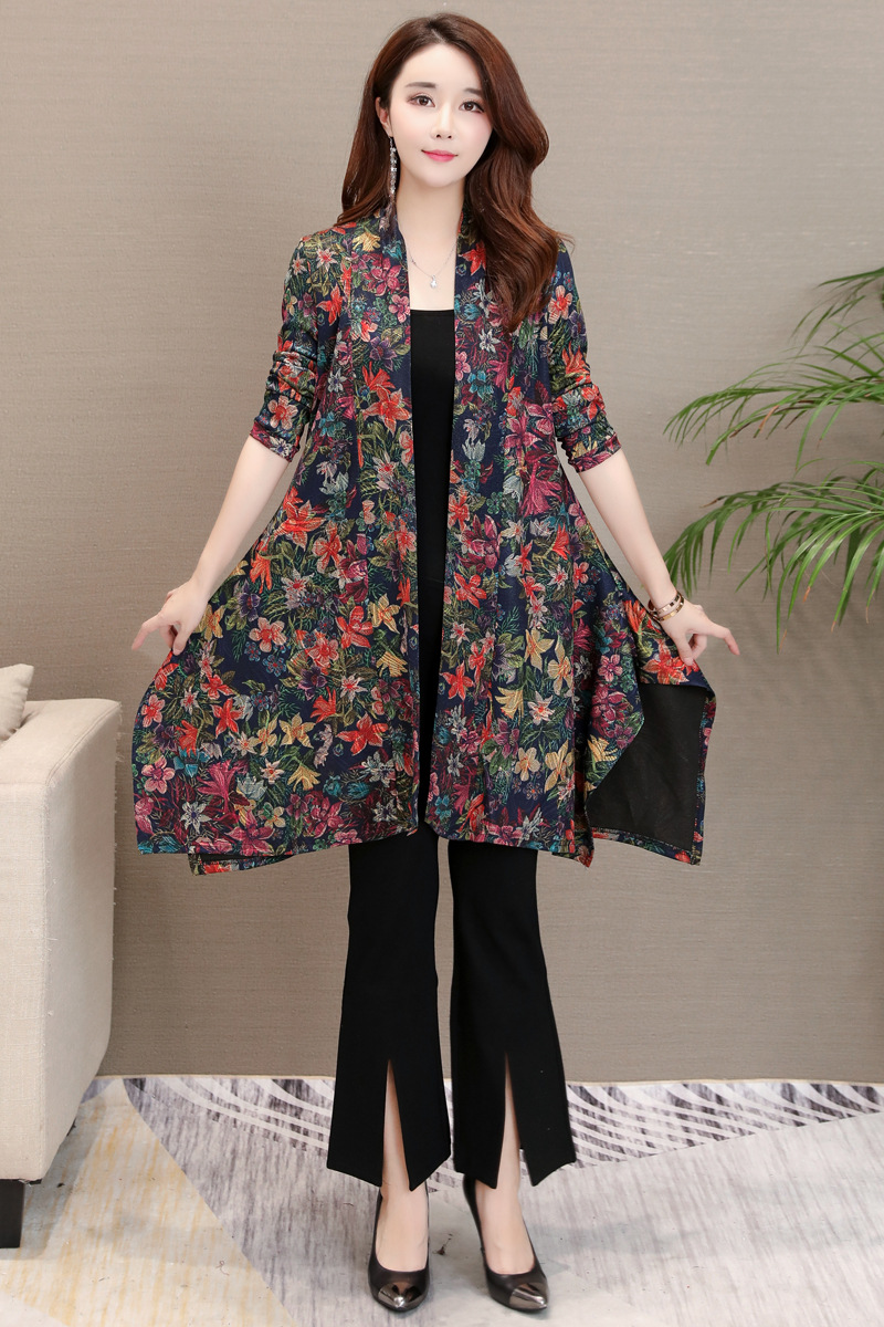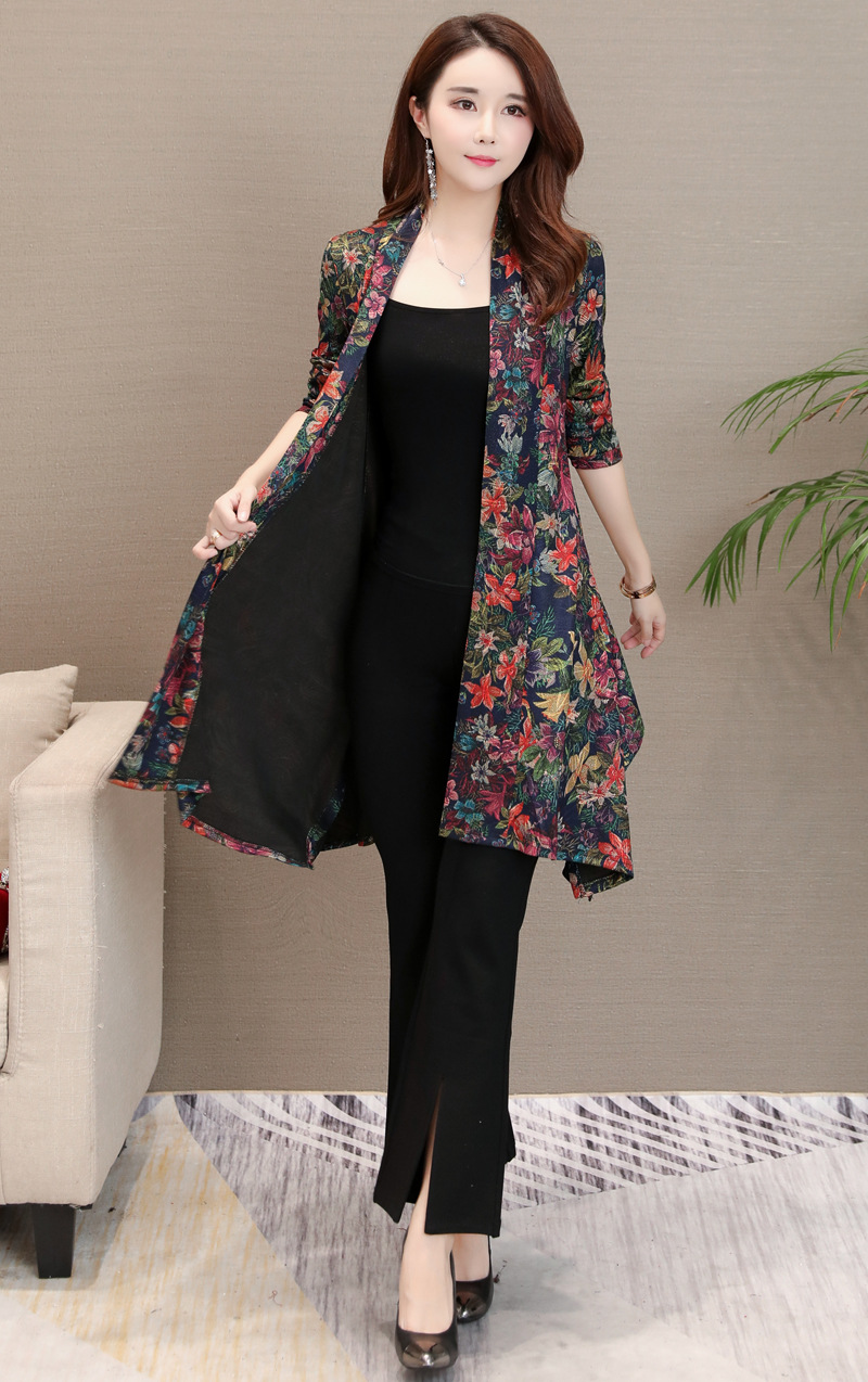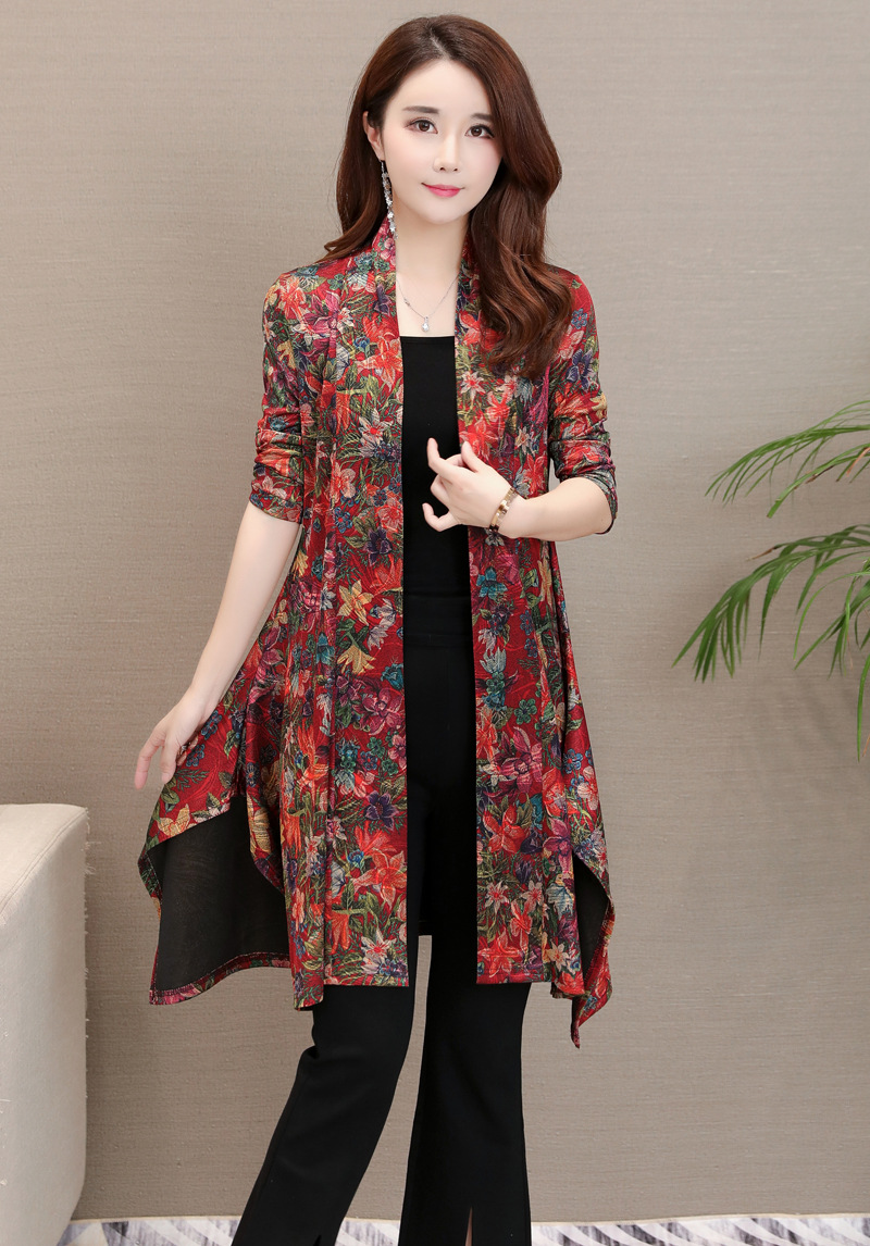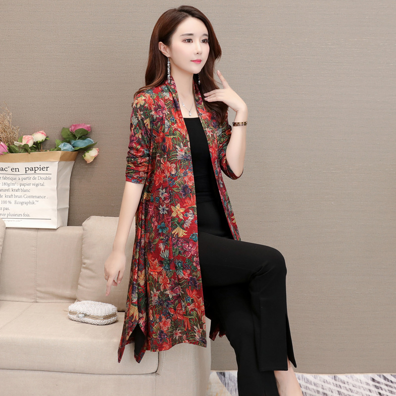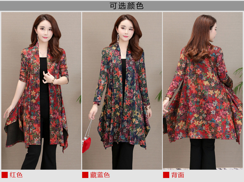 DS-2726秋季新款韩版复古印花松显瘦开衫上衣