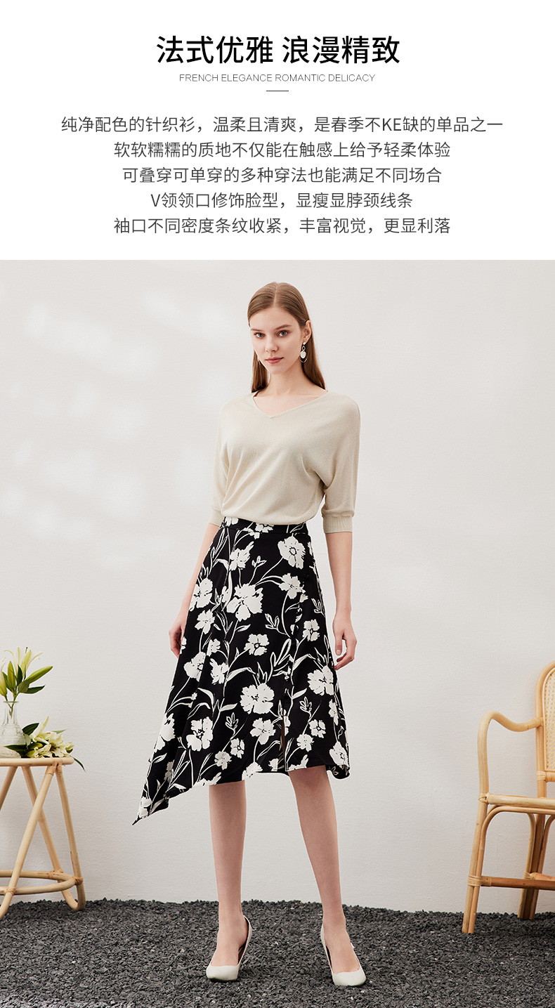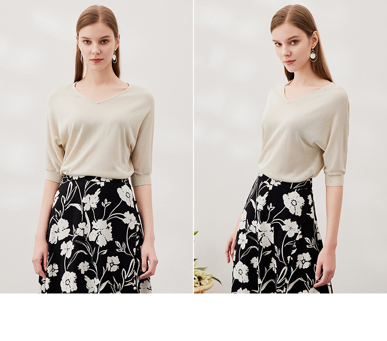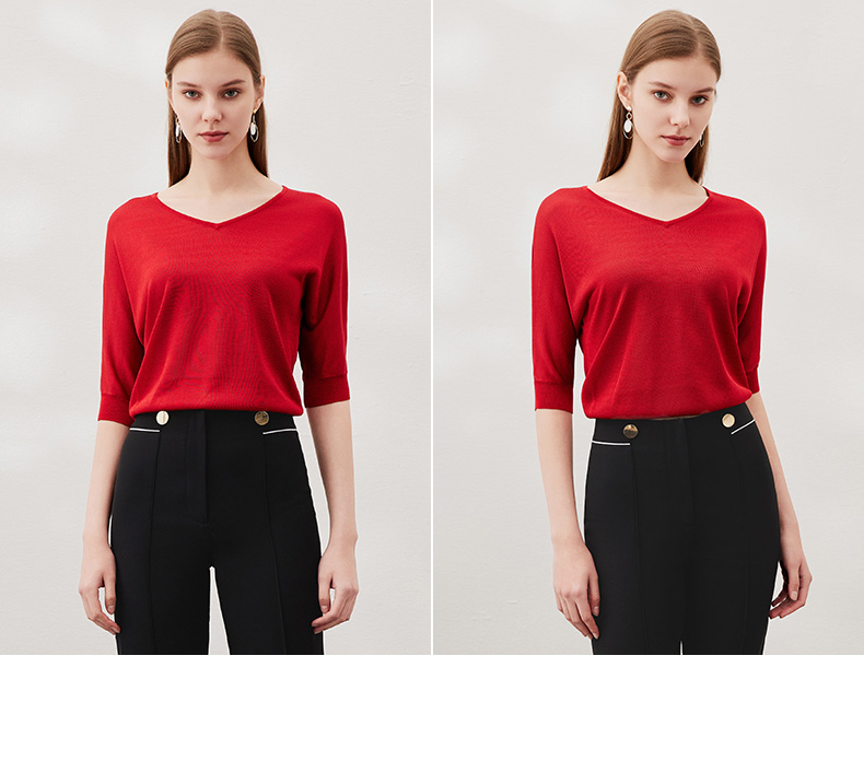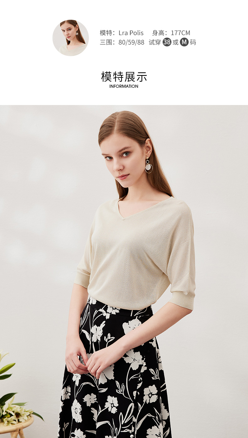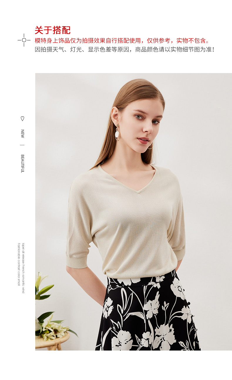 EITIE爱特爱春季新款五分袖透气短袖针织衫6901613