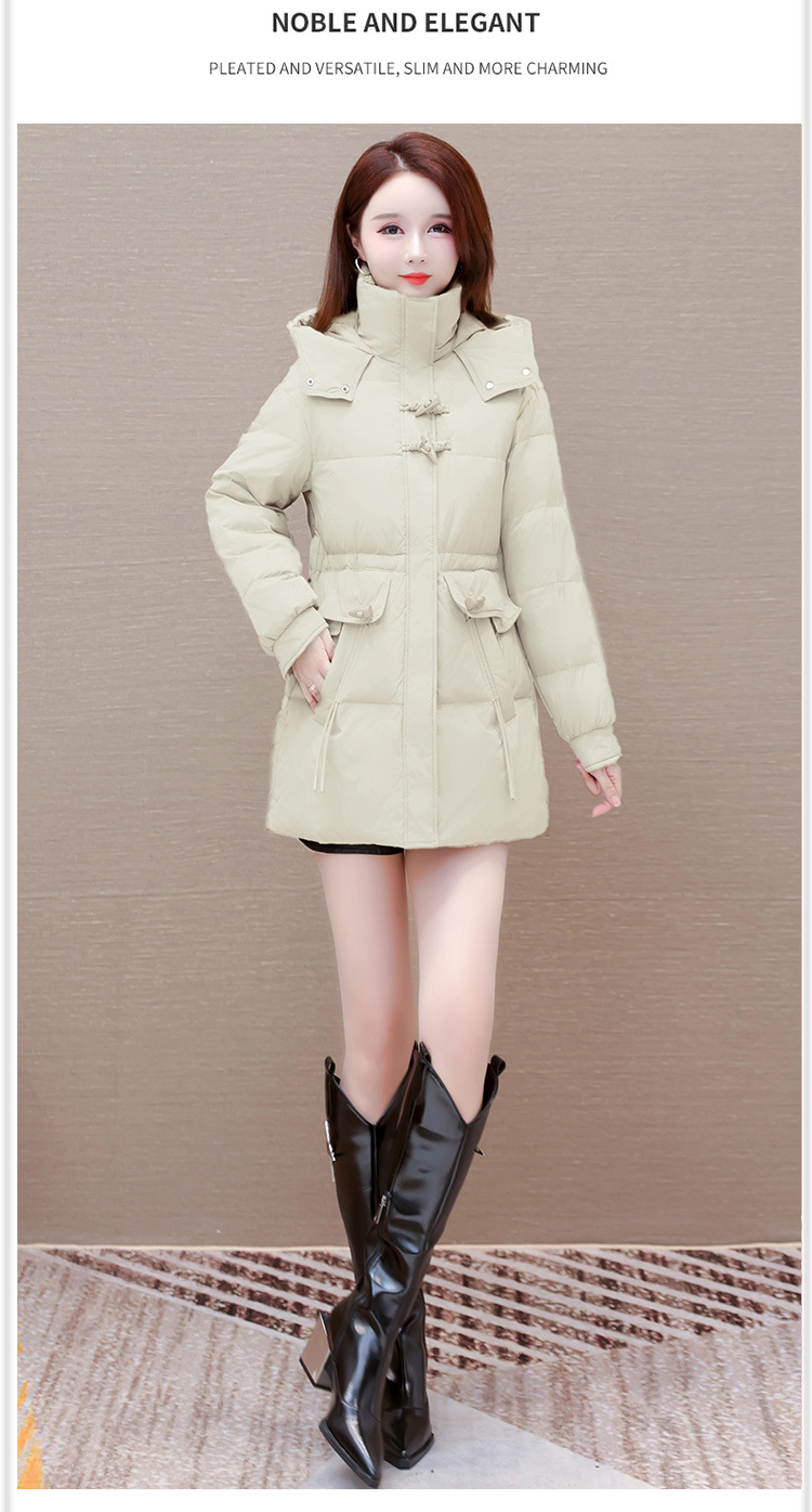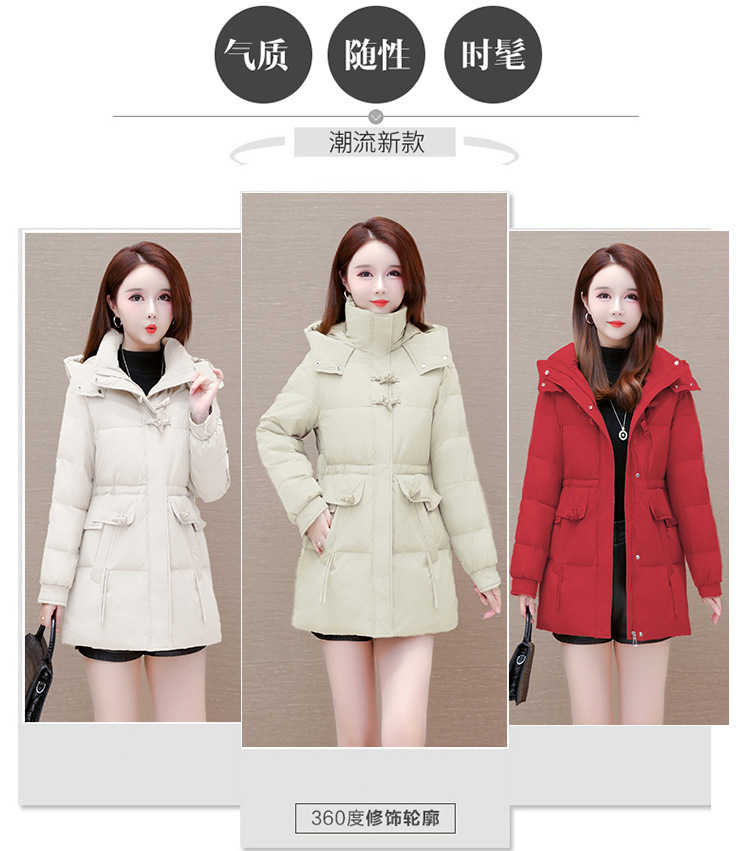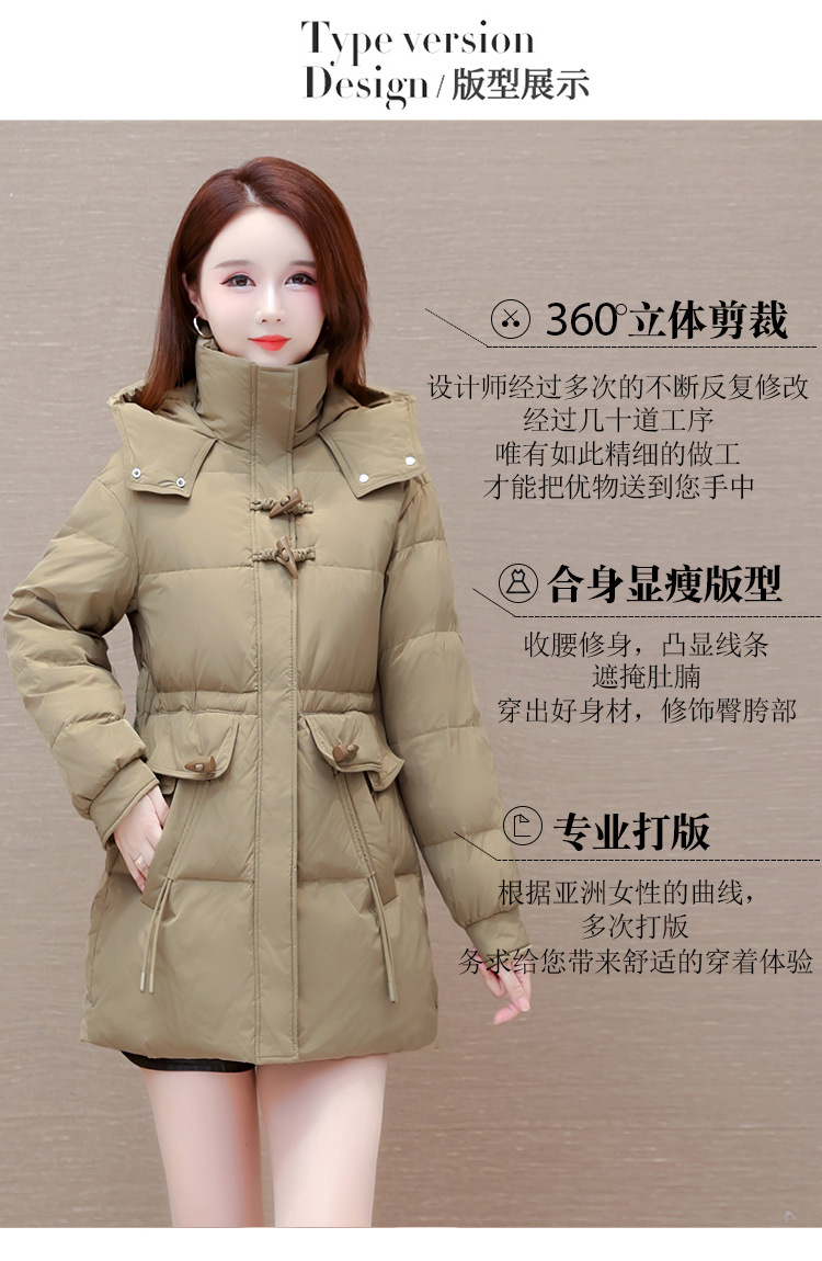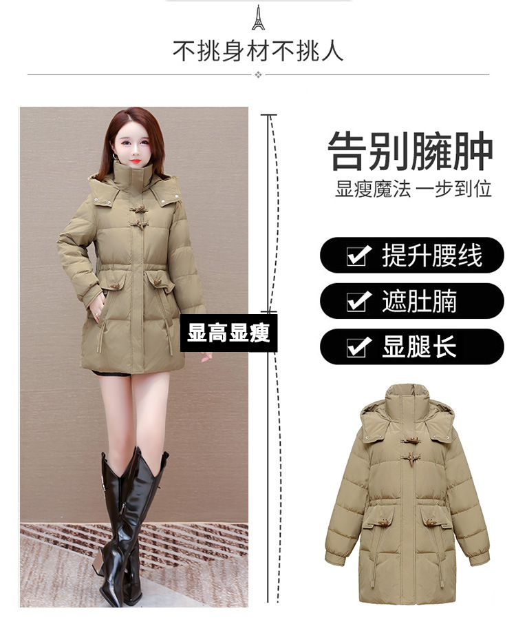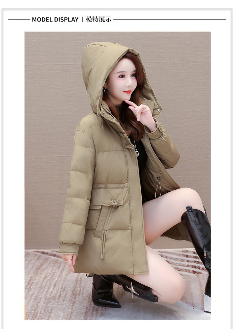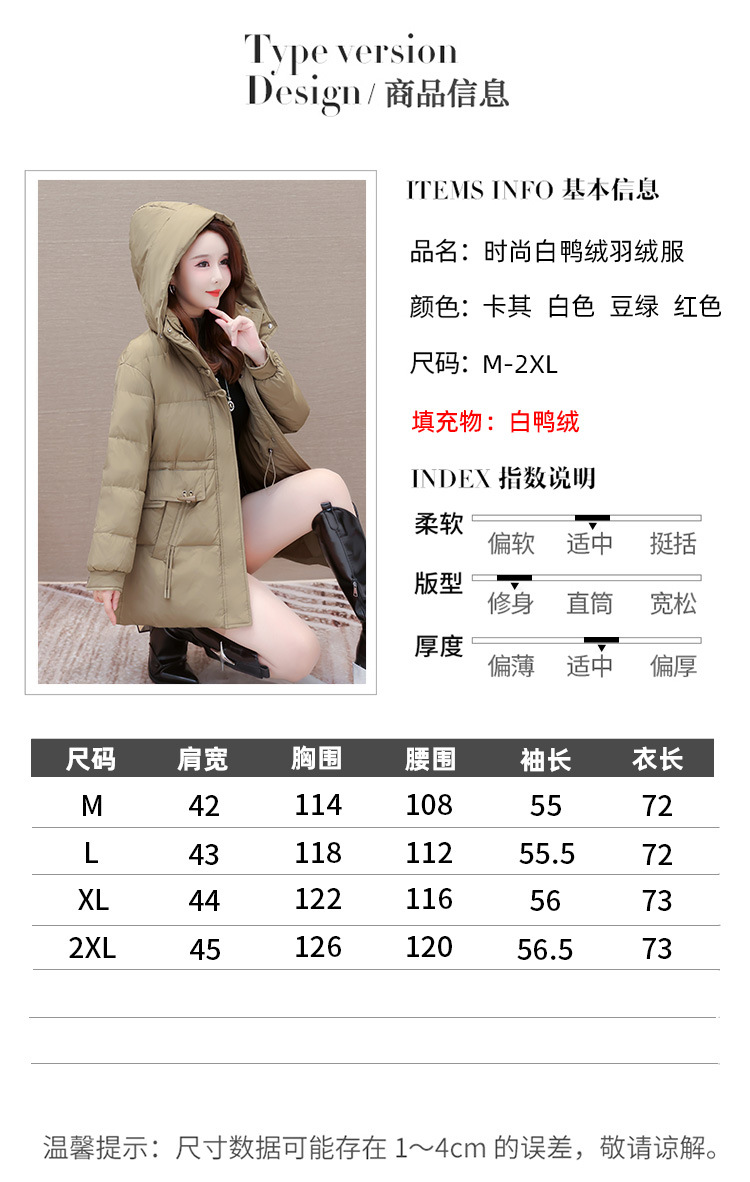 加厚保暖,中长款时髦白鸭绒外套冬款长袖连帽洋气修身羽绒服QYM-XQD-3D2316-L