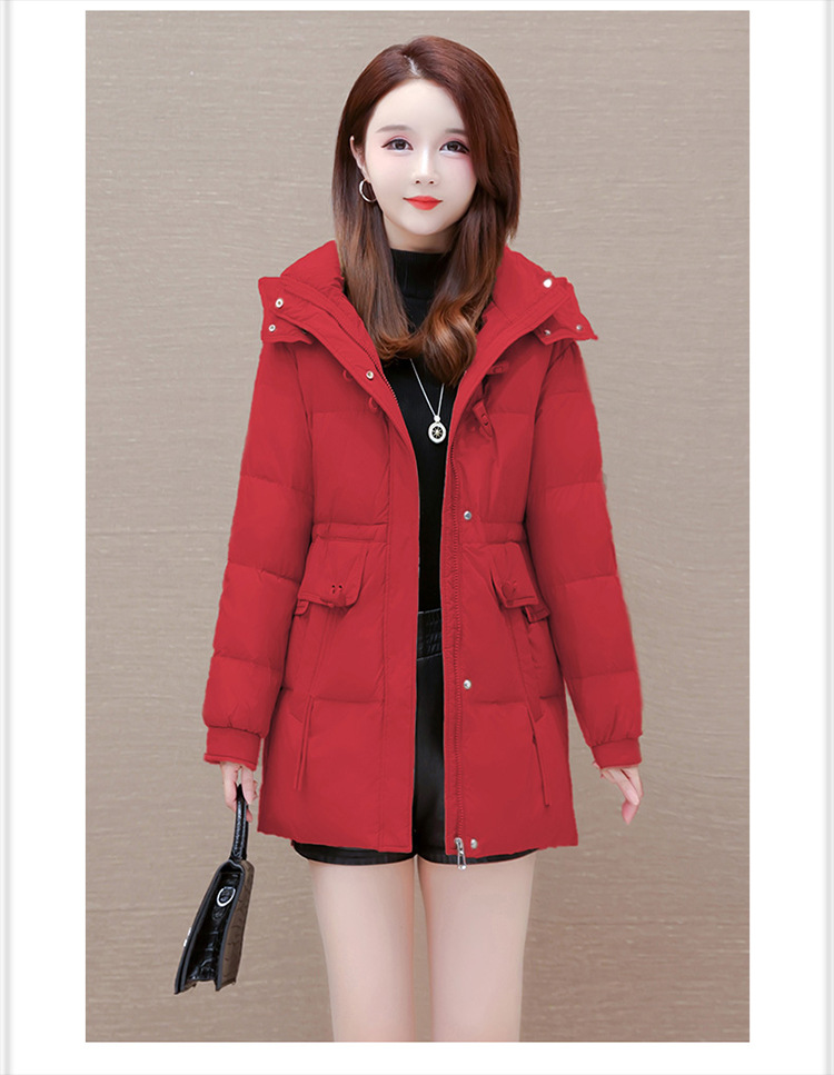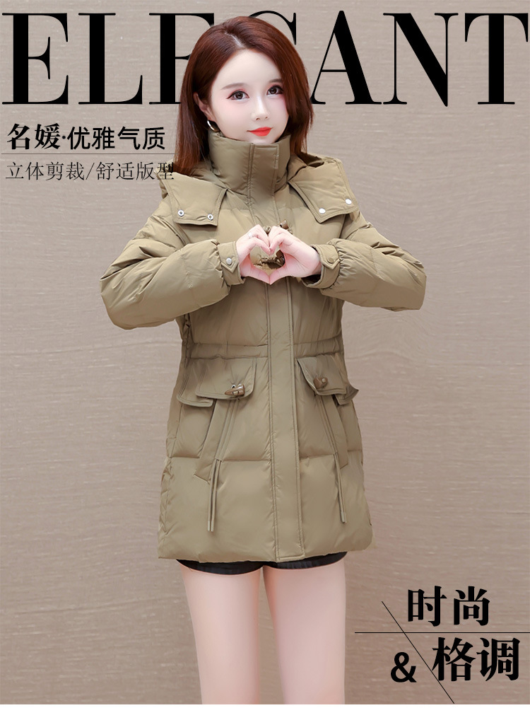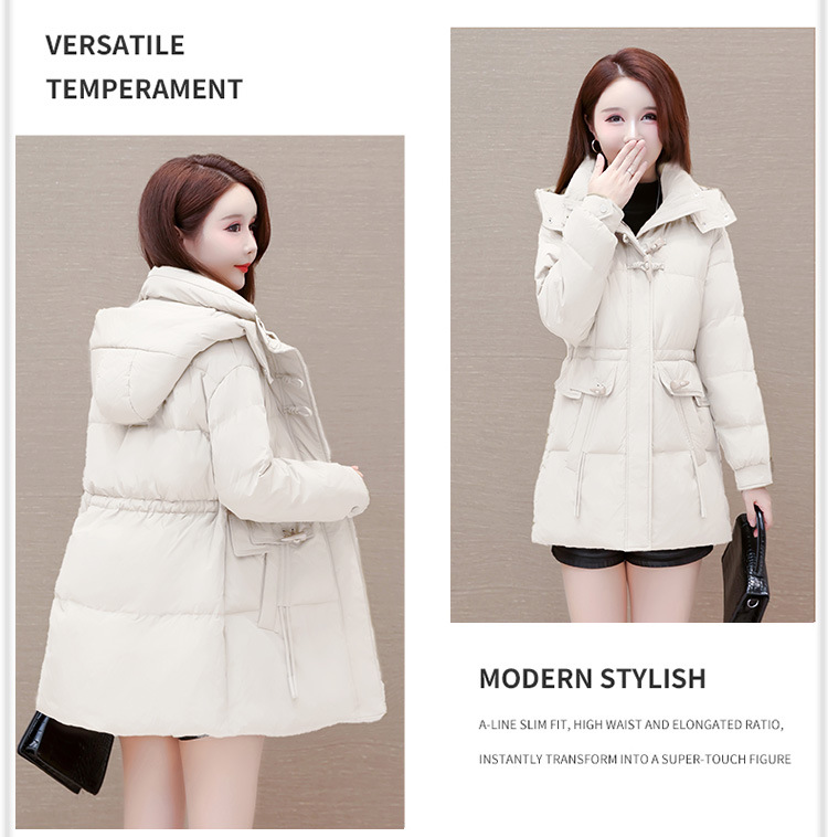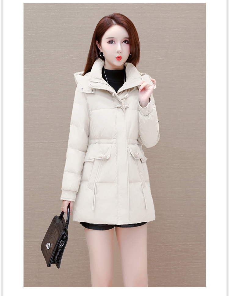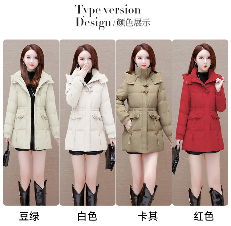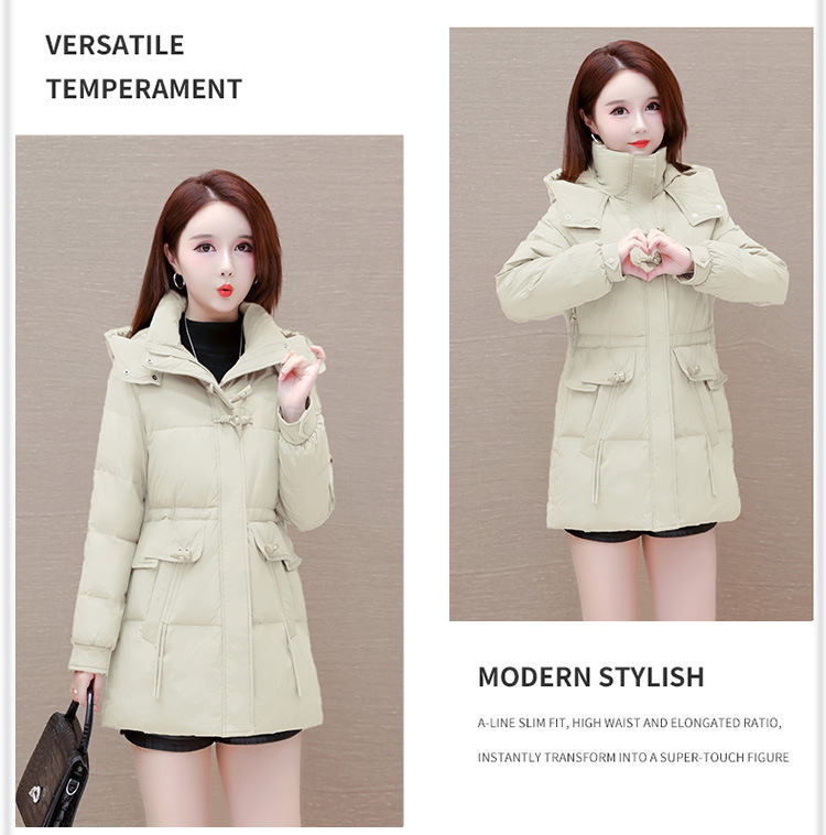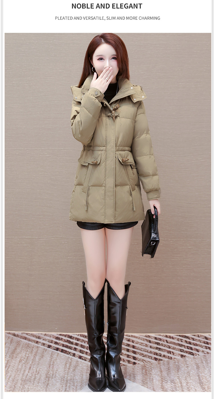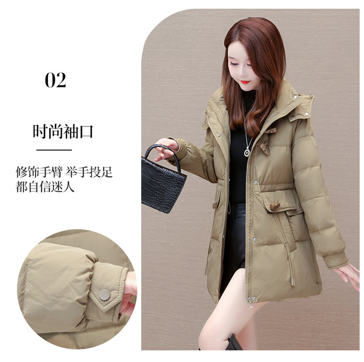 加厚保暖,中长款时髦白鸭绒外套冬款长袖连帽洋气修身羽绒服QYM-XQD-3D2316-L