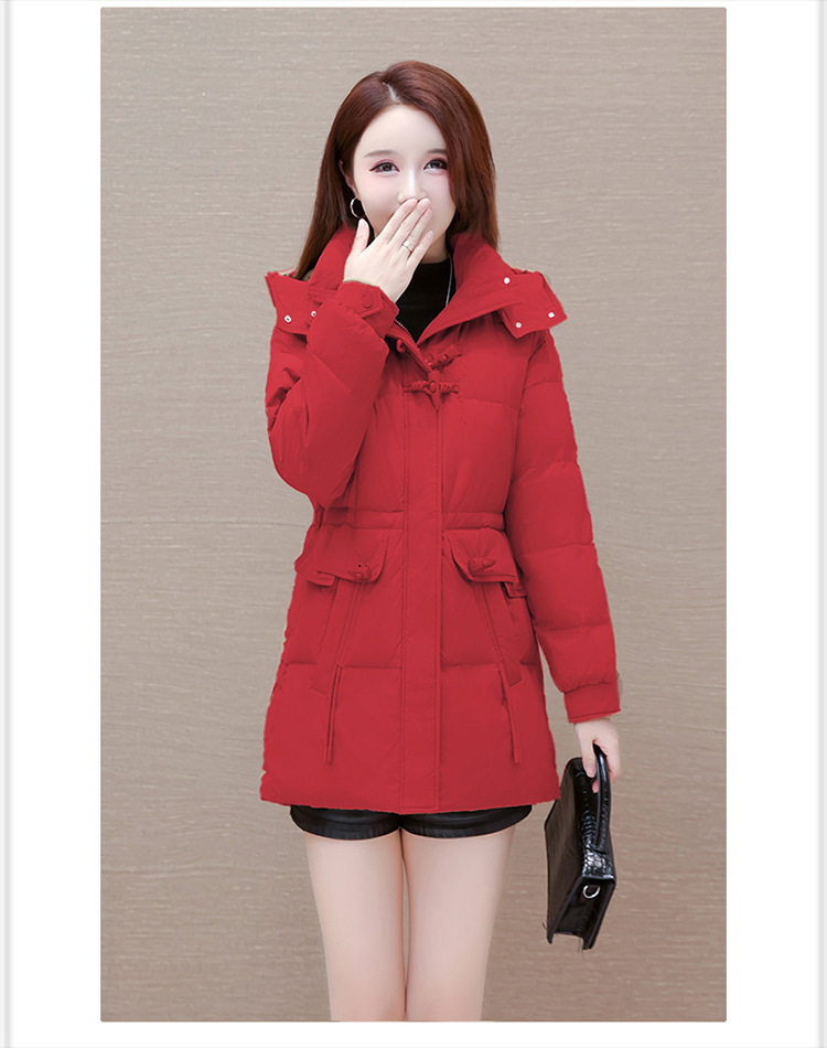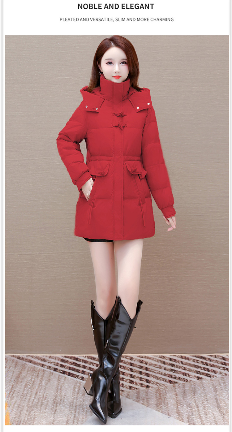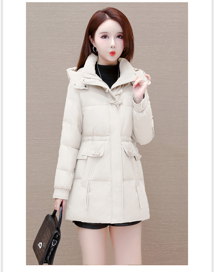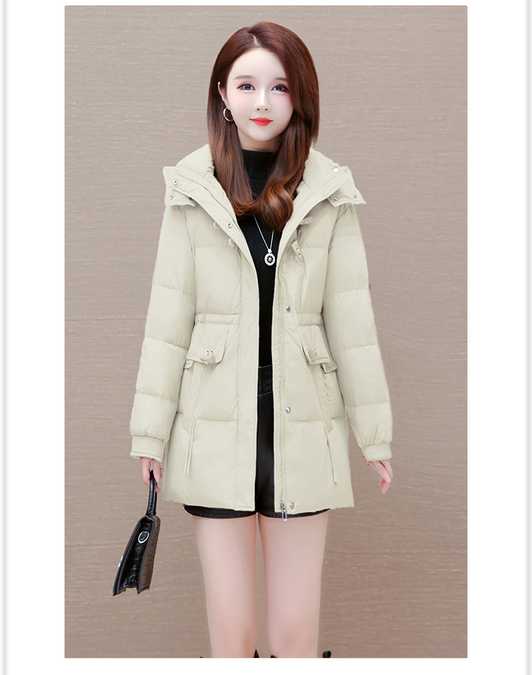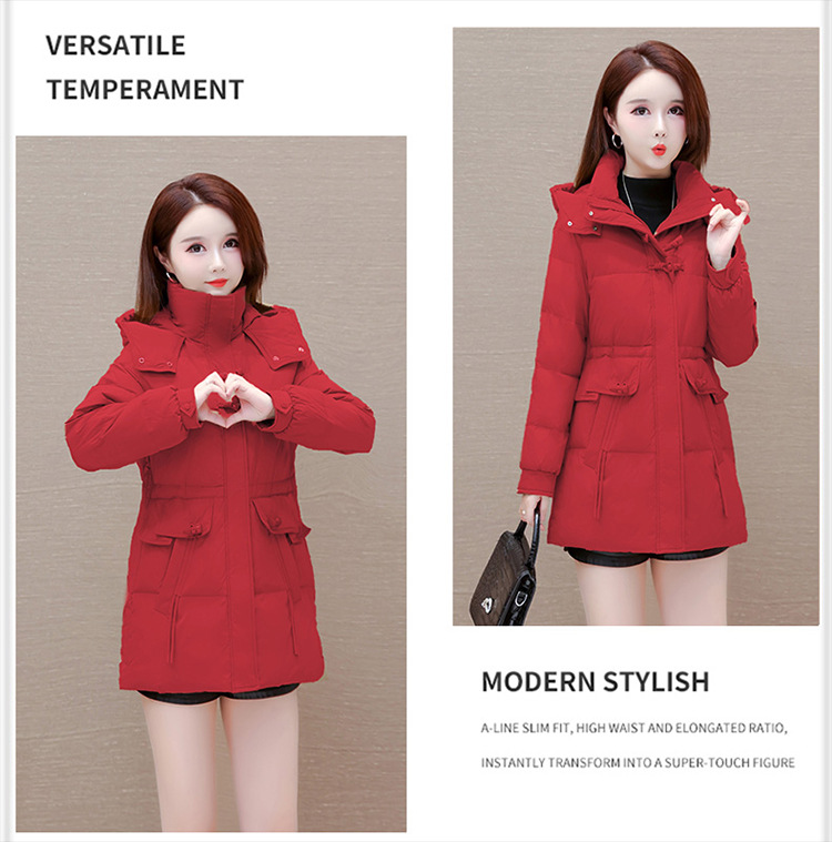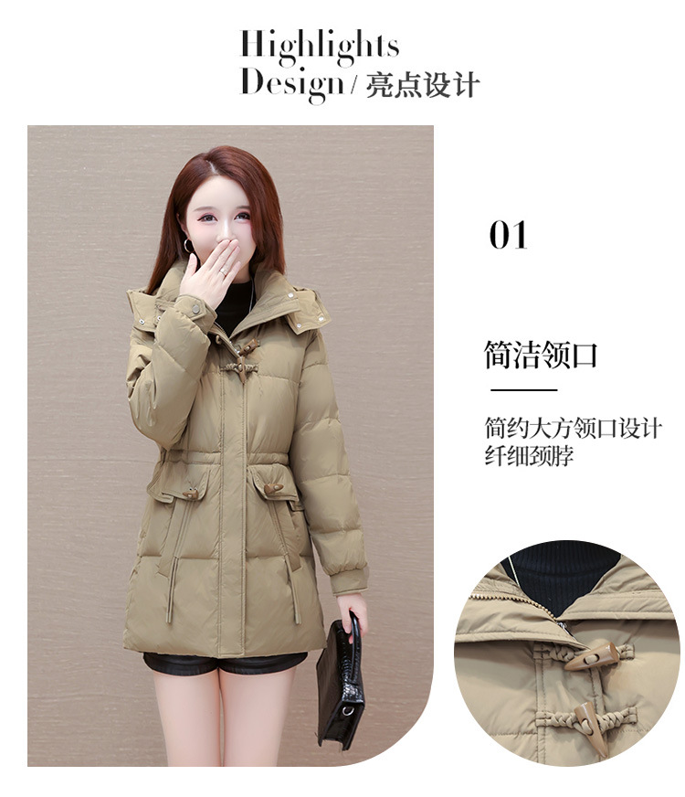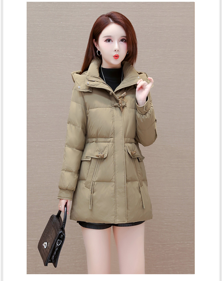 加厚保暖,中长款时髦白鸭绒外套冬款长袖连帽洋气修身羽绒服QYM-XQD-3D2316-L