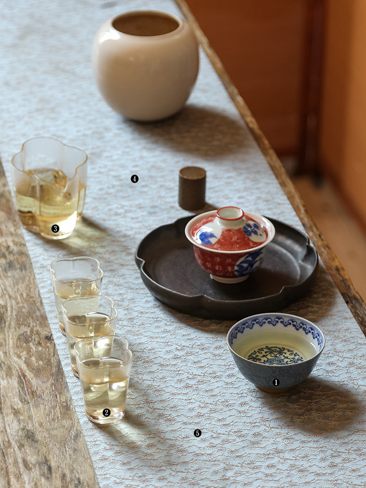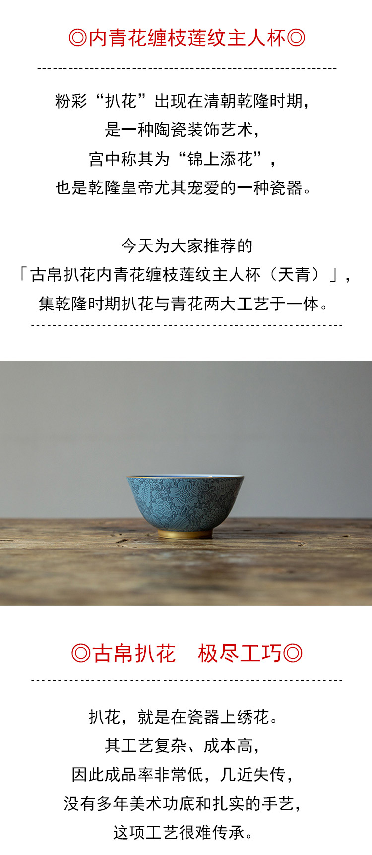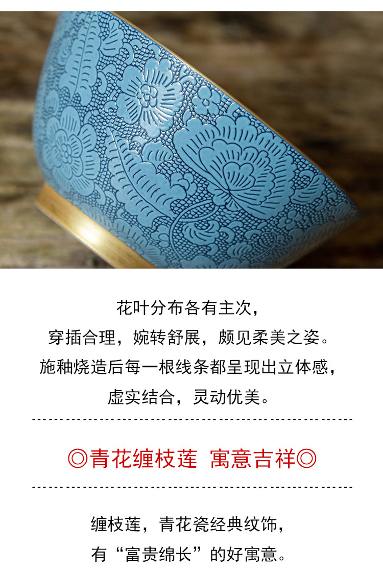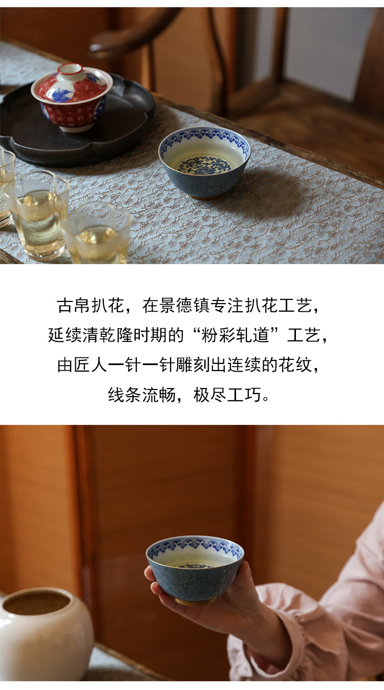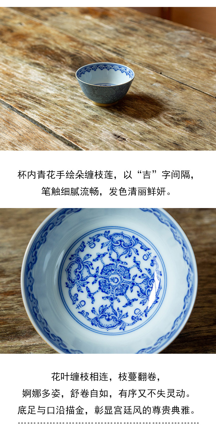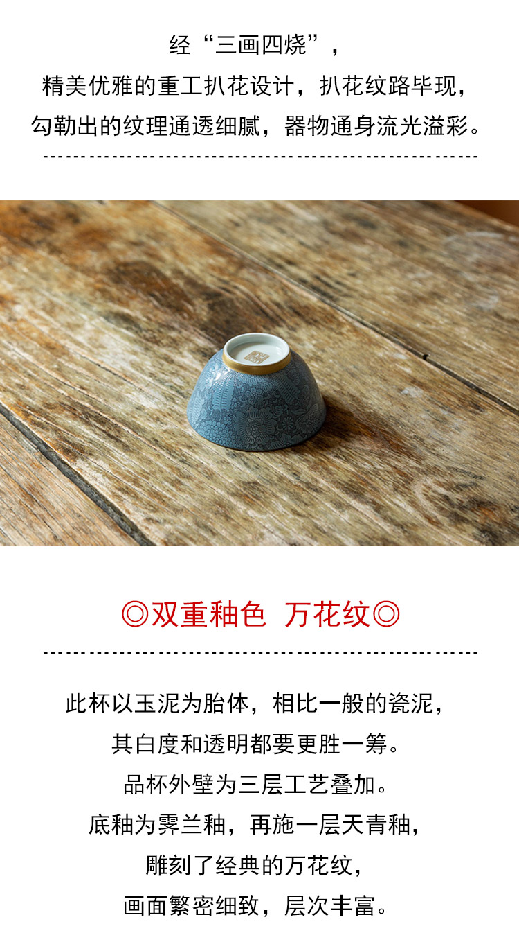 茶香记 古帛扒花 内青花缠枝莲纹主人杯(天青)品杯 寓意吉祥 尊贵典雅