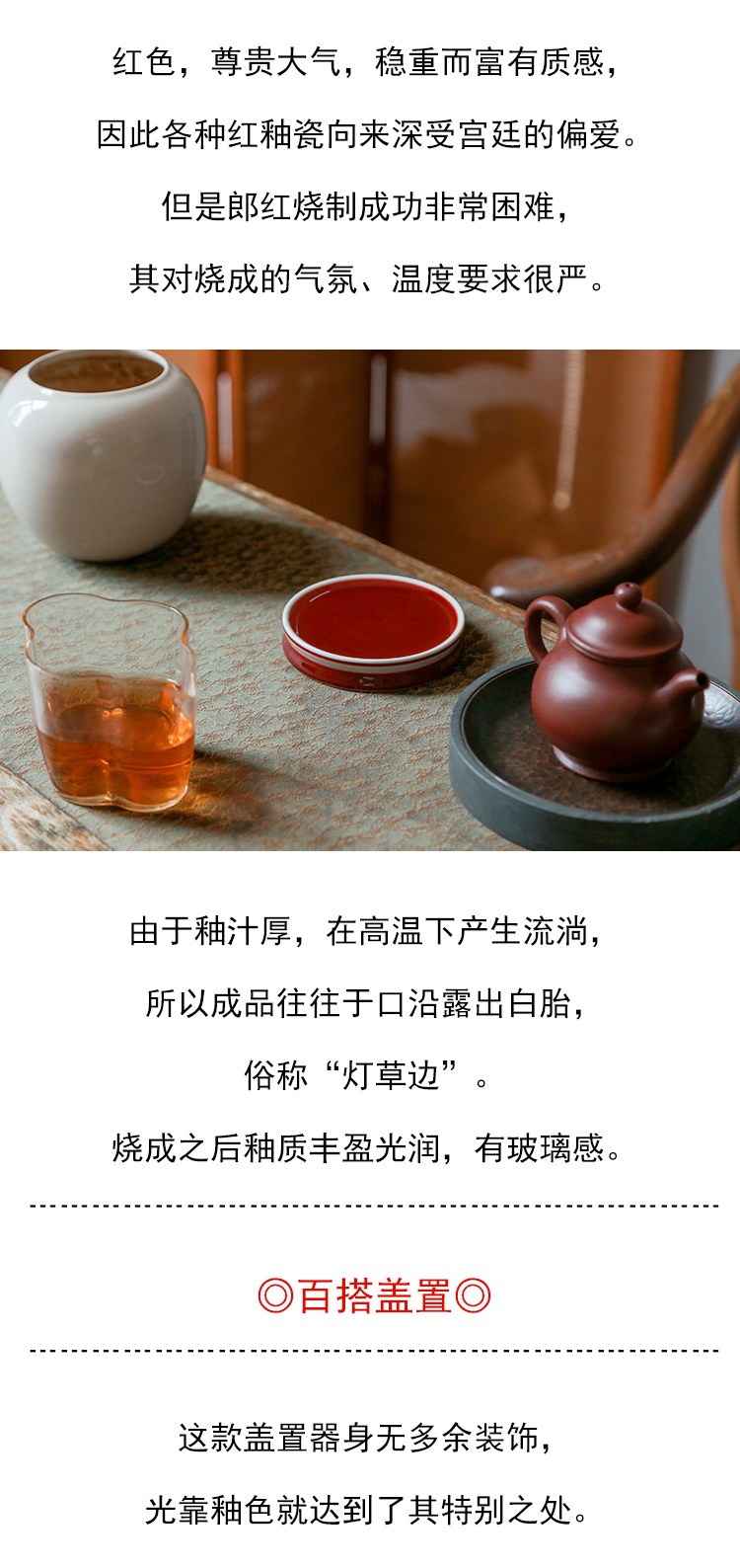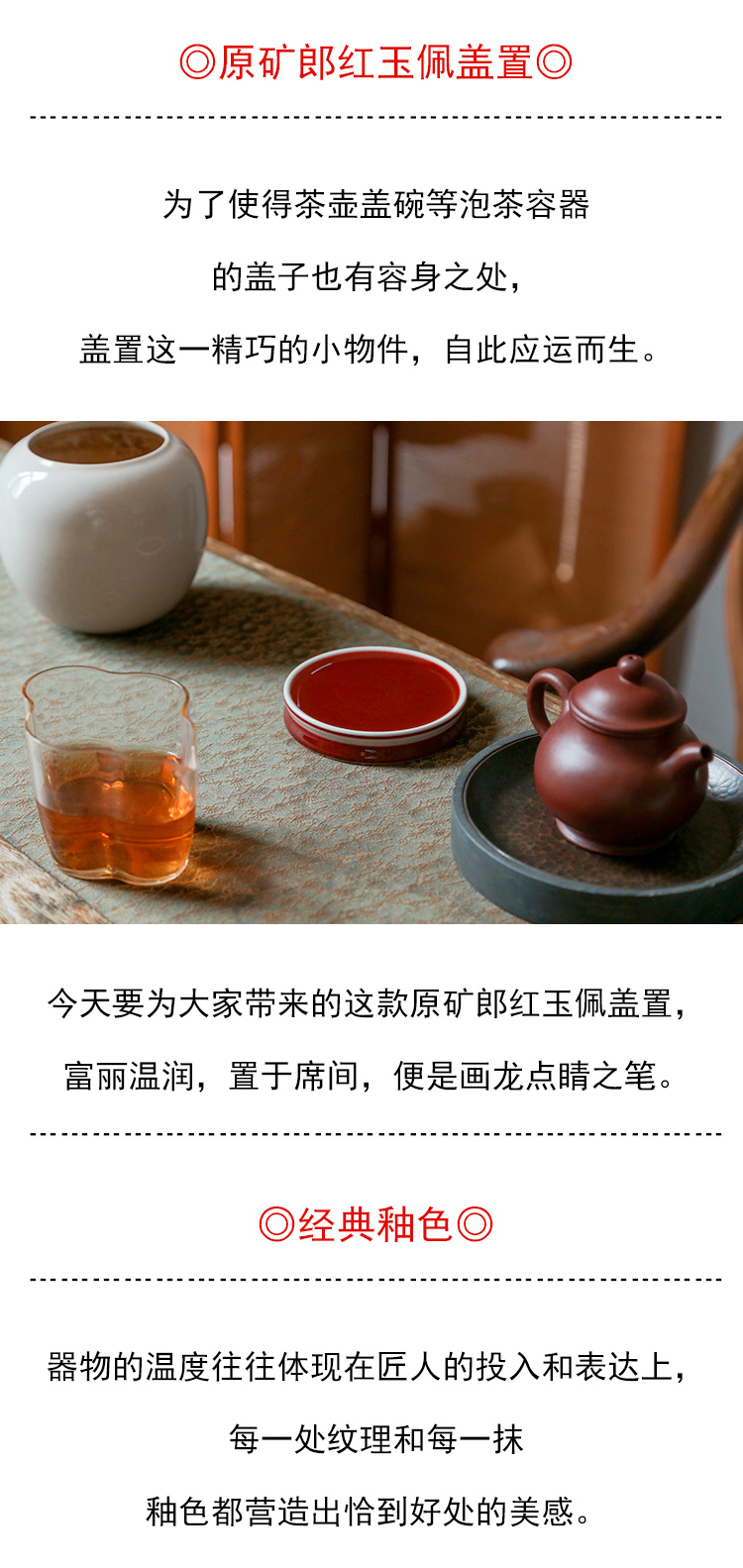 茶香记 原矿郎红玉佩盖置 经典釉色 百搭盖置 艳丽典雅