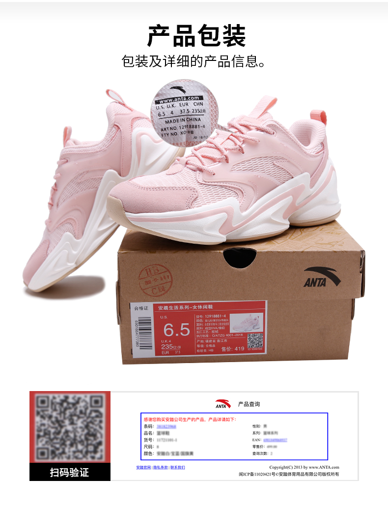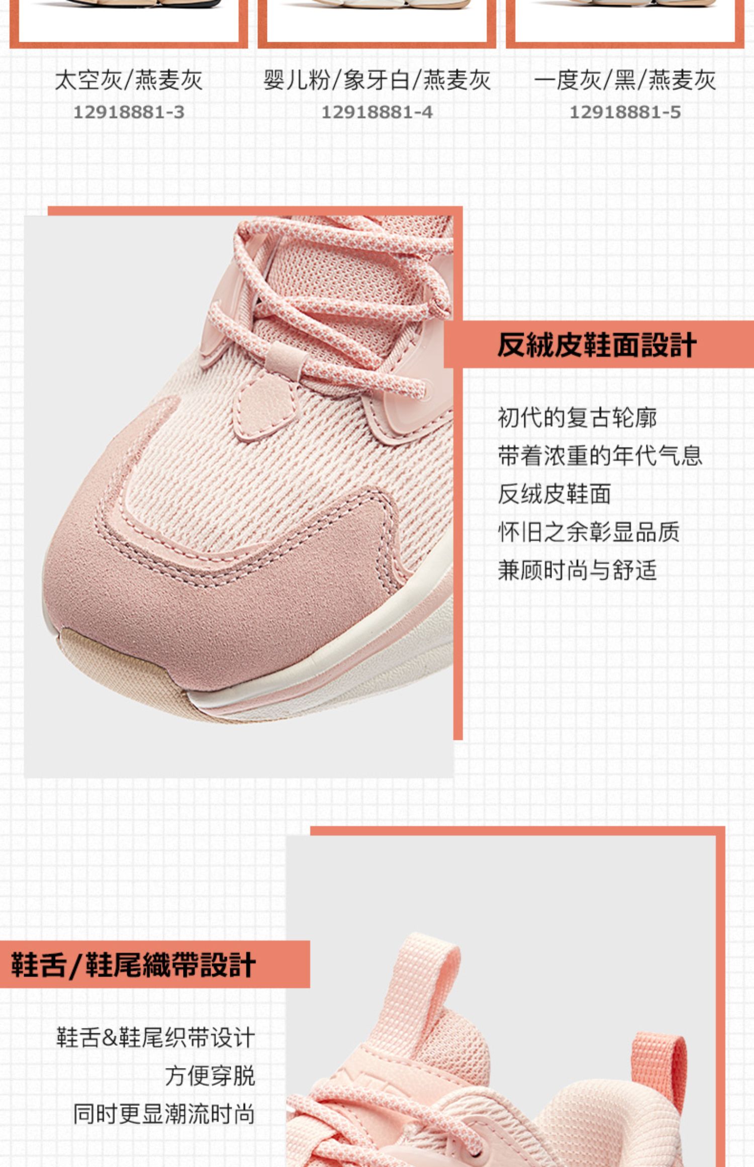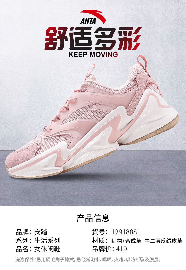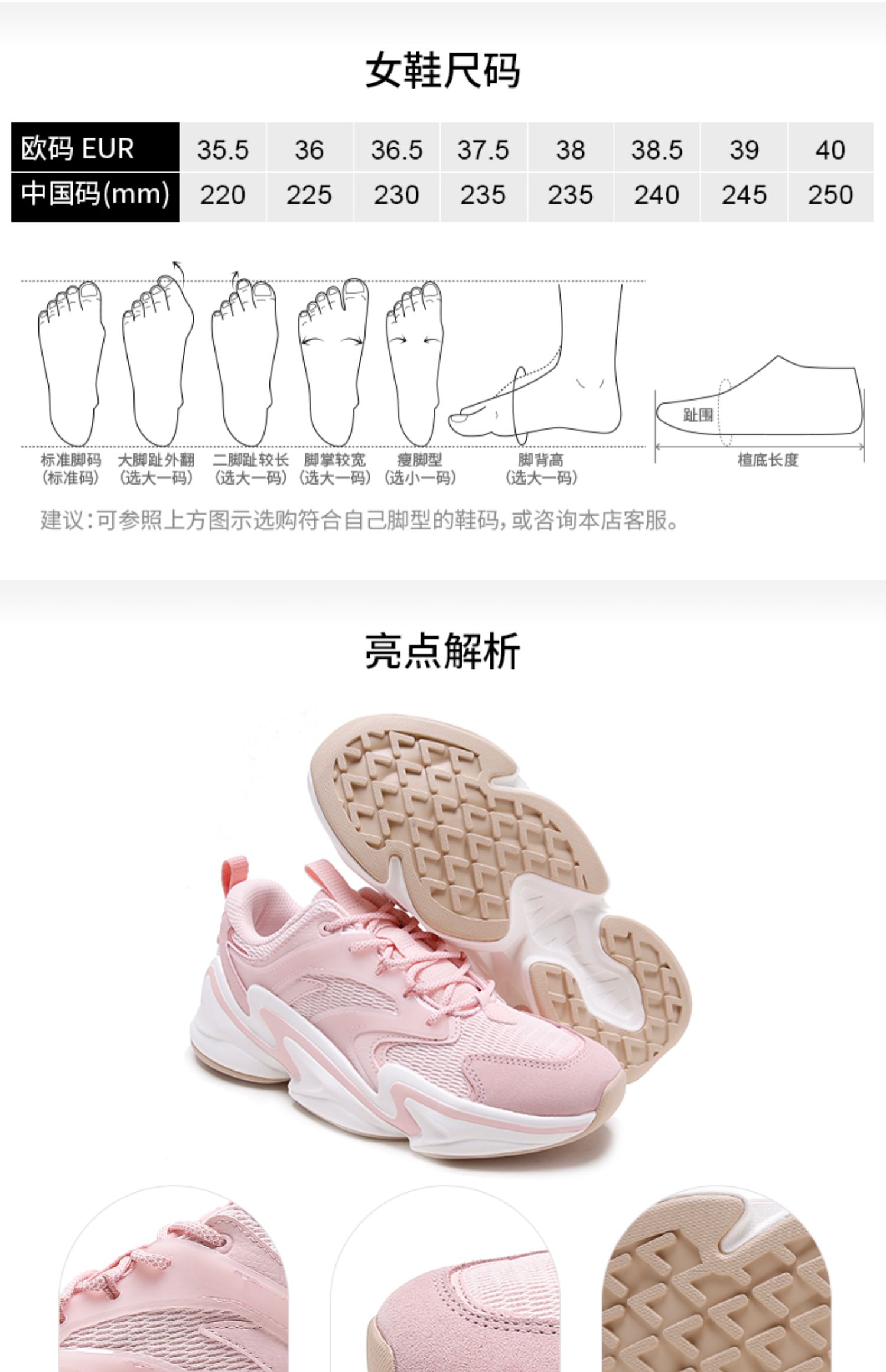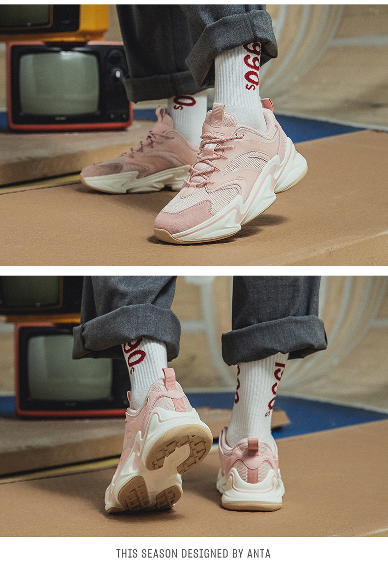 安踏鞋女老爹鞋跑步鞋官网2020秋季新款网面少女心运动鞋12918881