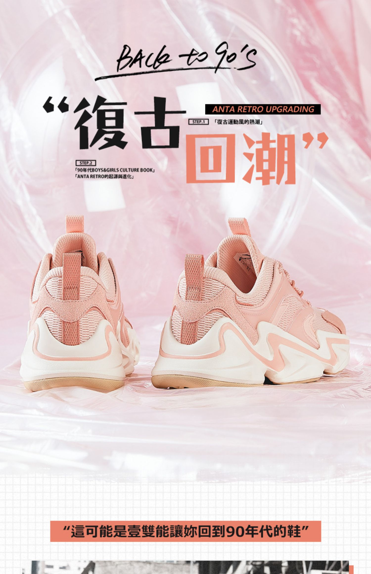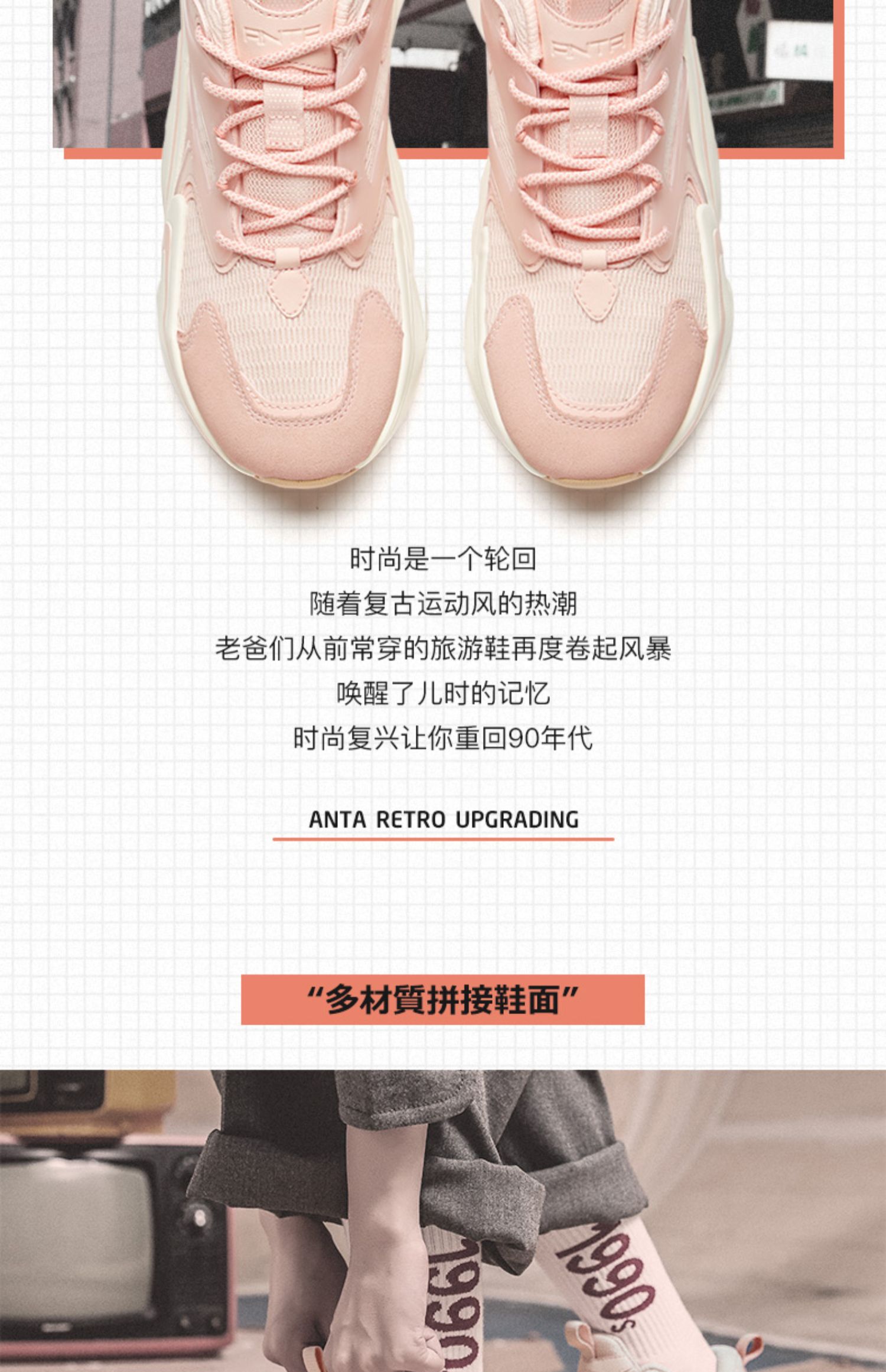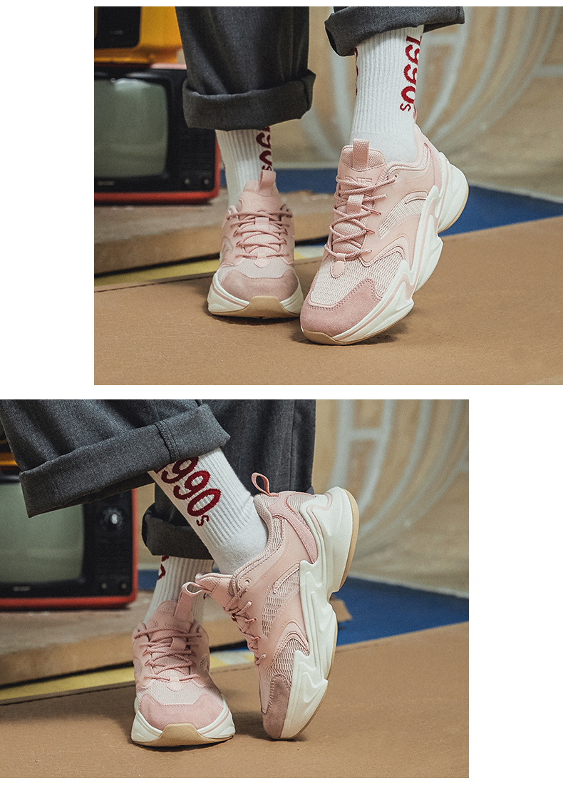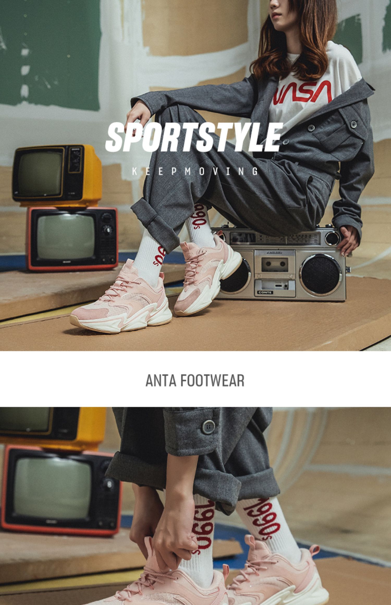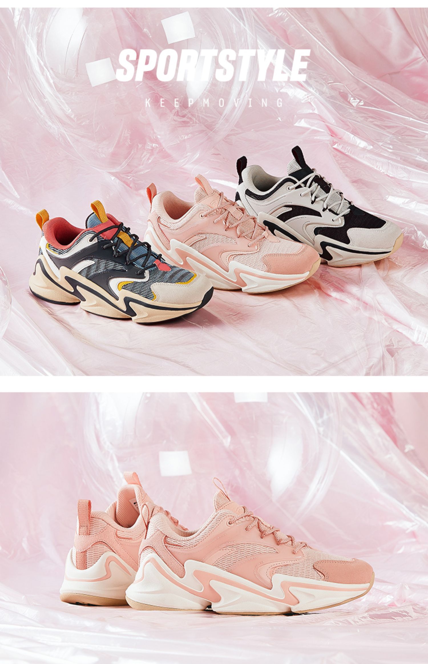 安踏鞋女老爹鞋跑步鞋官网2020秋季新款网面少女心运动鞋12918881