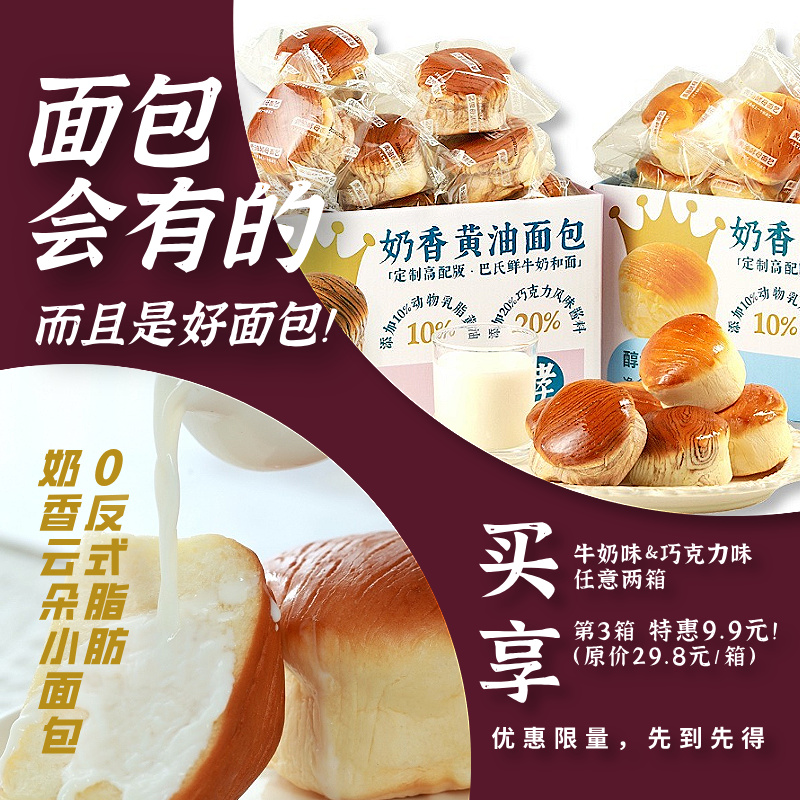 【0反式脂肪酸 】黄油酵母面包 鲜牛奶和面牛奶风味/巧克力风味 540克/箱