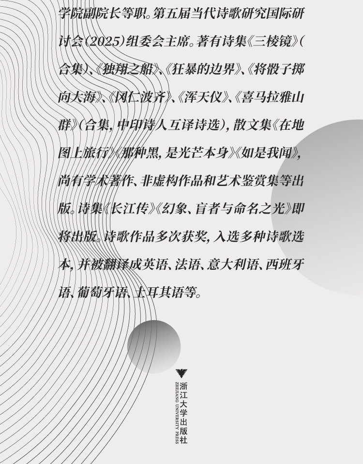 王自亮,1958年生于浙江台州,毕业于杭州大学(现并入浙江大学)中文系,现任浙江工商大学“金收获写作中心”执行主任,教授。1982年以来,先后担任浙江省台州地区行政公署秘书、《台州日报》总编辑、浙江省政府办公厅研究室主任、吉利控股集团副总裁、浙江工商大学公共管理学院副院长等职。第五届当代诗歌研究国际研讨会(2025)组委会主席。著有诗集《三棱镜》(合集)、《独翔之船》、《狂暴的边界》、《将骰子掷向大海》、《冈仁波齐》、《浑天仪》、《喜马拉雅山群》(合集,中印诗人互译诗选),散文集《在地图上旅行》《那种黑,是光芒本身》《如是我闻》,尚有学术著作、非虚构作品和艺术鉴赏集等出版。诗集《长江传》《幻象、盲者与命名之光》即将出版。诗歌作品多次获奖,入选多种诗歌选本,并被翻译成英语、法语、意大利语、西班牙语、葡萄牙语、土耳其语等。