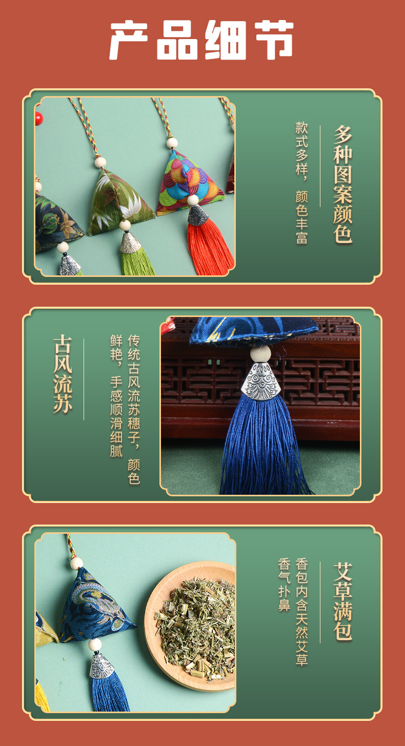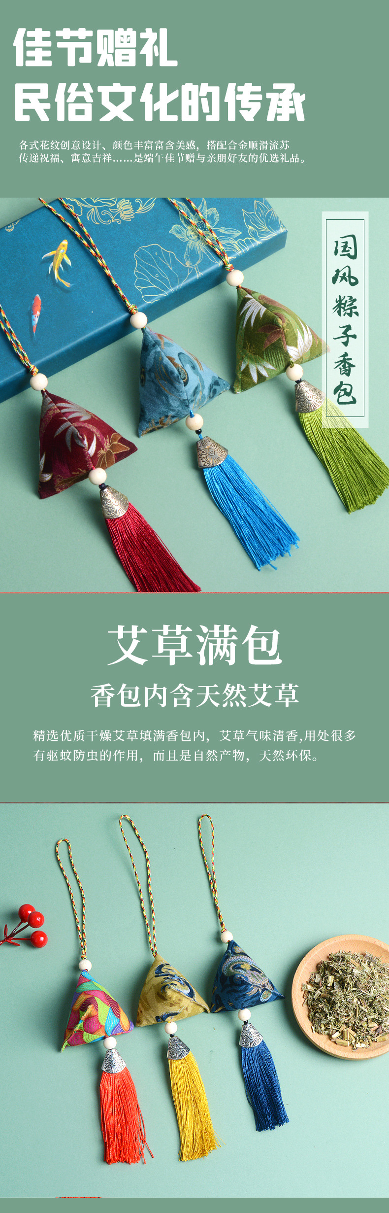 五只装【端午节国风香包】端午粽子礼品 艾草驱蚊车载挂件粽子香包挂件