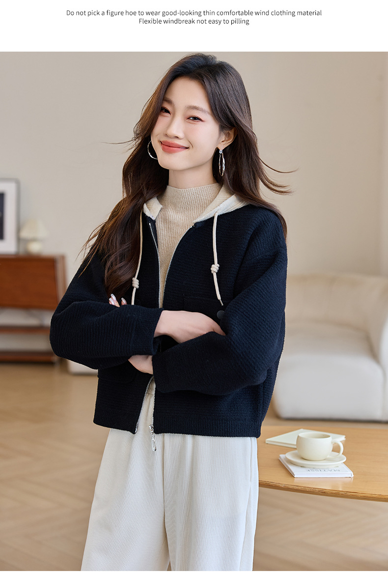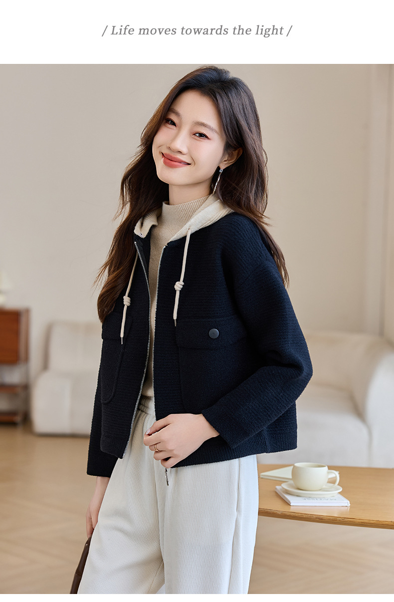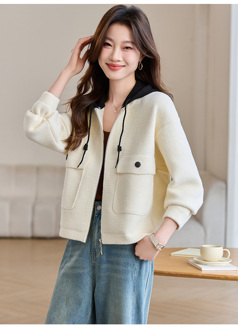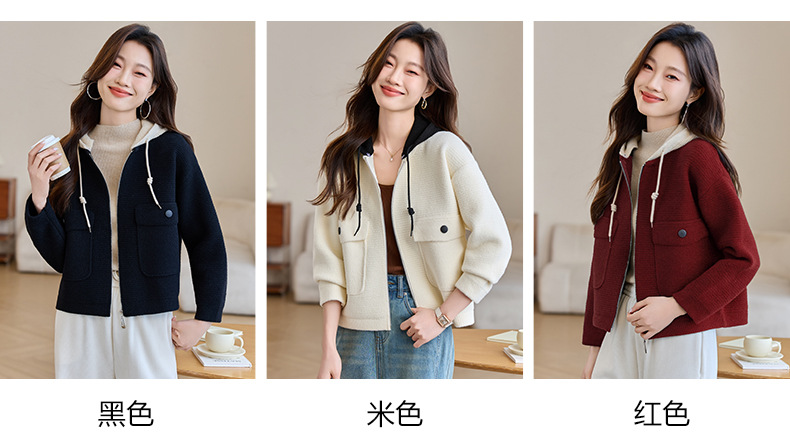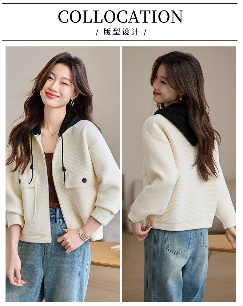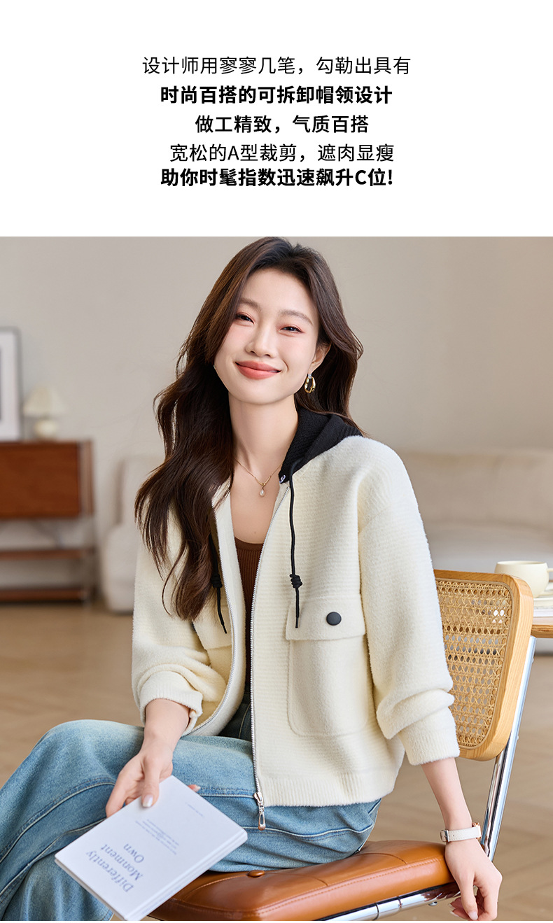 CC-XFY-2506小个子短外套女2025秋新款开衫可拆卸帽休闲珍珠绒棒球服上衣春秋