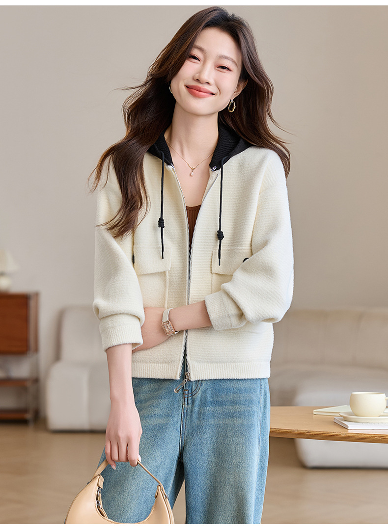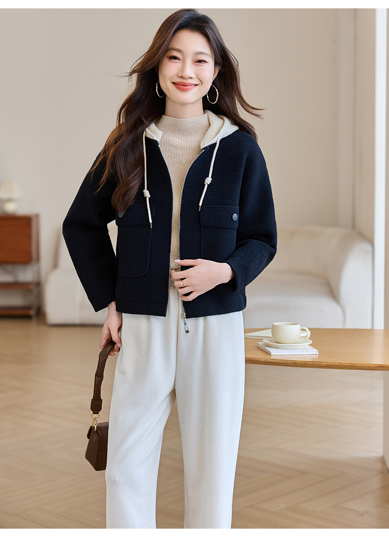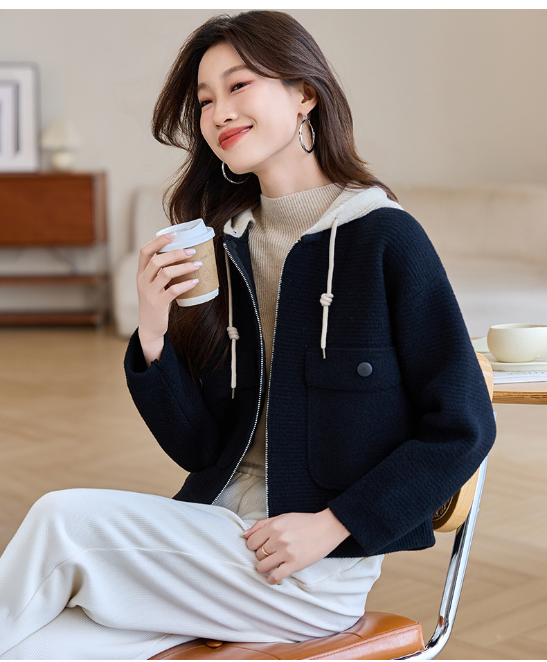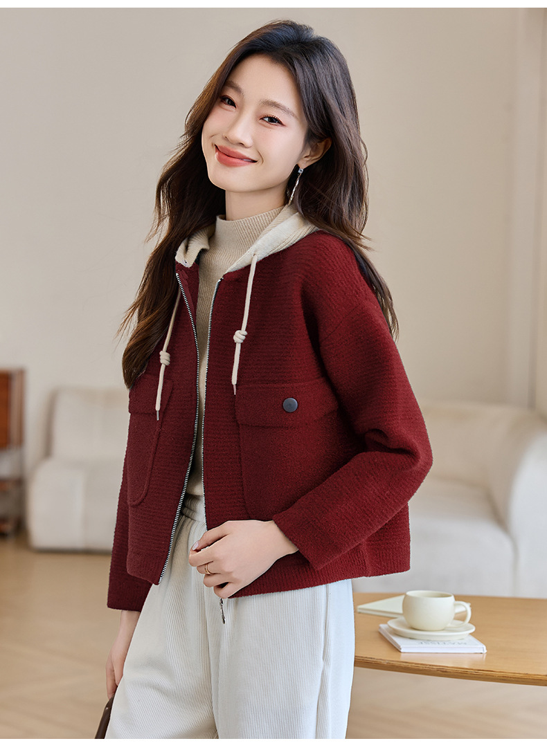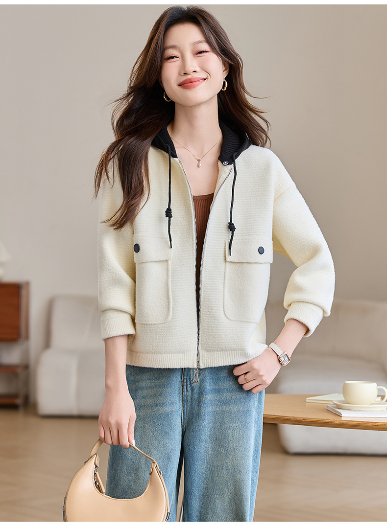 CC-XFY-2506小个子短外套女2025秋新款开衫可拆卸帽休闲珍珠绒棒球服上衣春秋