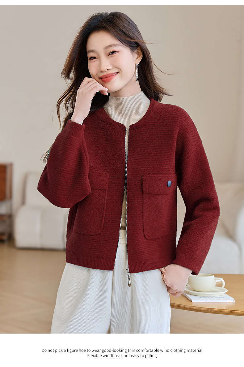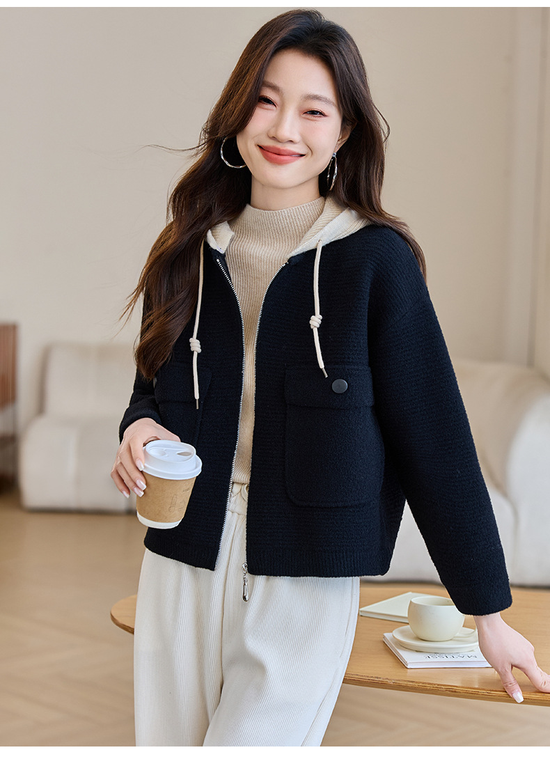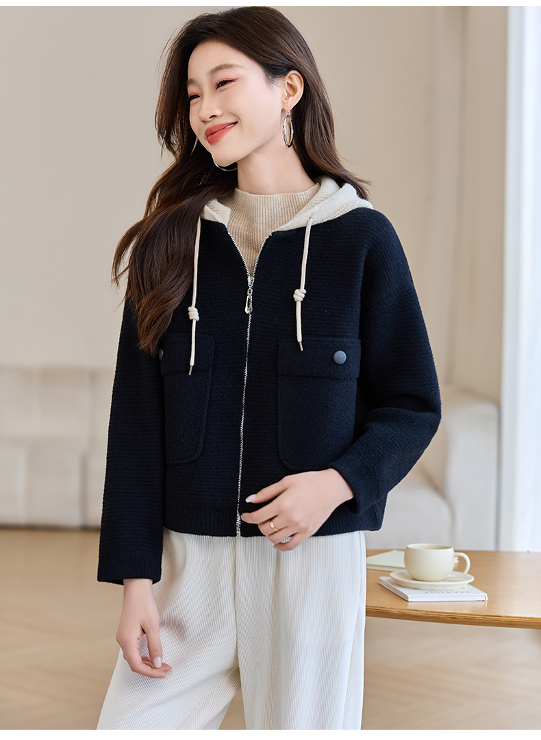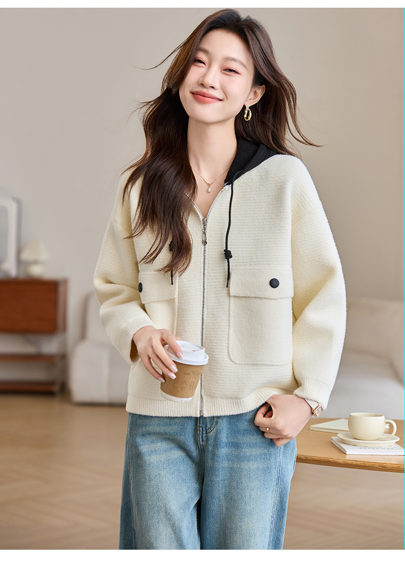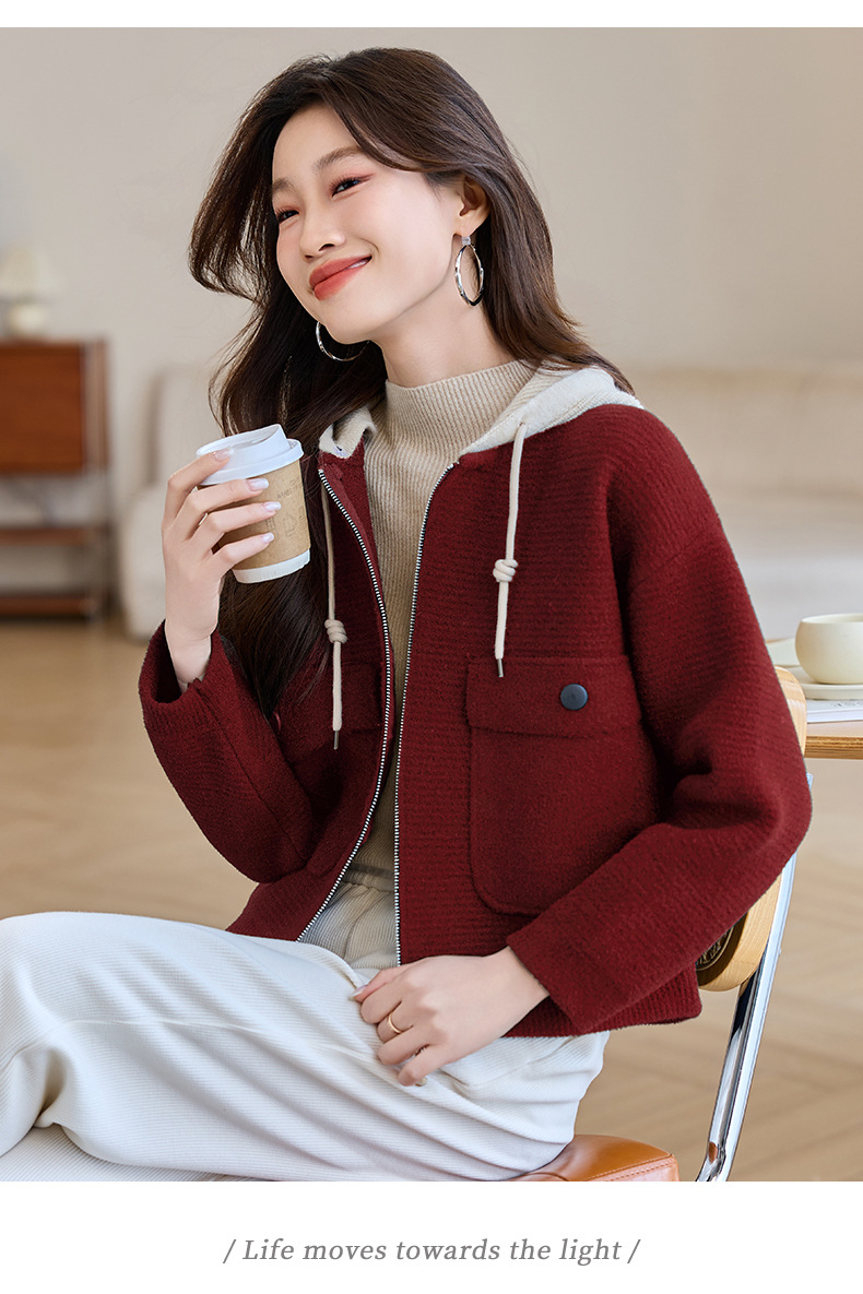 CC-XFY-2506小个子短外套女2025秋新款开衫可拆卸帽休闲珍珠绒棒球服上衣春秋