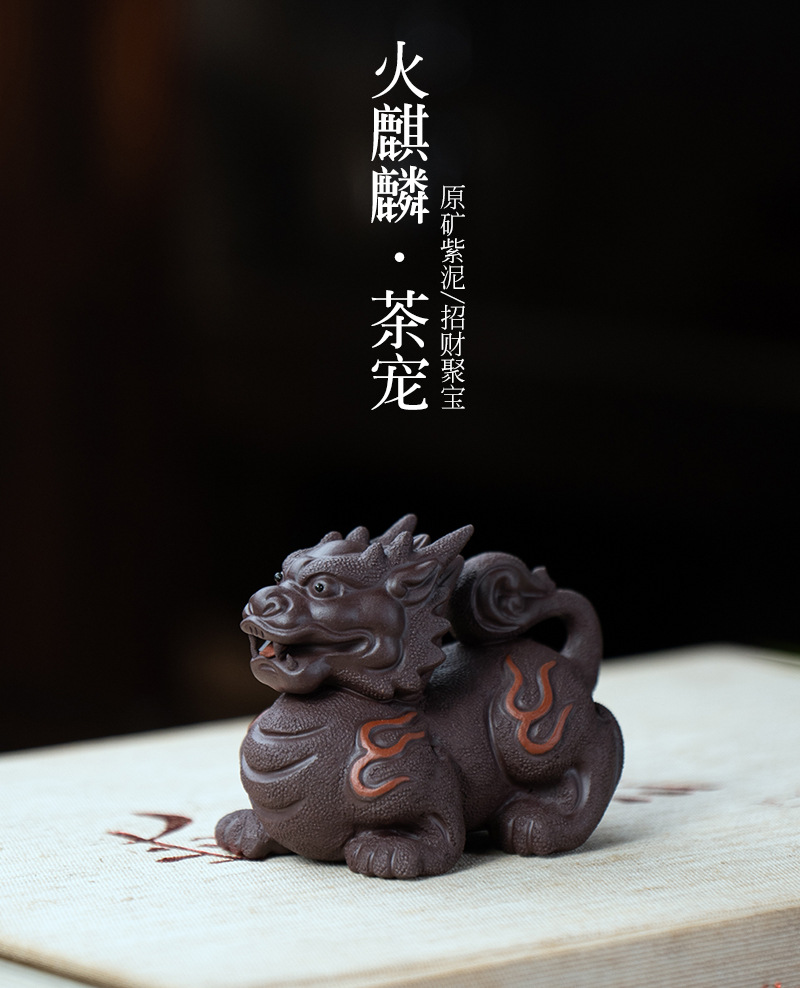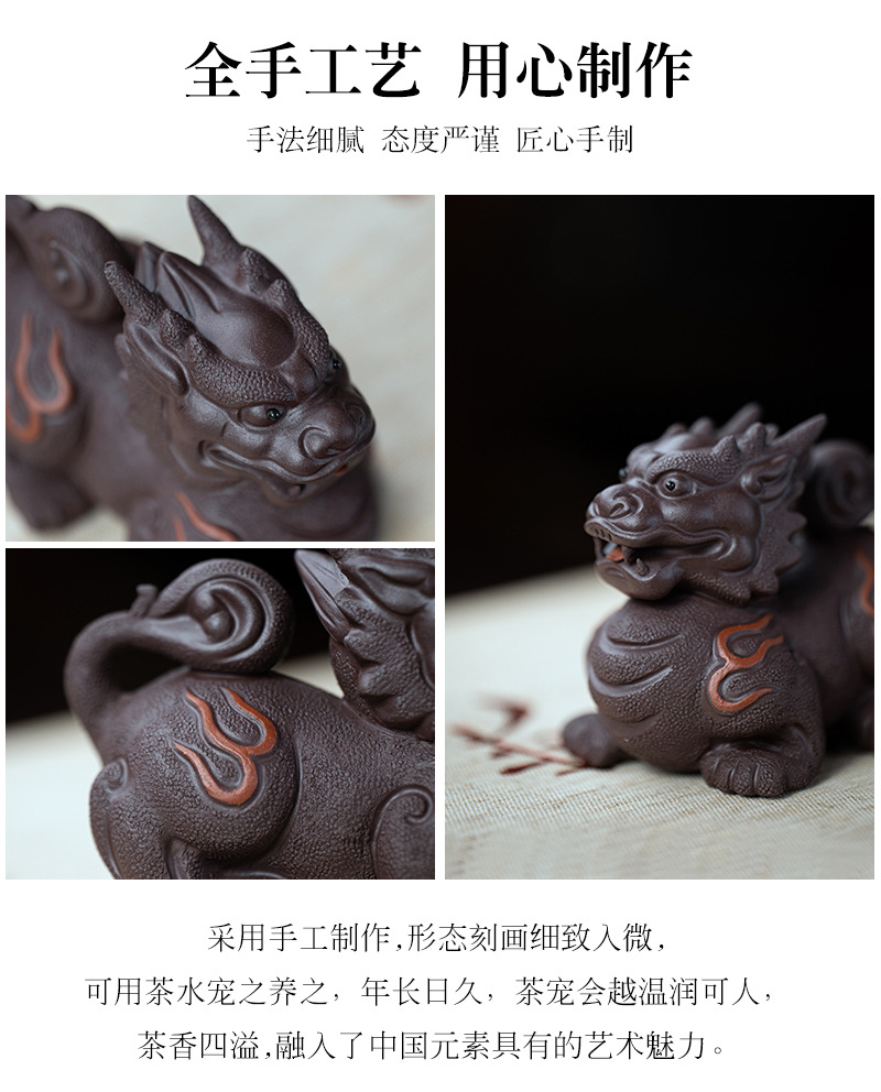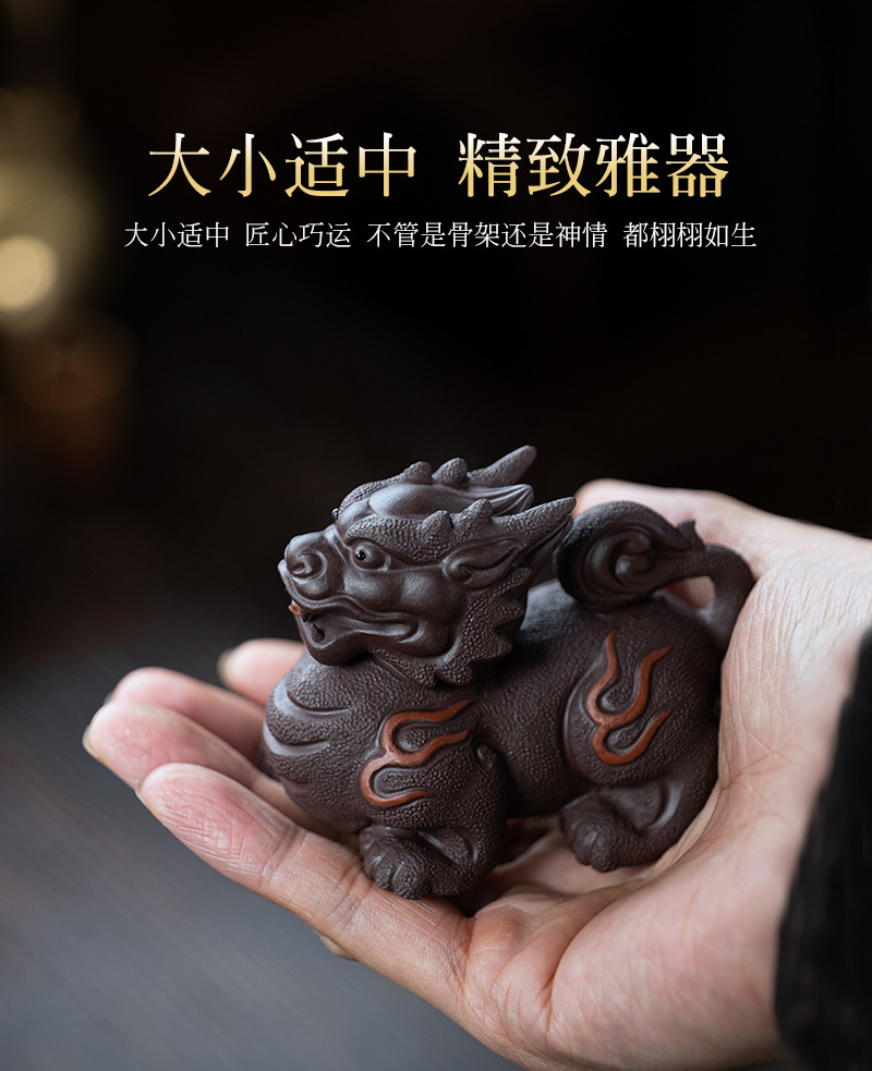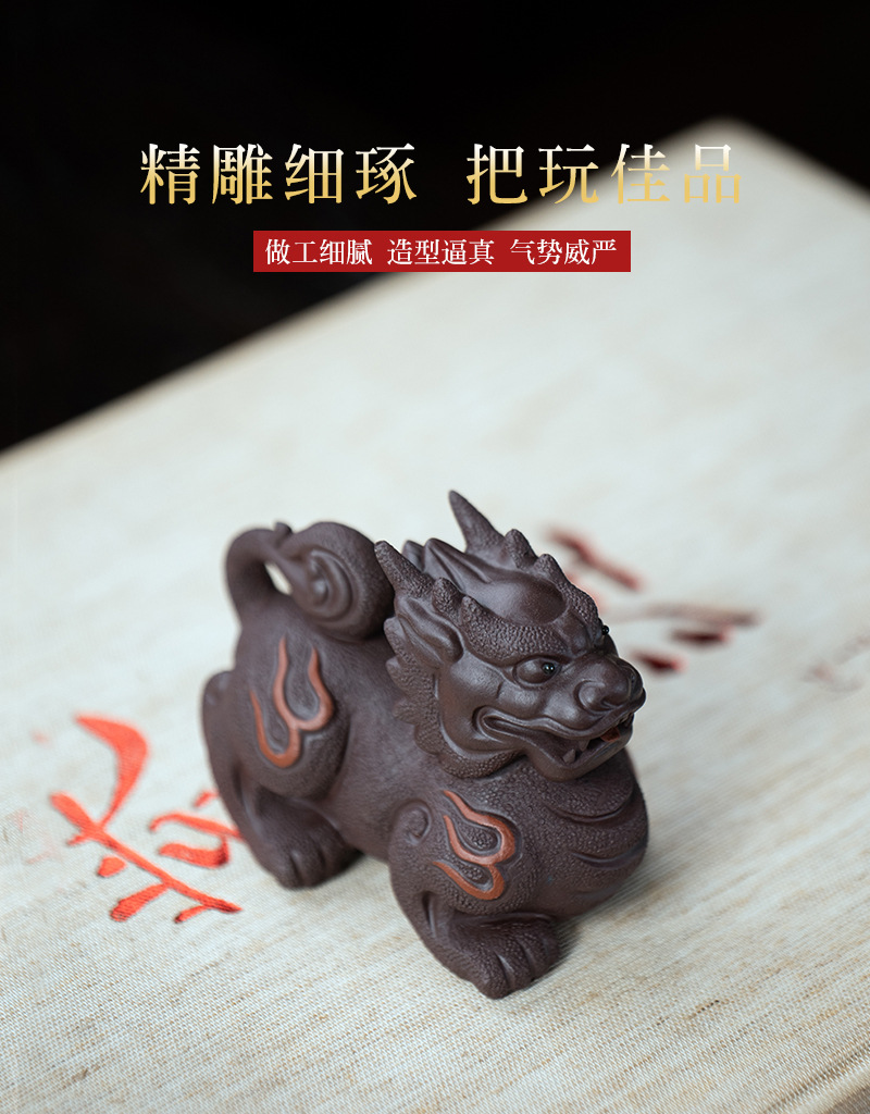 【精雕细琢把玩佳品❗️做工细腻造型逼真】宜兴纯紫砂茶宠麒麟摆件招财火貔貅可养茶具配件茶桌雕塑。jb