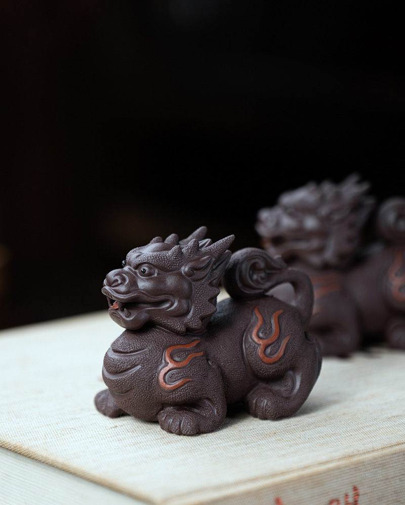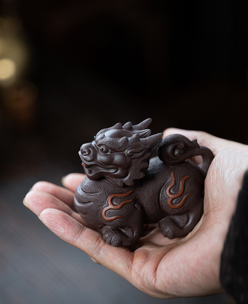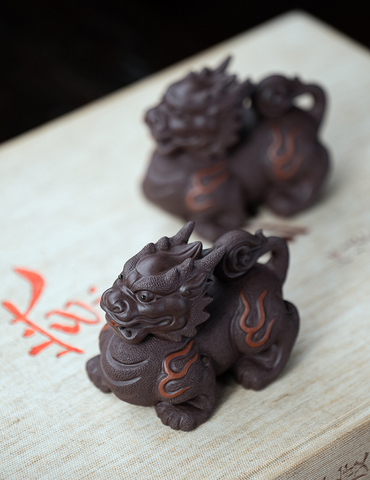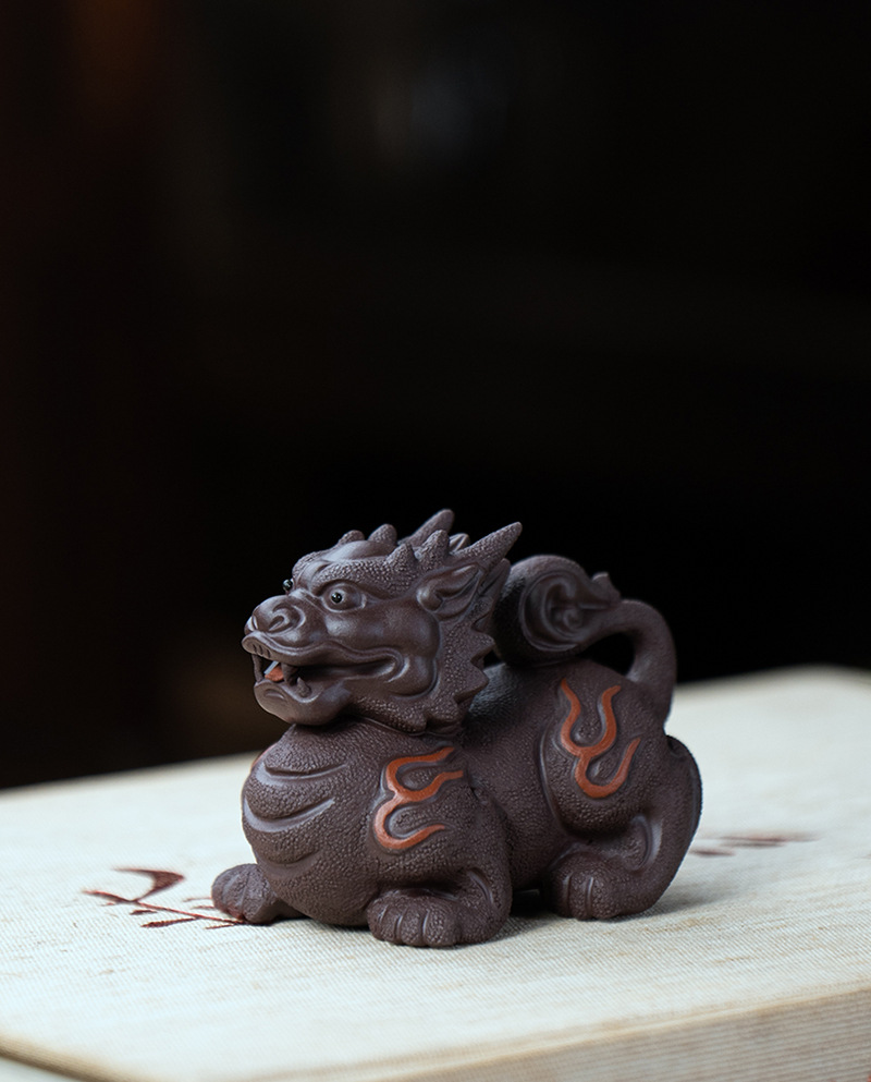 【精雕细琢把玩佳品❗️做工细腻造型逼真】宜兴纯紫砂茶宠麒麟摆件招财火貔貅可养茶具配件茶桌雕塑。jb