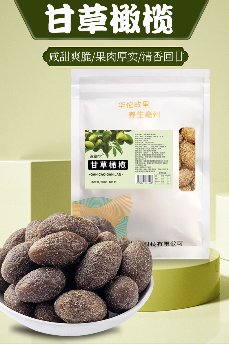 【果肉厚实,清香回甘~】甘草橄榄年货特产 甘草橄榄爽脆香草橄榄 零食下午茶工夫茶点心-QA