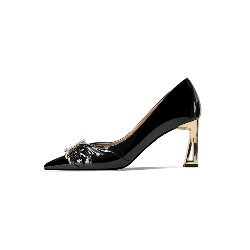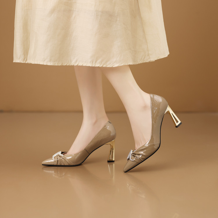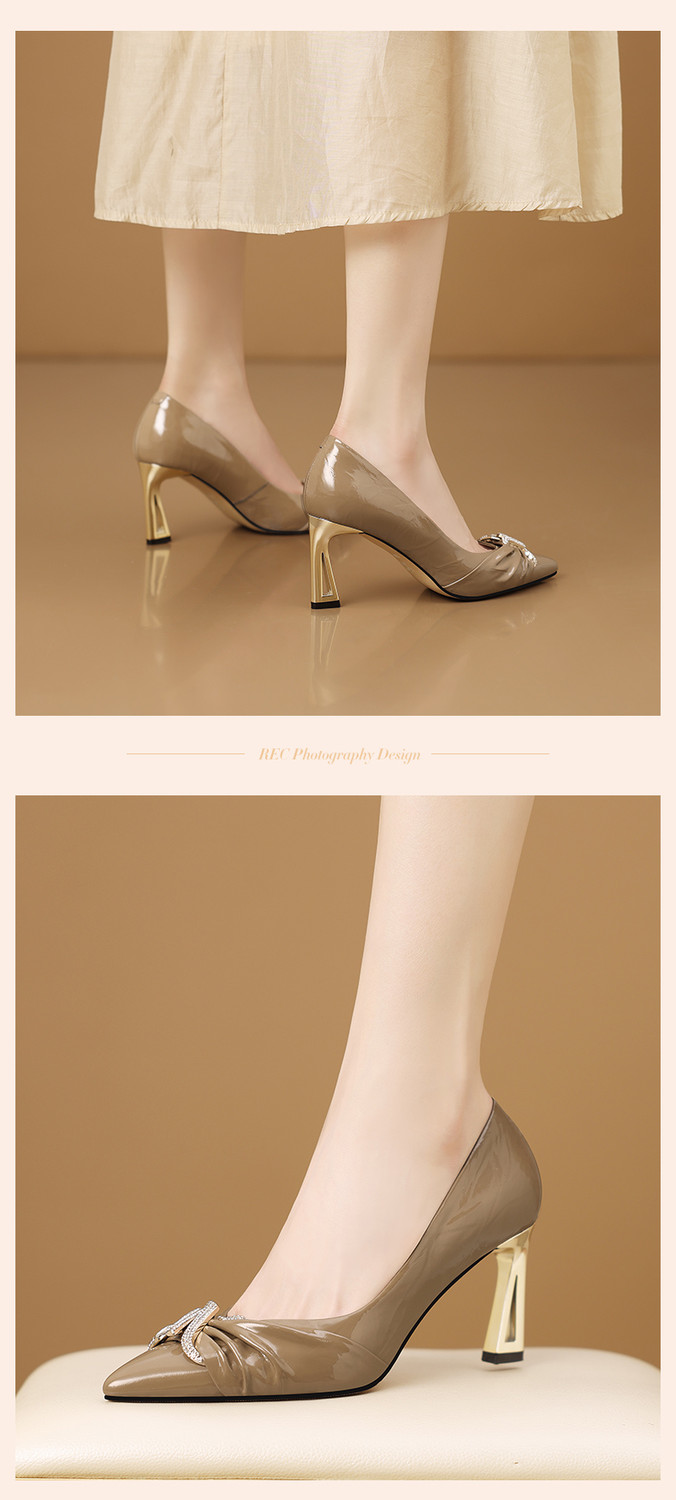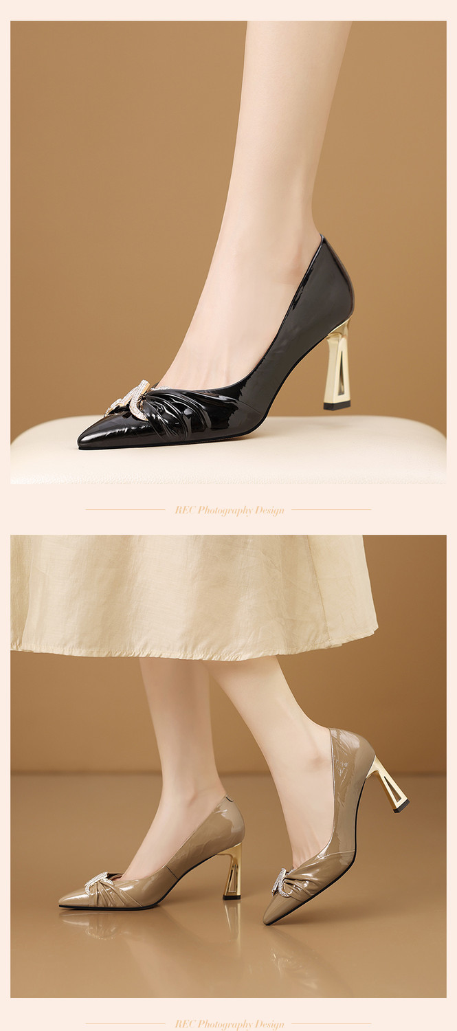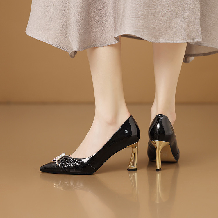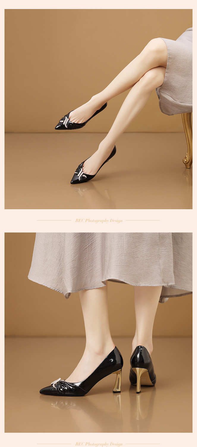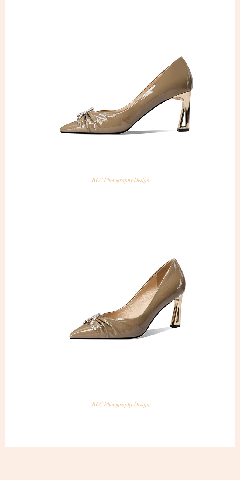 【货 号】H3643【鞋面材质】牛漆皮【垫脚-里皮】羊皮垫+猪皮里【鞋底材料】耐磨牛筋底【跟 高】7.5cm(电镀跟)【颜 色】黑色、杏色【尺 码】33-43(大小定制不退换)