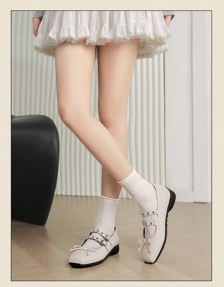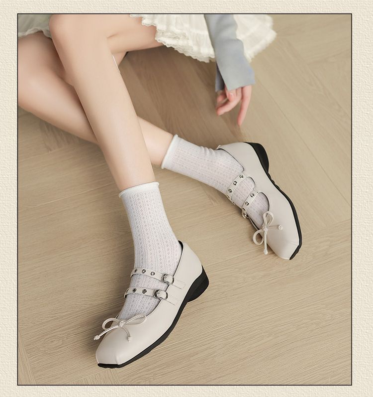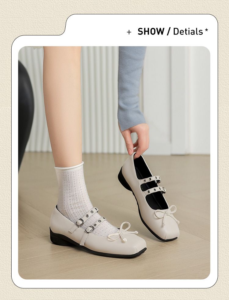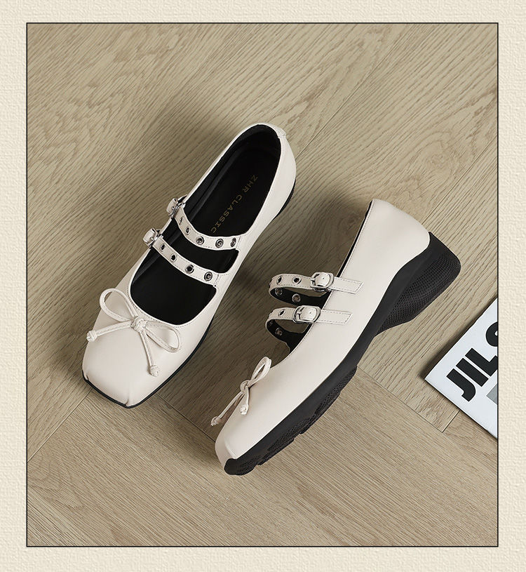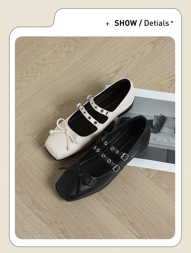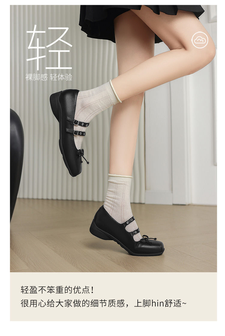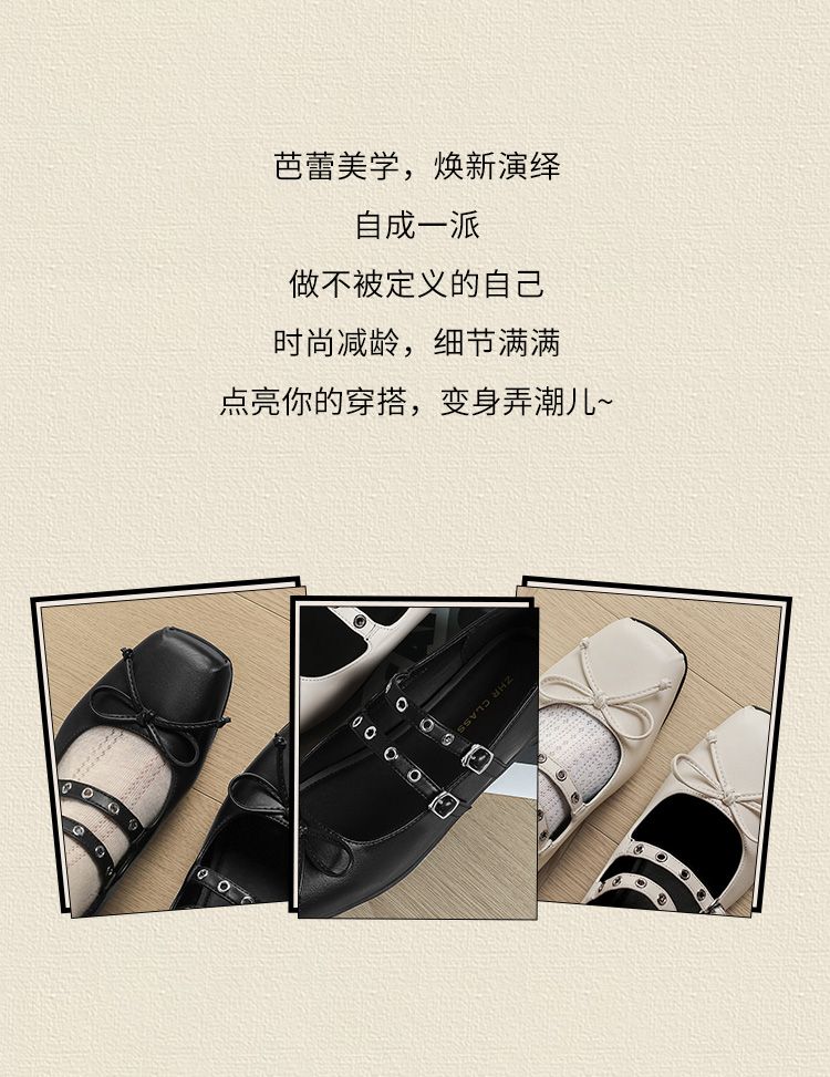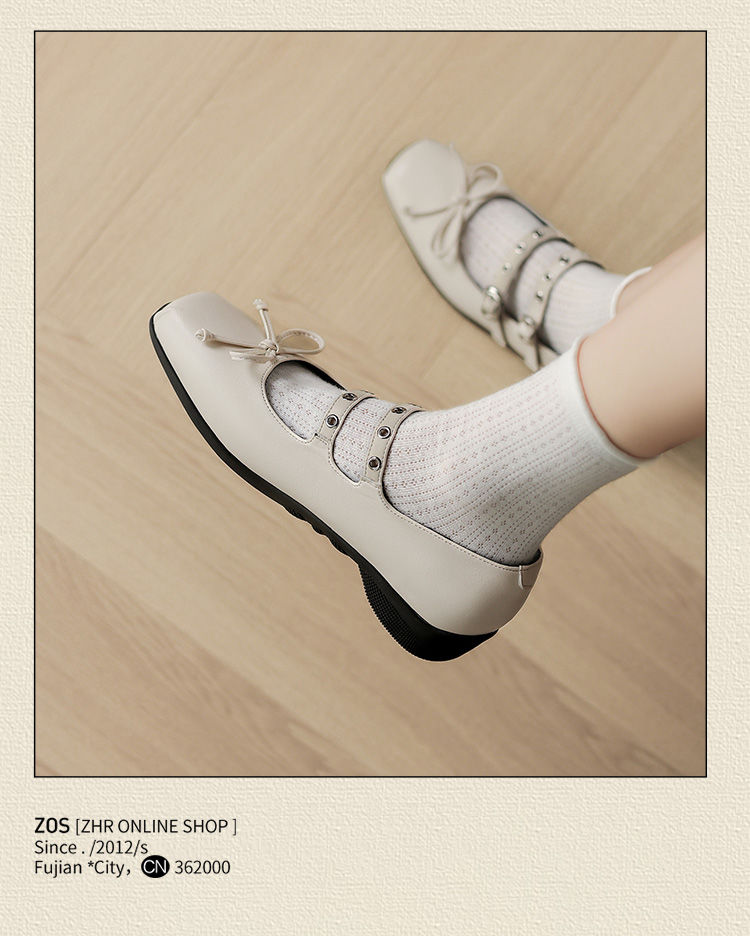 ZHR则则芭蕾鞋2025新款浅口单鞋蝴蝶结晚晚气质女鞋玛丽珍小皮鞋