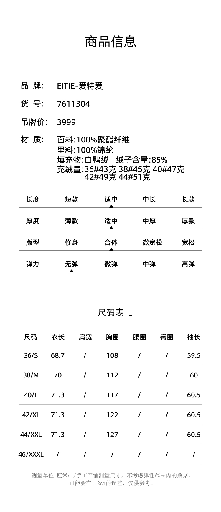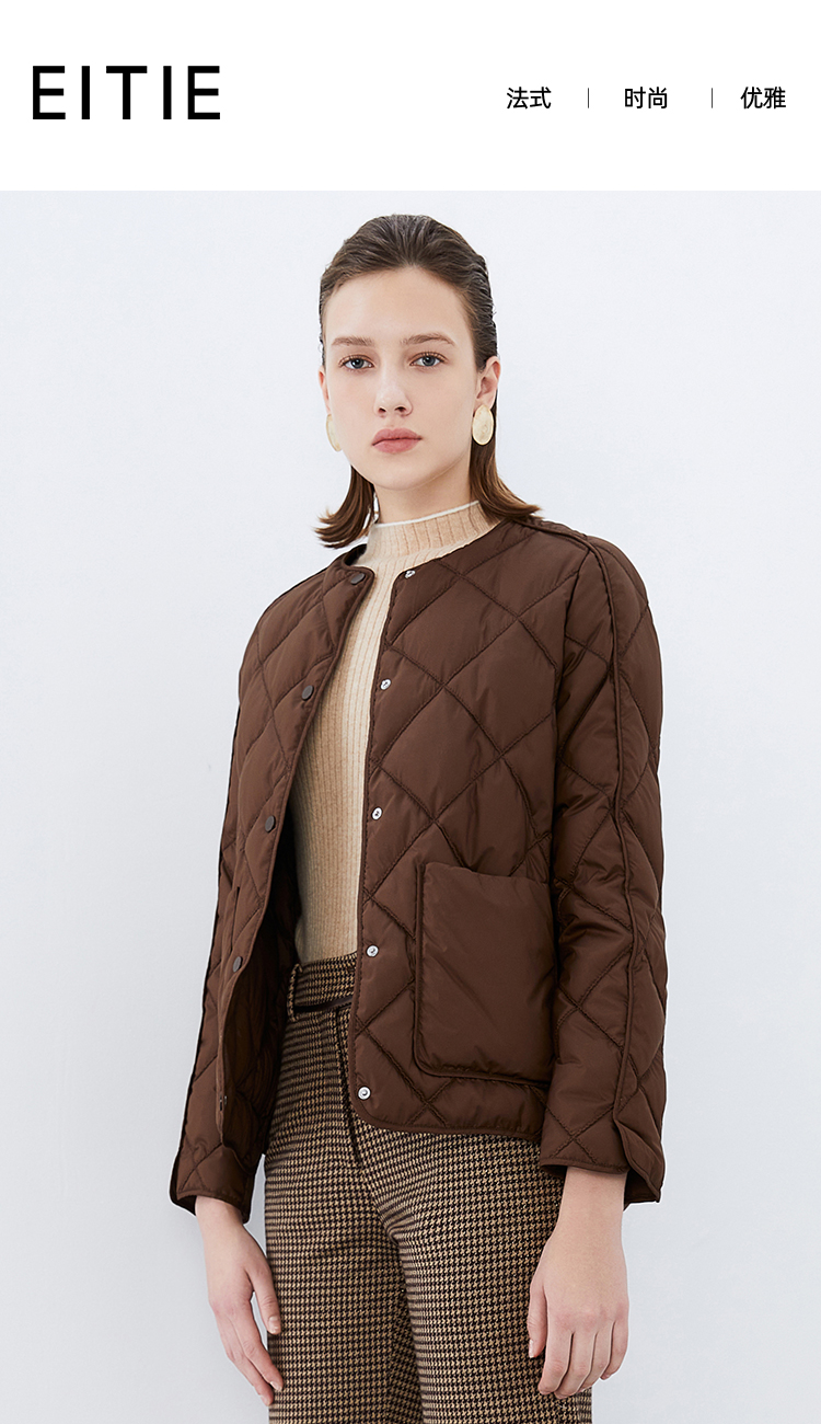 EITIE爱特爱冬季新款时尚简约优雅纯色短款羽绒服7611304