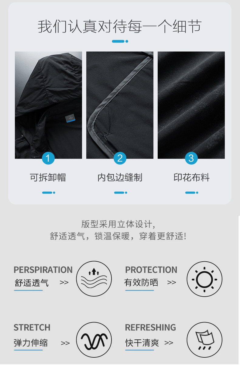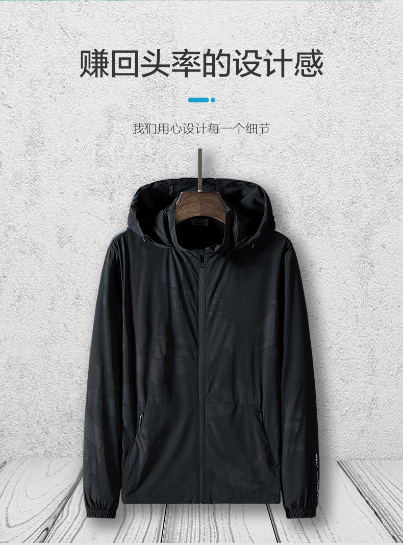 【Q】【防晒衣】【新款DTH】大依优型大码男装防晒衣皮肤衣薄款清凉防晒服透气高弹可拆卸帽子男夏季外套上衣