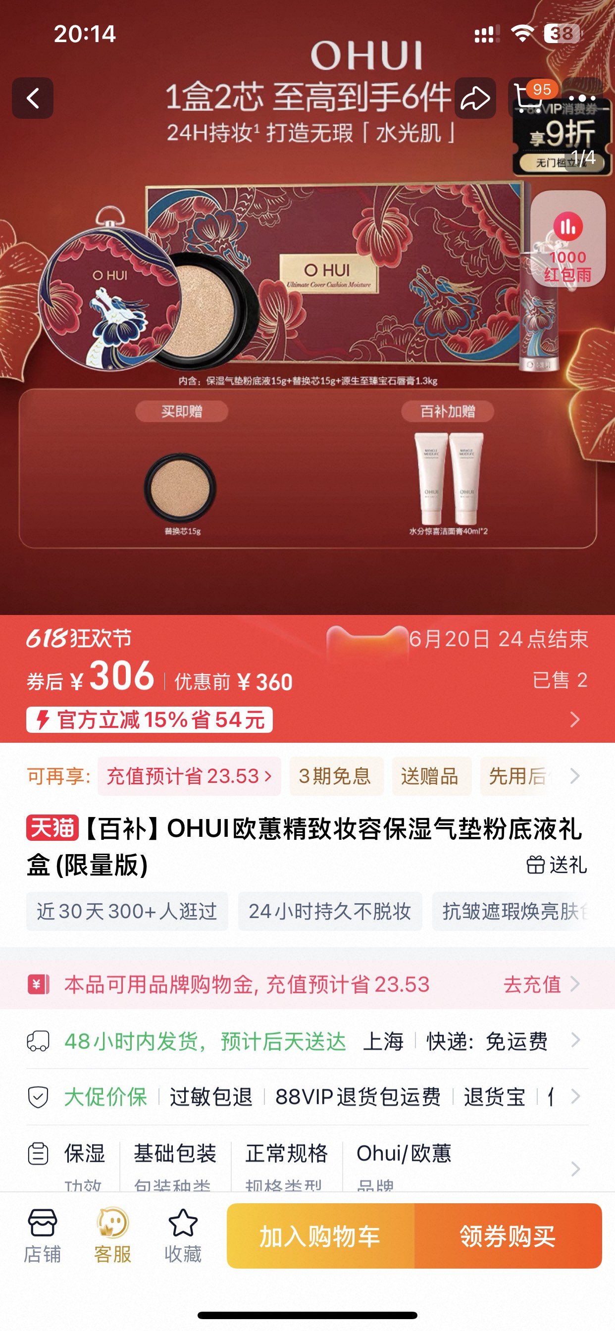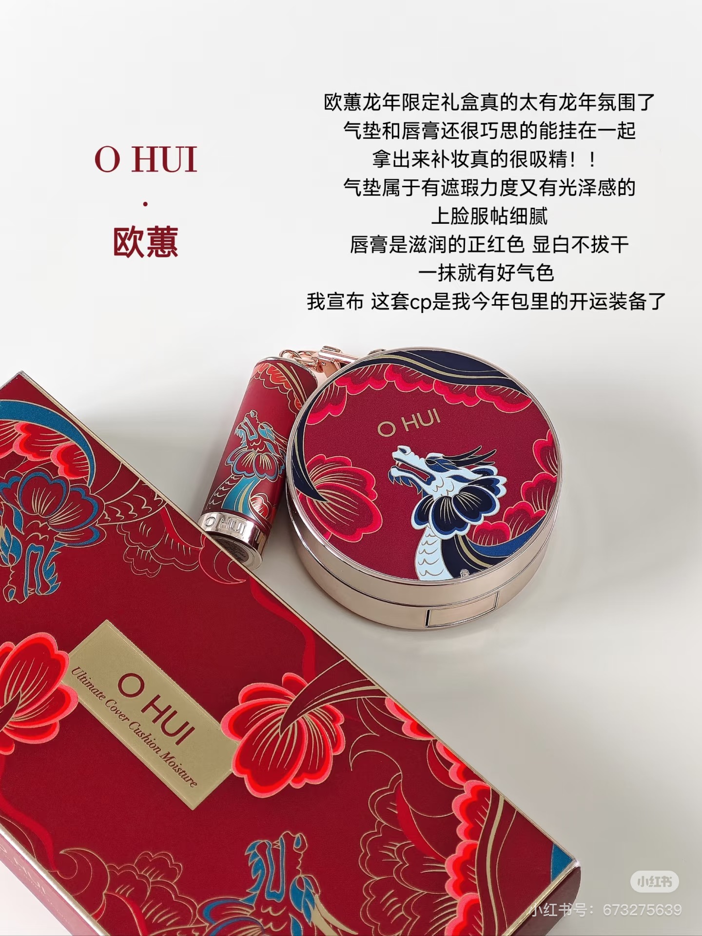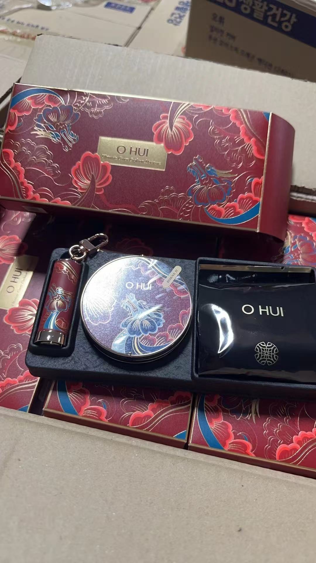 韩国欧&蕙气垫,是限量版套盒! 美白焕亮, 10cm近距离精致不减, 就连补妆也能无缝衔接之前的底妆! 有句话: 法国的香水, 韩国的粉, 到底有多神奇?使用感媲美1300元的LAMER粉, 毫不夸张。SPF50+/PA+++防晒指数,轻松防晒,细致修饰面部瑕疵,淡化干纹细纹,清润保湿,服帖不易卡粉,呈现焕白透亮肌肤。日期到26.12!五年算可用到28.12了!日期好非常好!送人都非常体面!这个是龙年的限量包装!2个色号:01白皙色和02自然。韩国的粉比欧美的都要白点,所以就算是02自然色也比其他牌子色号会白点