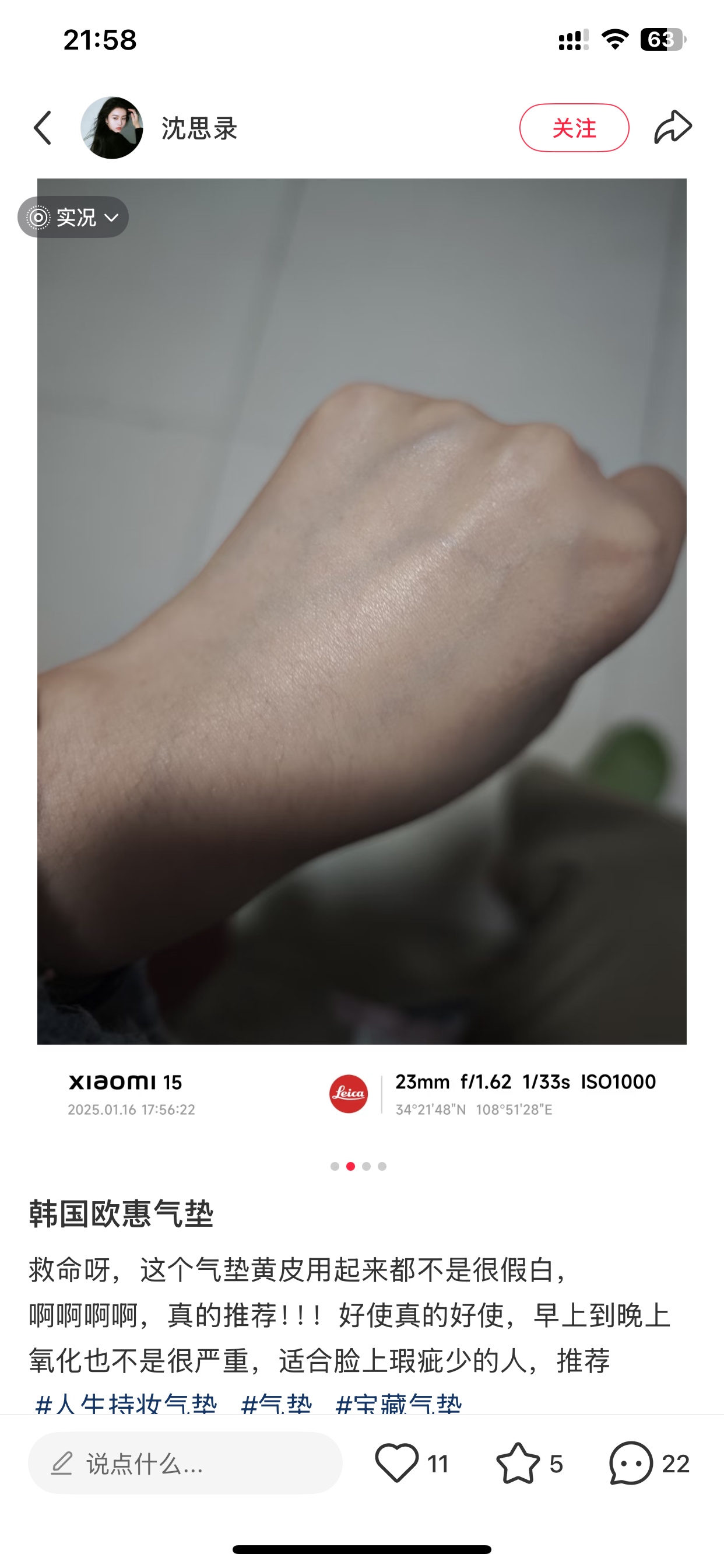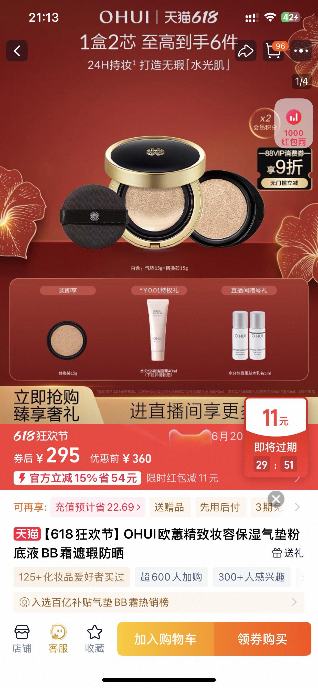 美白、保湿抗皱、防晒、隔离功效,气垫里增加了保湿成分,欧惠的独家气垫配方,保湿却不油,让底妆更加服帖舒适。真的好使,从早到晚氧化也不严重,关键很轻薄,水光感 韩国的粉底真的好用!买粉就要买韩国!自然规律 一个正装气垫+替换+口红!色号:01白皙色和02自然色 真正养肤气垫,里面含有烟酰胺,可以改善肌肤暗沉 不得不说韩国人是真的很会做气垫,上脸就是轻薄的微奶油肌妆效,一整个细腻通透 SPF50+/PA+++防晒指数,轻松防晒,细致修饰面部瑕疵,淡化干纹细纹,清润保湿,服帖不易卡粉,呈现焕白透亮肌肤。