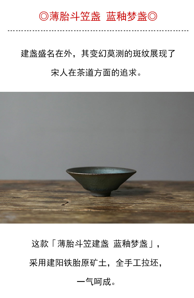 茶香记 60ml建阳建盏薄胎斗笠盏手工茶杯蓝釉梦盏大气经典瑰丽