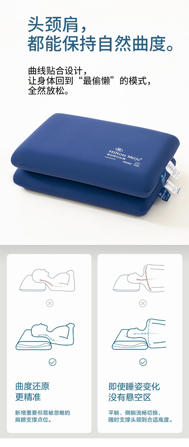 【89.9元/2个 星级酒店同款 享“0压深睡”体验】HILTON MEIJU 慢回弹A类记忆枕 蓝/灰2色可选