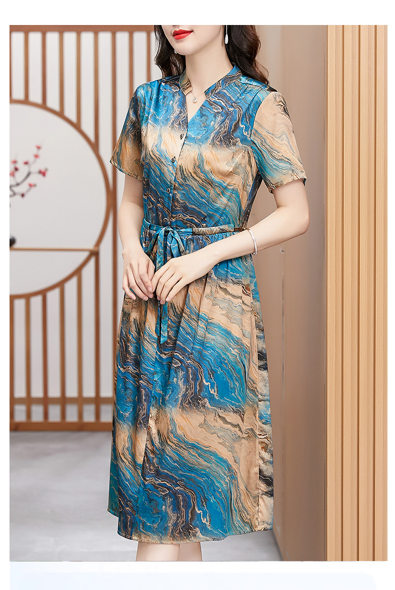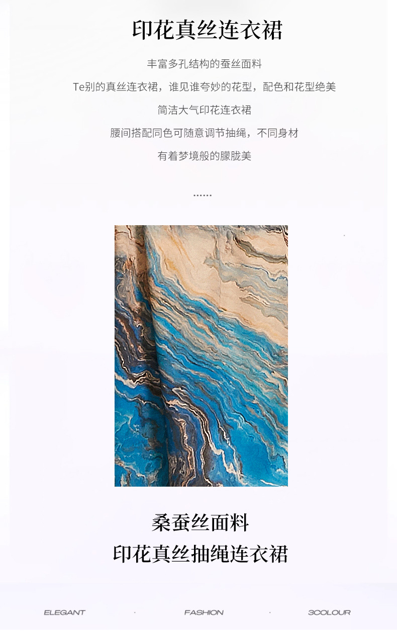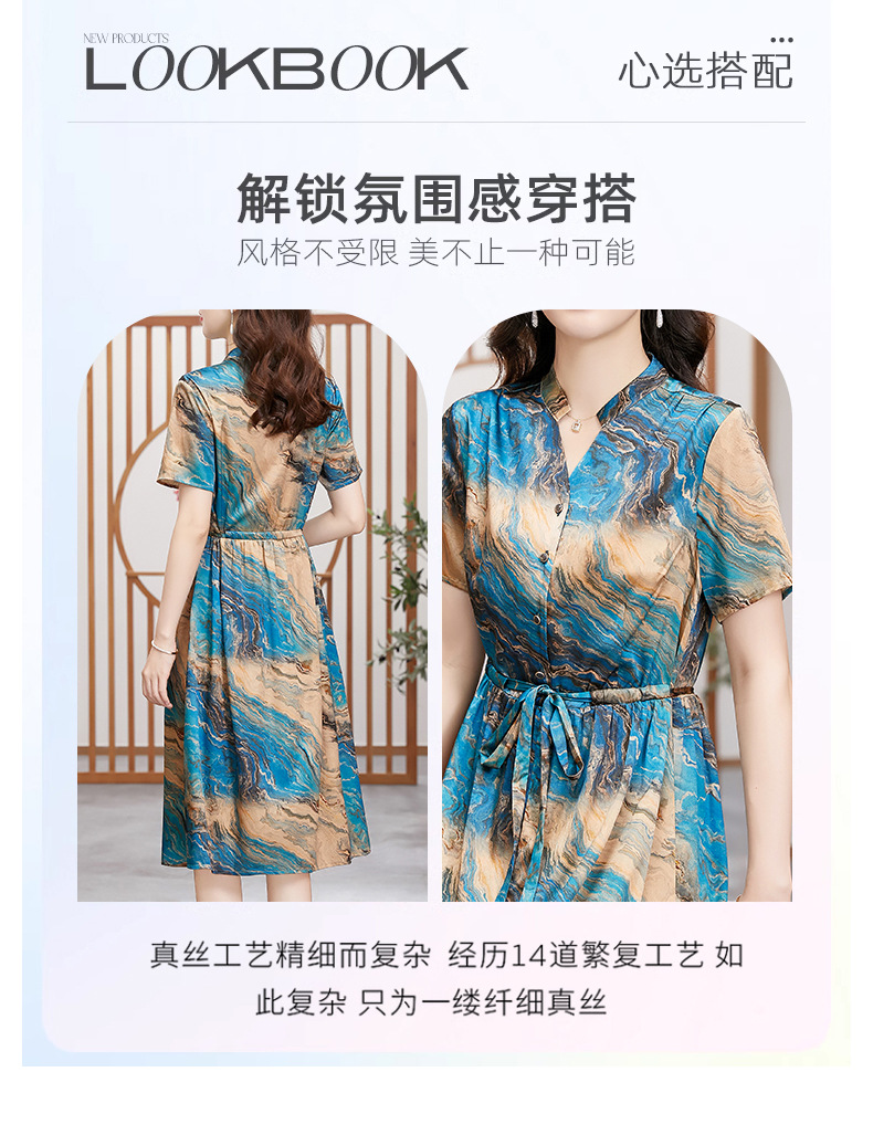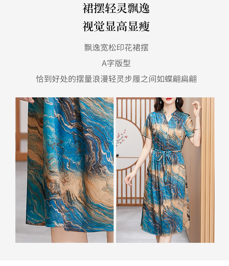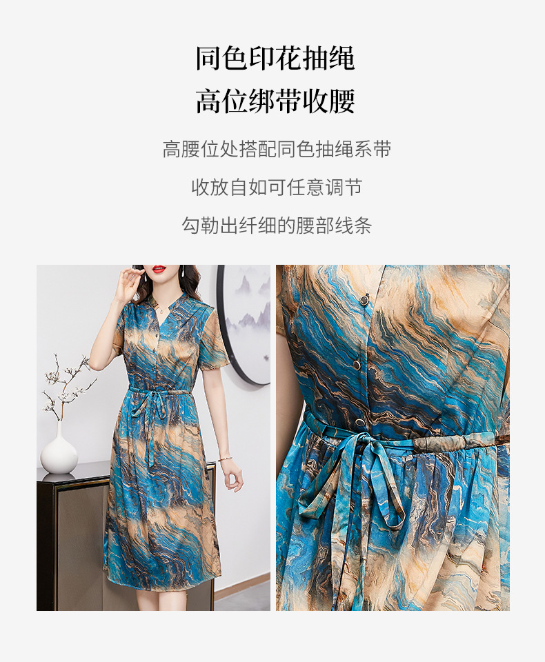 TC 221215桑蚕丝连衣裙气质印花收腰显瘦真丝裙