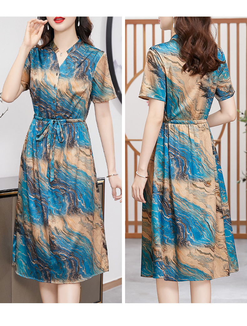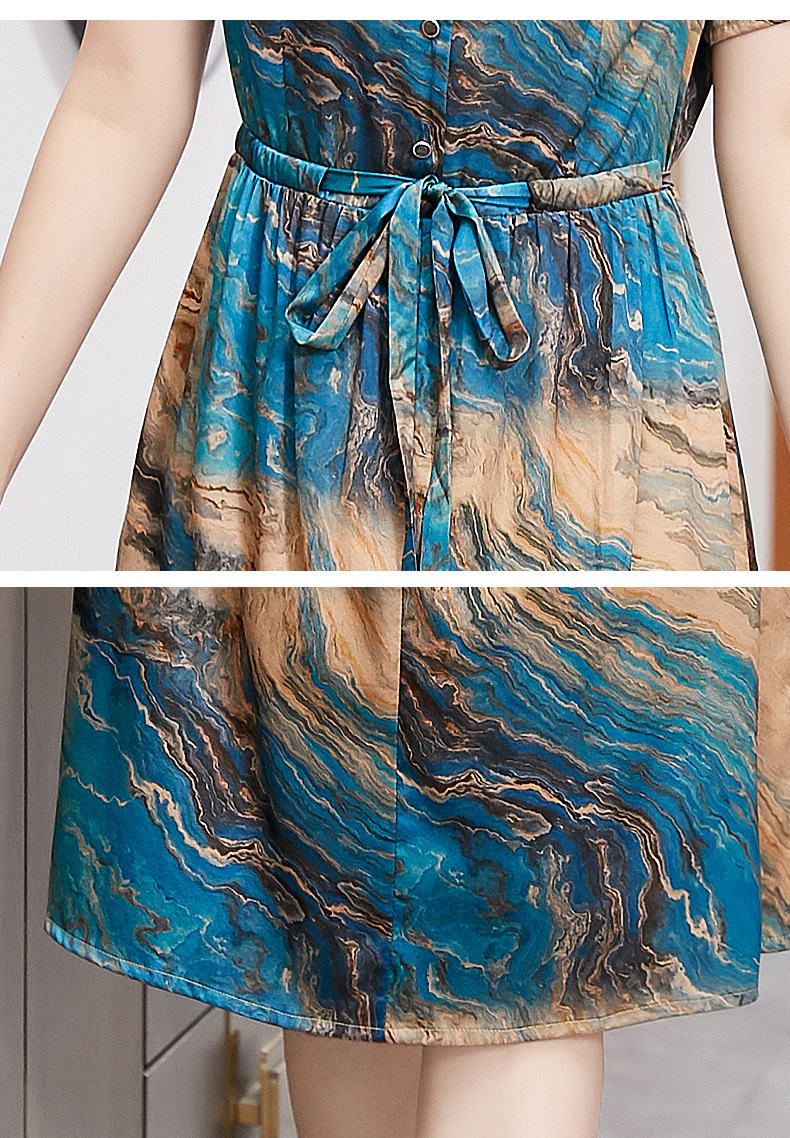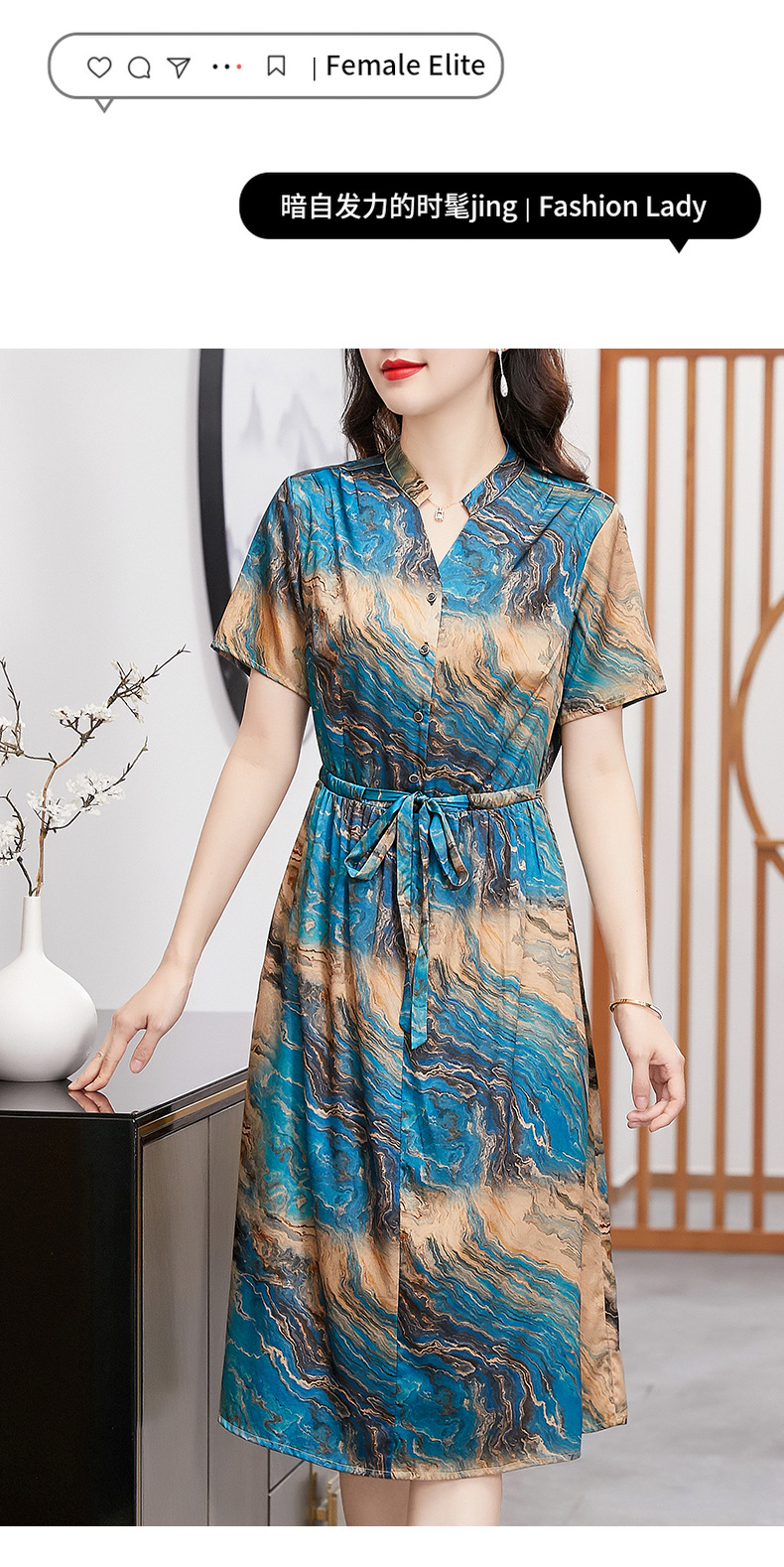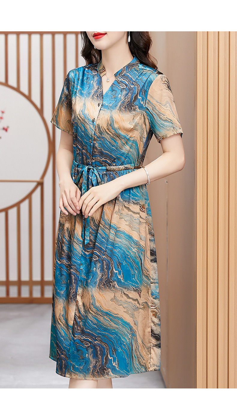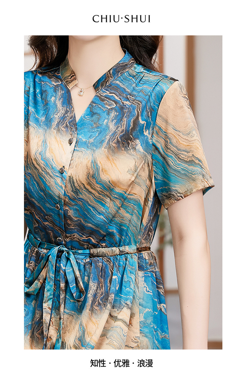 TC 221215桑蚕丝连衣裙气质印花收腰显瘦真丝裙