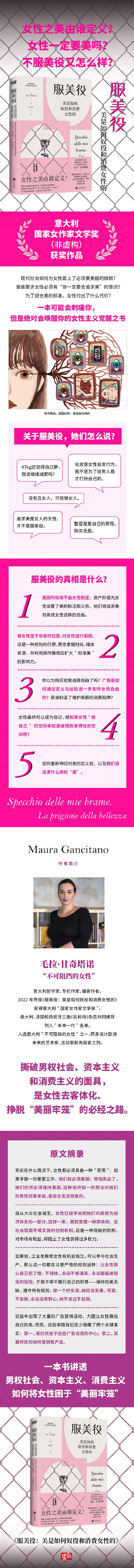 在这本书中,玛乌拉·刚齐达诺向我们展示了哲学、人类学、社会心理学和数据科学的发现。主要讲述了美丽是如何被定义的以及现代审美观形成的过程,包括制定标准的阶层是如何利用传媒产业比如摄影、广告、时尚杂志,利用衣服尺码、消费主义对女性实施隐性的压迫,导致女性被困在美丽的囚笼中。在文中的后一章作者同样针对这一现象提出了“逃脱美丽囚笼”的方法,教给现代社会女性如何在互联网浪潮中认清自我。今天的美是一种非常特殊的适应方式:穿衣、吃饭、说话、走路的特定方式。这不是一个纯粹的审美问题,而是一种行使权力的政治技巧。换句话说,我们没有意识到自己被关在一个镀金的笼子里面。认为美是客观和自然的东西是一种现代迷信。事实上,从来没有一个不同的审美和情感不共存的时代。当对女性的物质胁迫开始缓和时,对外表的审美规范变得僵化和令人窒息。重点是:美的观念随着资产阶级社会发生了意义的转变,从一个谜变成了殖民女性时间和思想的标准化模式,常常让她们感到自己是不足的、急需提高的。我们生活在一个人们终可以获得自由的时代,但恰恰相反,只有符合某些对身材的数值要求才有价值和尊严。
