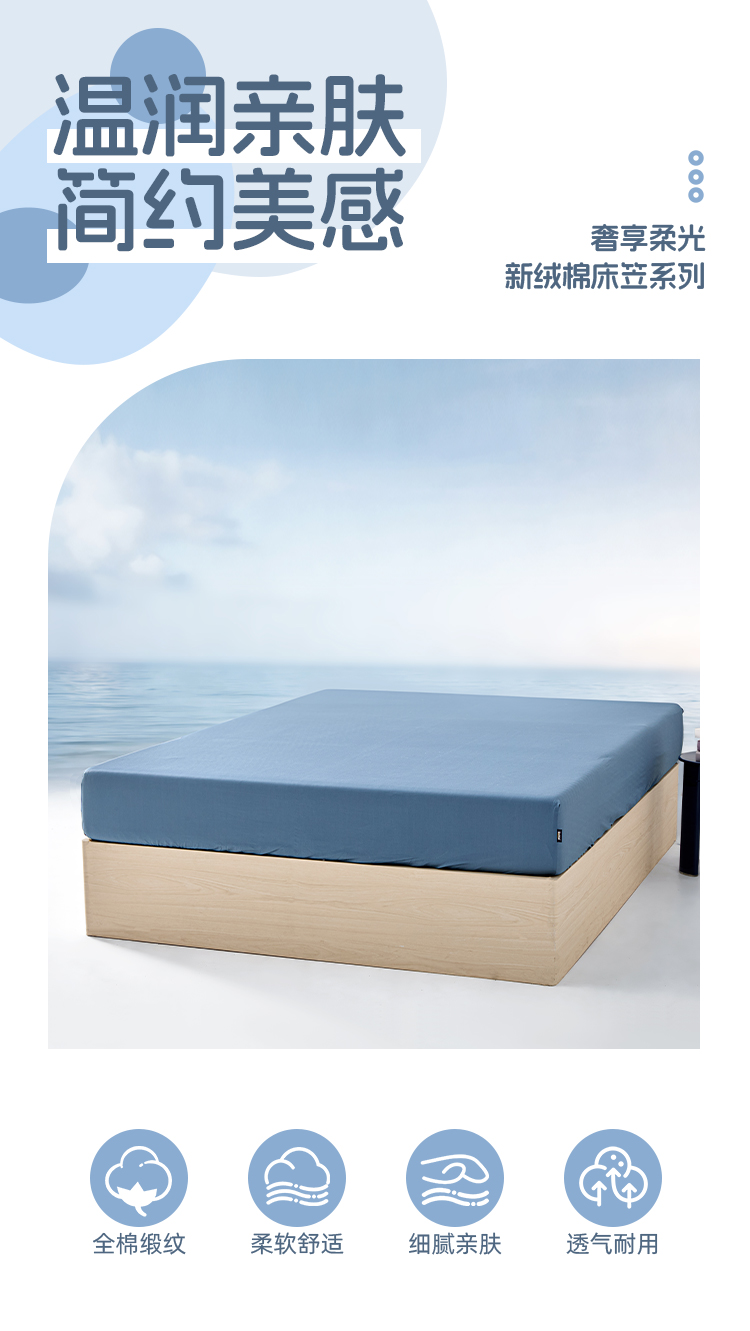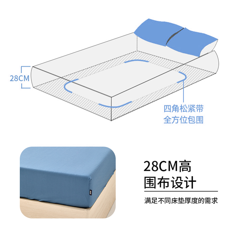 多喜爱 60S奢享柔光新绒棉床笠【五色可选】【全棉缎纹】【28CM高 围布设计】【四角松紧带】【360防滑】柔软舒适 细腻亲肤