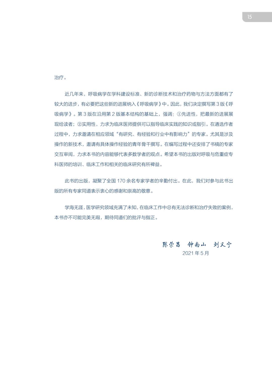 近20年薪火相传、匠心打磨,第3版(主编陈荣昌、钟南山、刘又宁)传承与拓新并举,进一步夯实科学性和实用性,图文精美,制作精良。作者有从“非典”到“新冠”、矗立抗“疫”一线的“共和国勋章”获得者钟南山院士,有守护高原人民健康的“七一勋章”获得者吴天一院士······170位编者,群贤毕至,冠盖中华,他们于抗击新冠疫情的同时仍挑灯审改,精益求精。