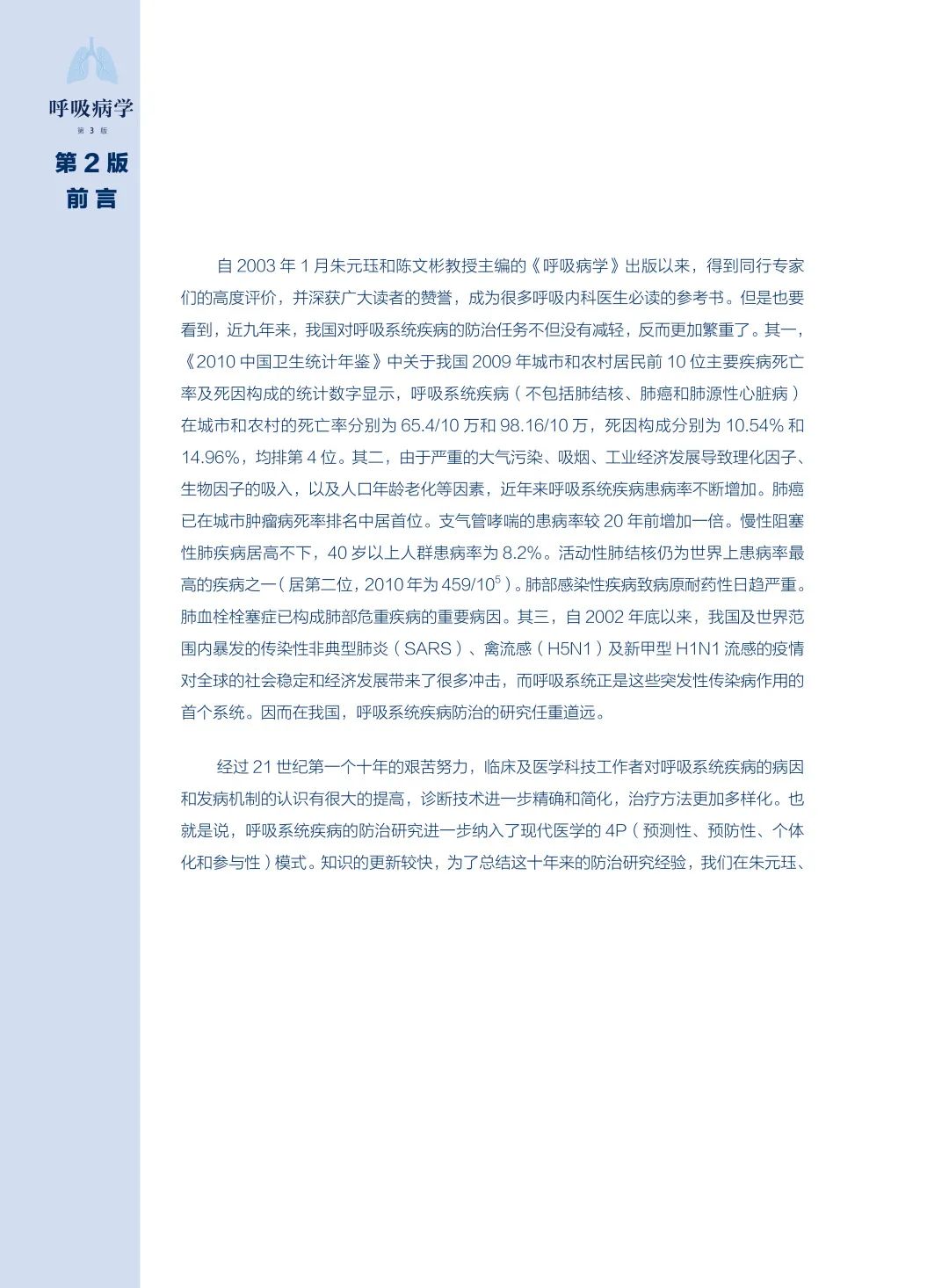 《呼吸病学》第1版(主编朱元珏、陈文彬)于2003年1月出版,第2版(主编钟南山、刘又宁)于2012年出版,均以全面精炼的基础理论、科学实用的临床精要及先进精准的诊治技术,成为医生良师益友般的案头经典。