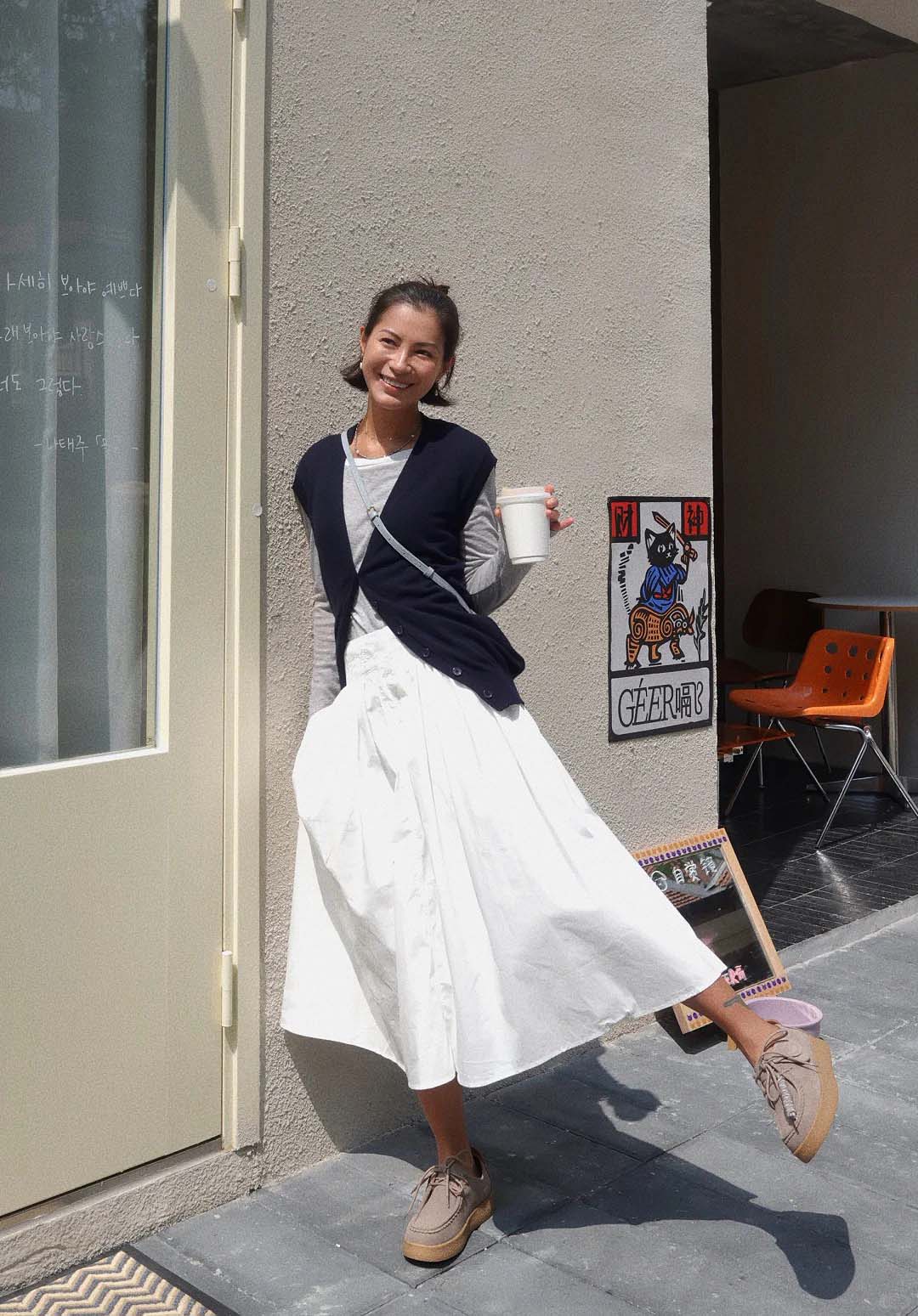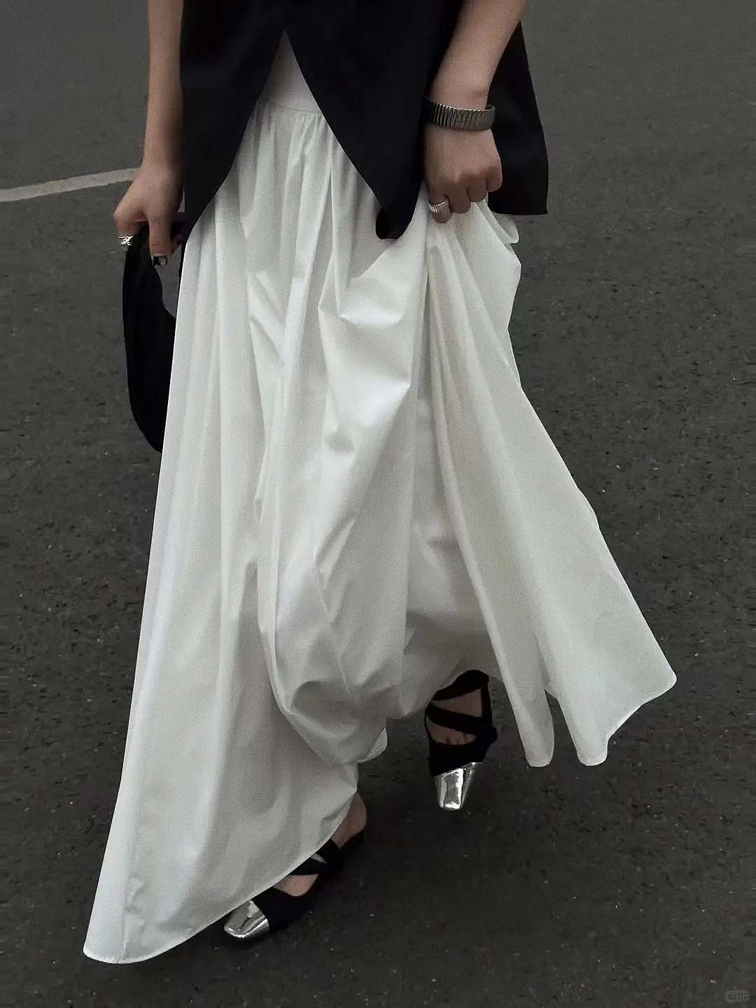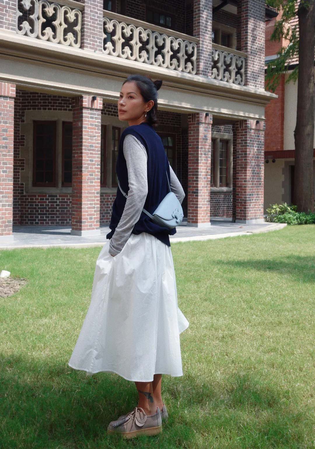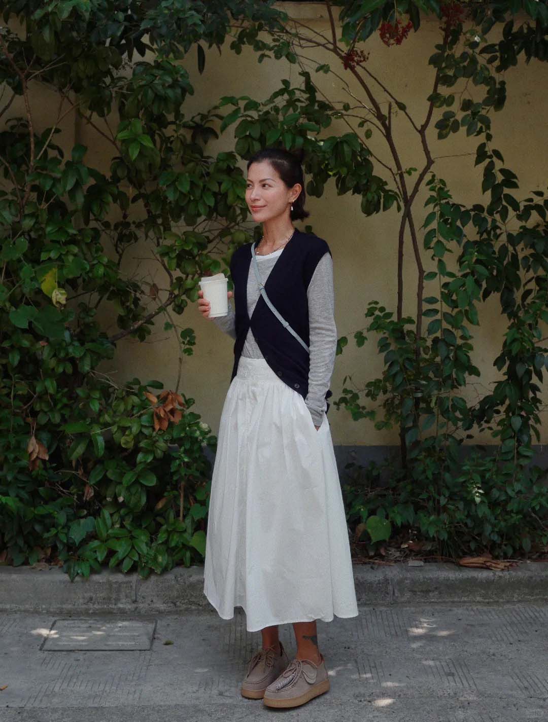 一年四季都可以穿的赫本风半身裙,经典不过时,白色碎褶半身裙
