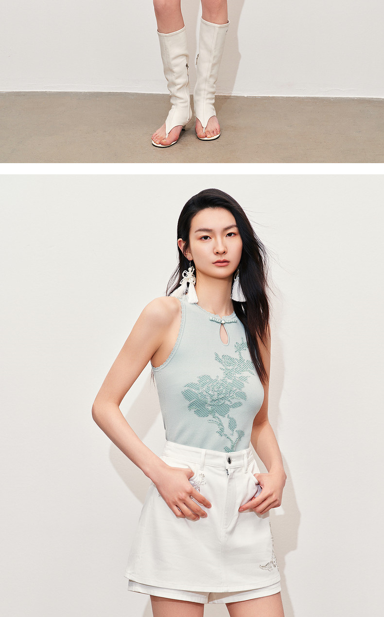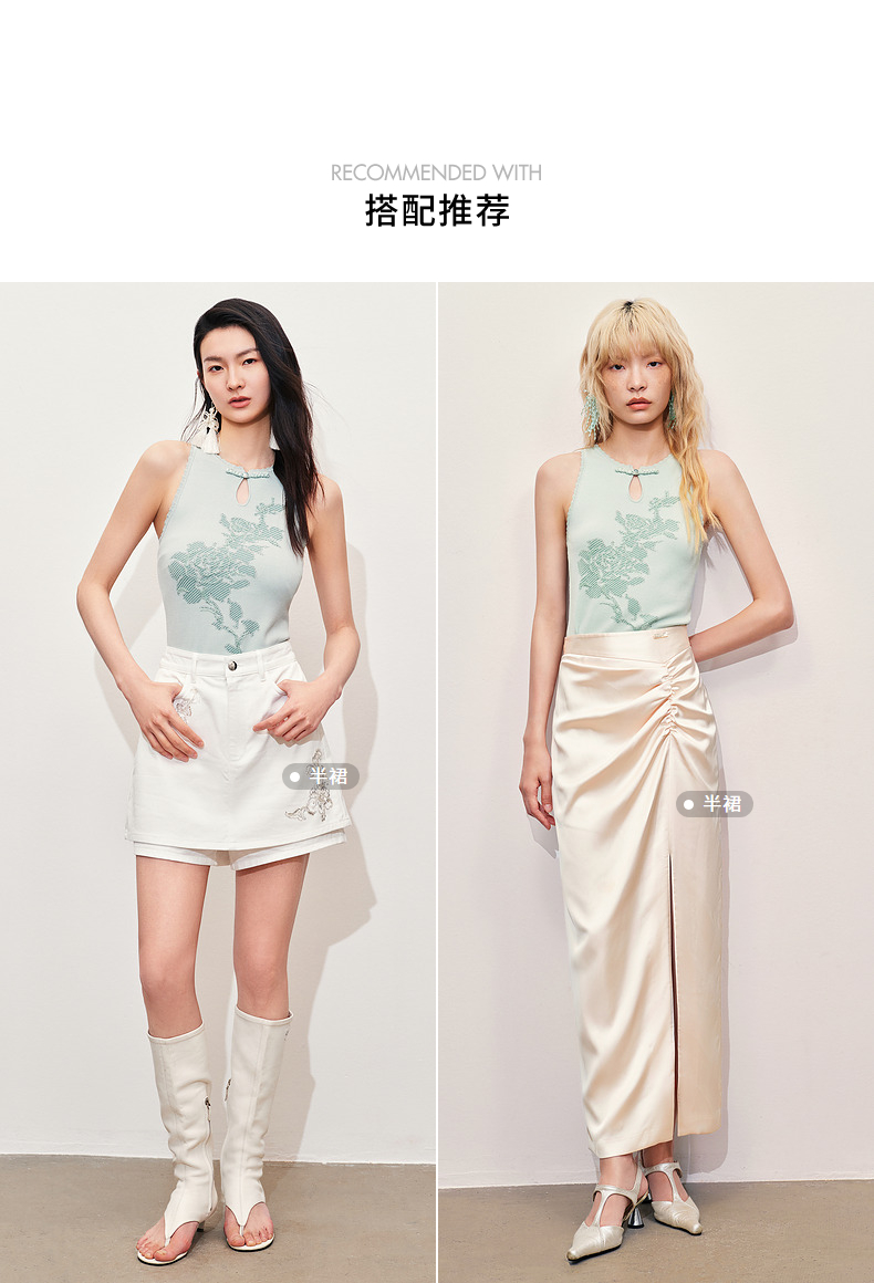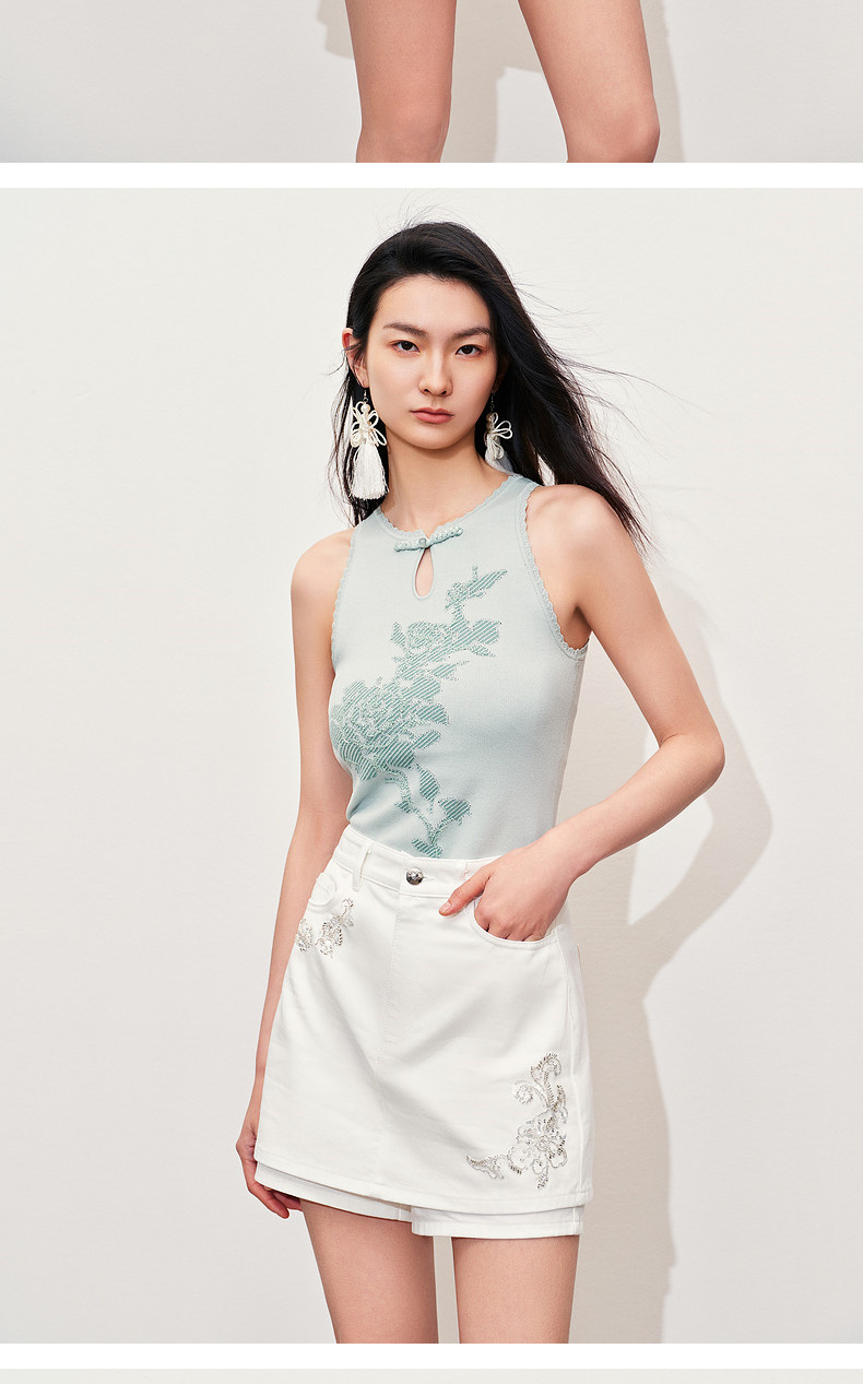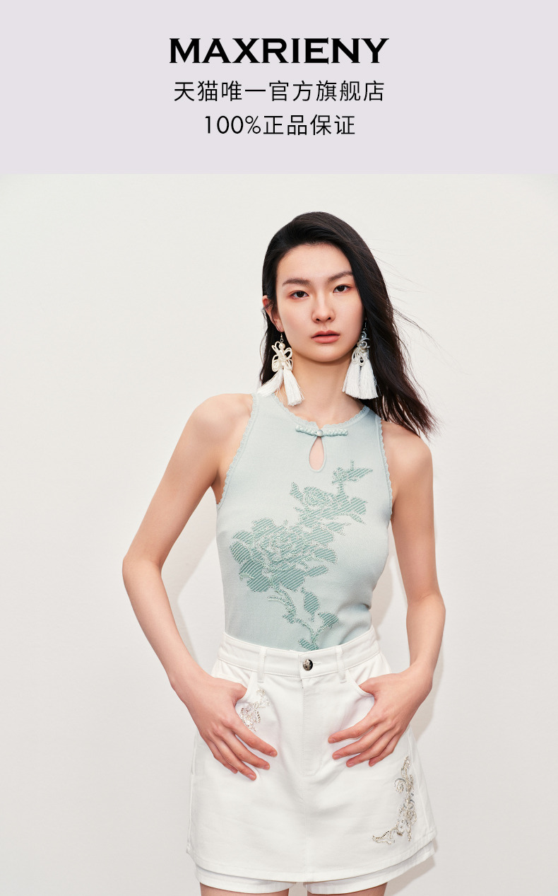 【贵雅新中式-商场同款】MAXRIENY新中式薄荷绿提花针织背心上衣(货号:MC85SW257)