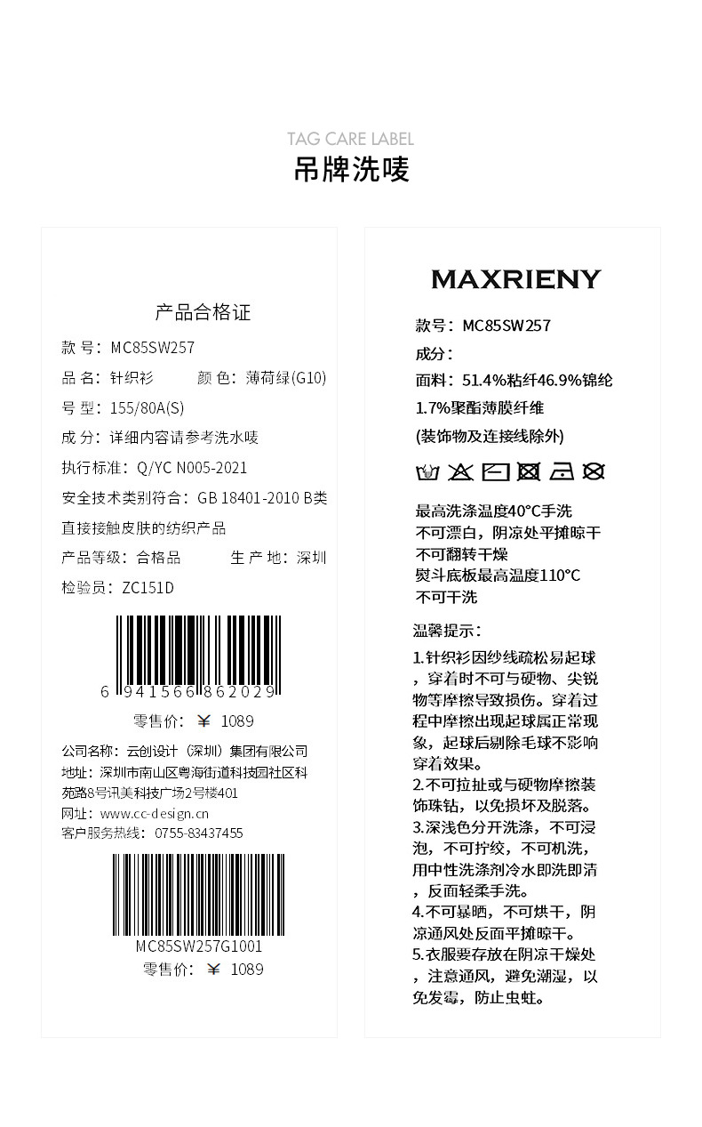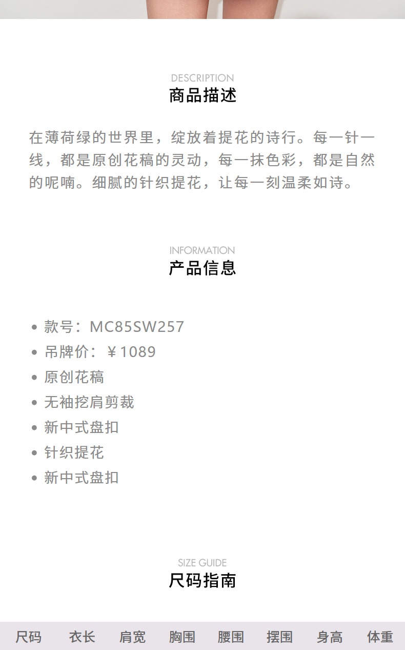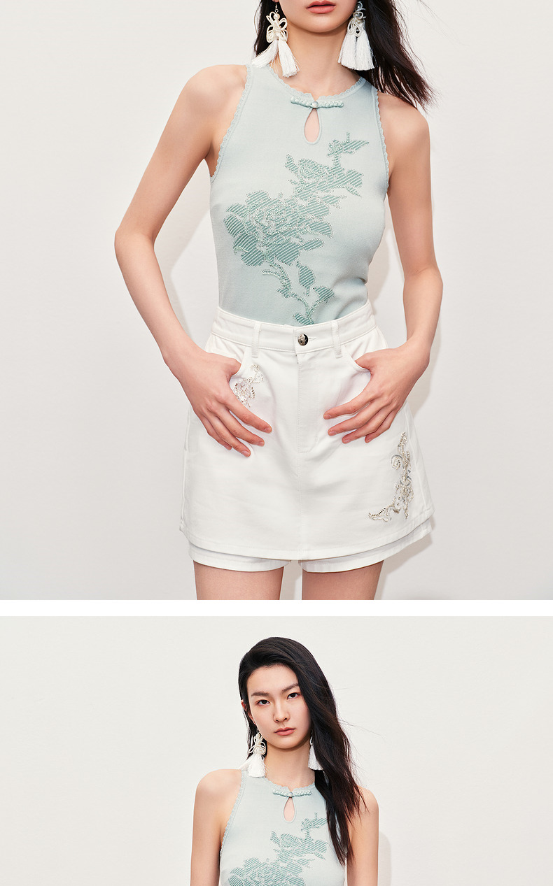 【贵雅新中式-商场同款】MAXRIENY新中式薄荷绿提花针织背心上衣(货号:MC85SW257)
