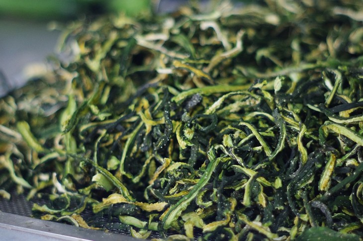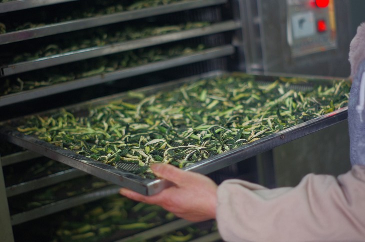 将青瓜摘下切条后,经过低温烘烤22小时。