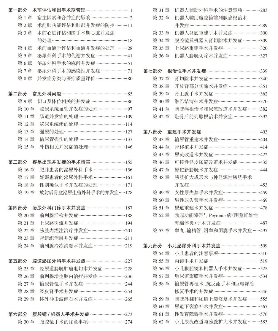 新增15个章节,包括漏尿的处理、妊娠患者的泌尿外科手术、性别确认手术并发症的处理、放射后骨盆的泌尿生殖系统手术并发症、机器人盆底重建并发症和机器人膀胱切除术并发症。