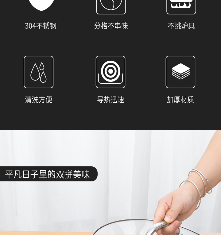 Debo德铂帕洛克不锈钢鸳鸯锅/1件(口径30cm)补单专用