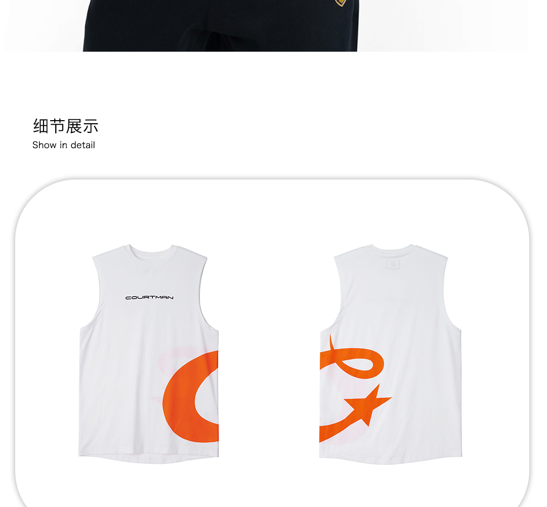 COURTMAN野球帝 侧面星标运动速干透气美式投篮背心男士无袖上衣