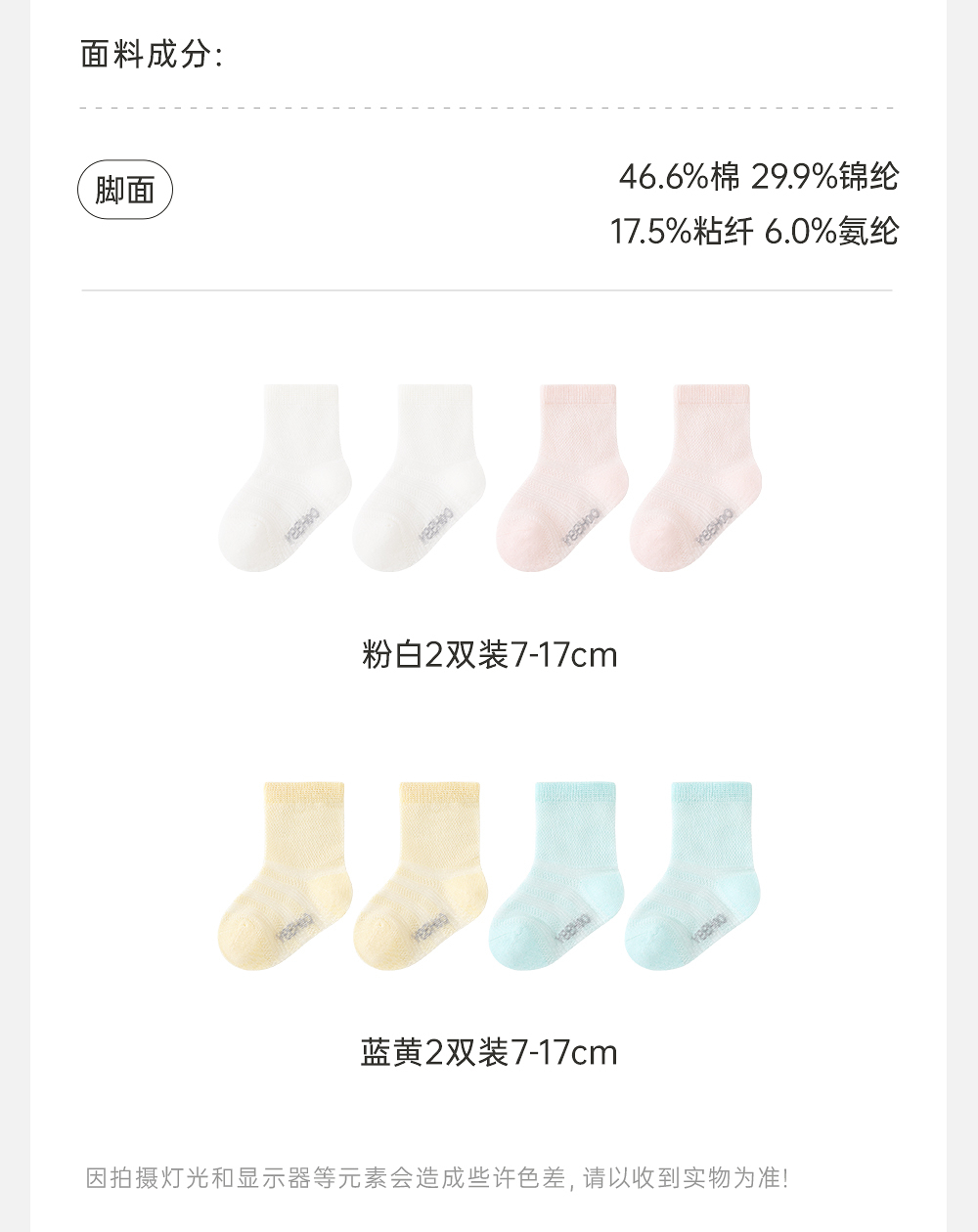 【商场同款】英氏儿童袜子夏季防臭透气婴儿薄袜男女宝短袜两双装