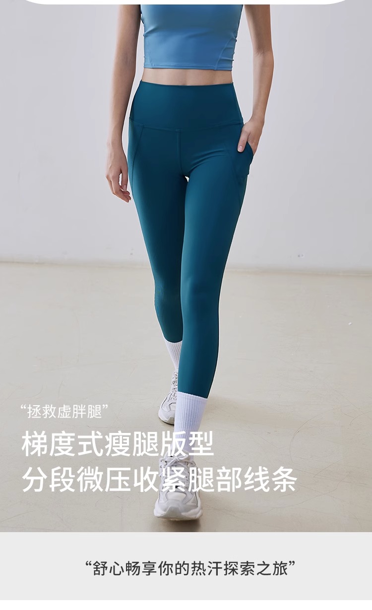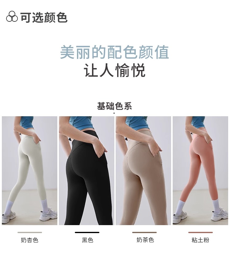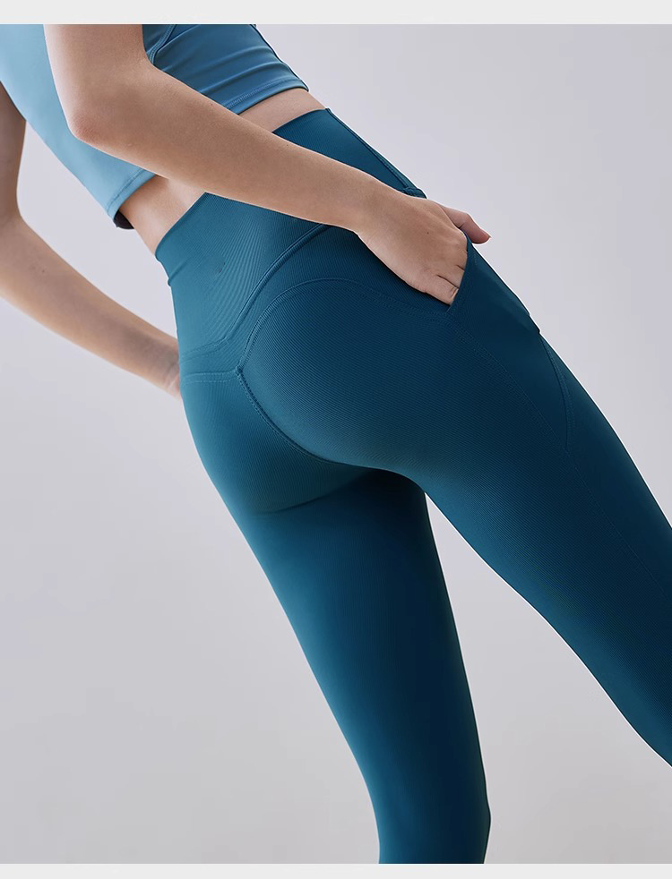 跃牌【禅语梵心系列】高腰提臀瑜伽裤口袋塑形罗纹紧身九分裤 CK2375