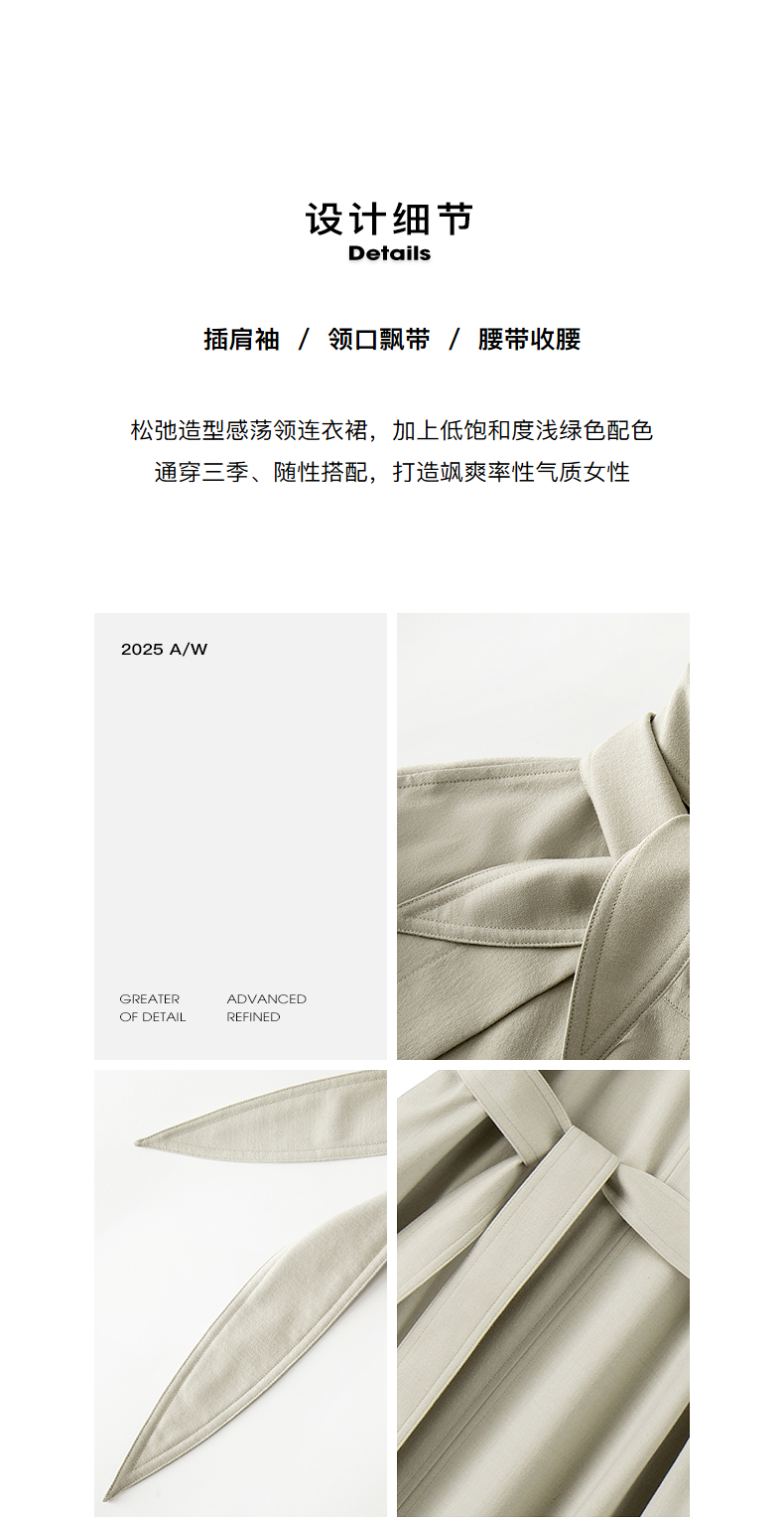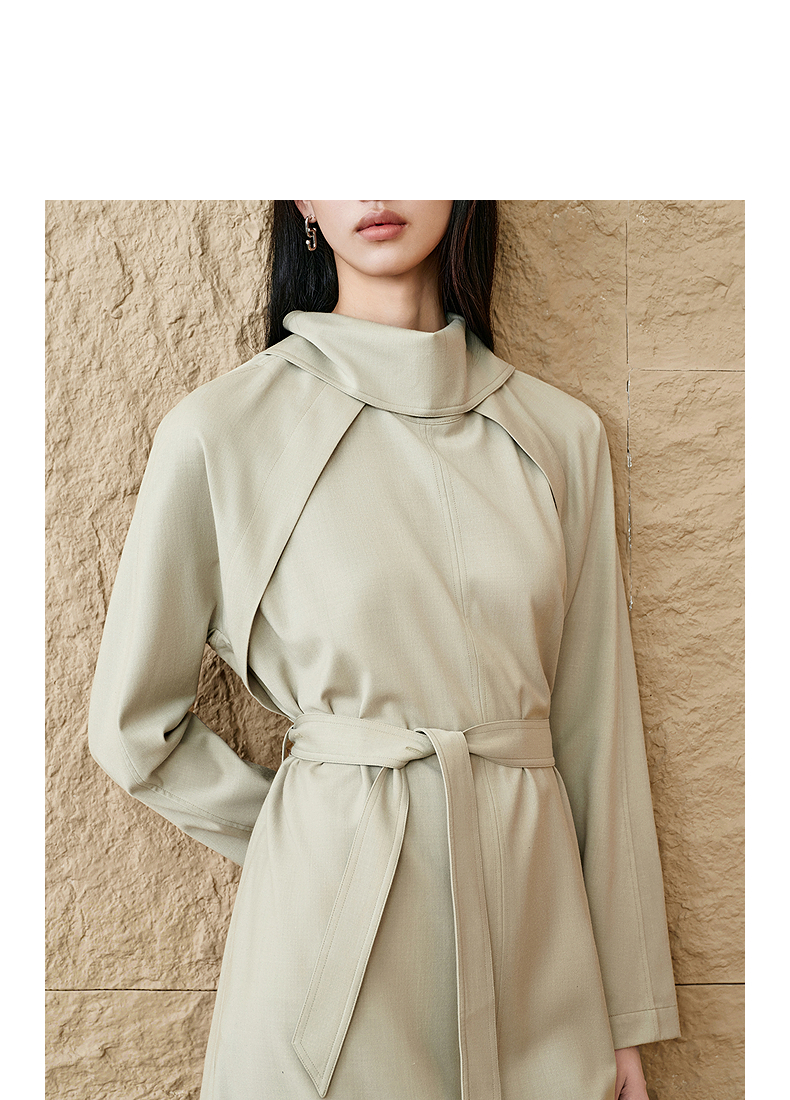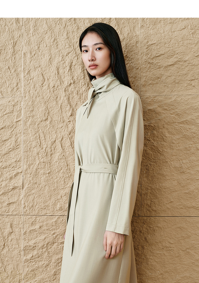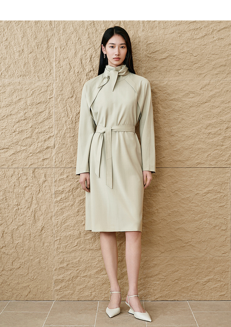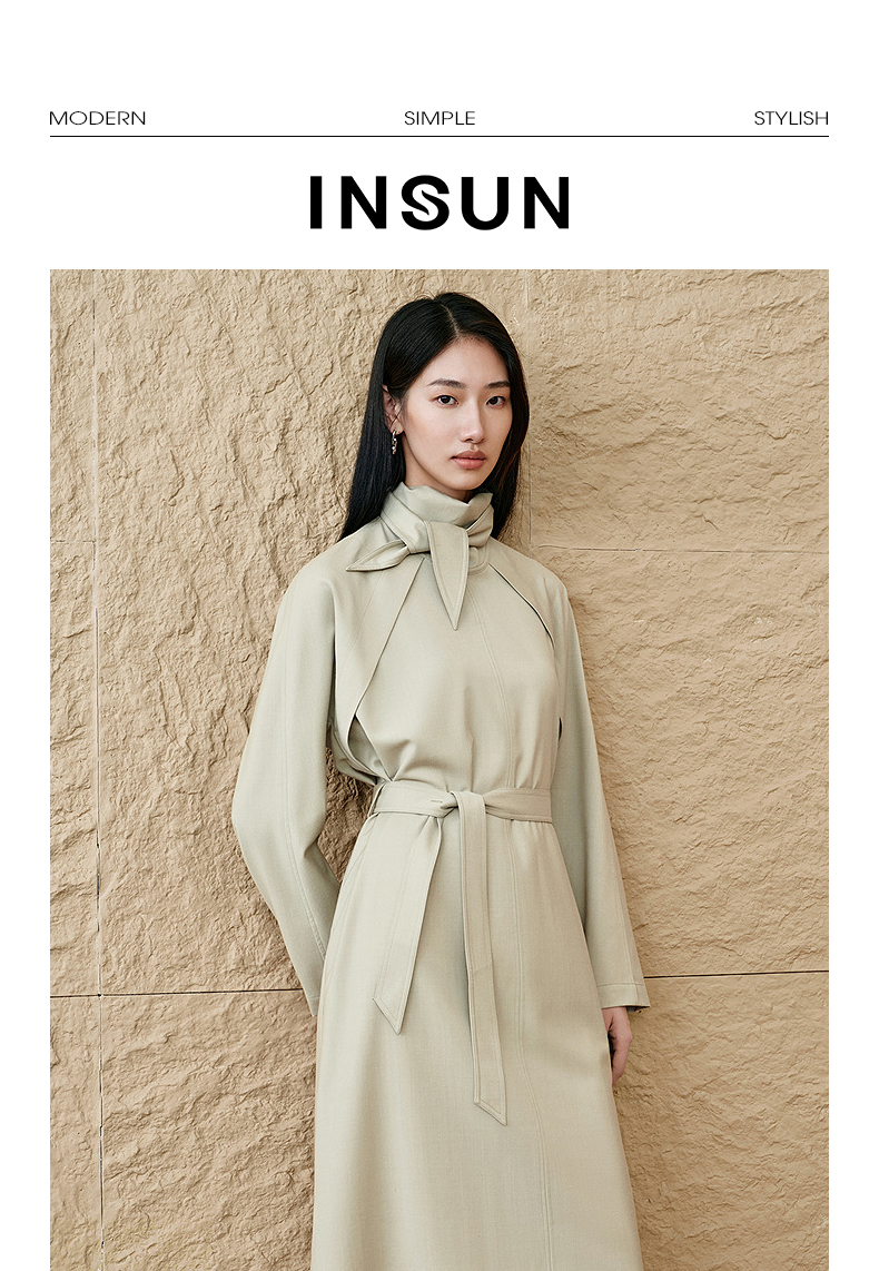 INSUN恩裳连肩袖设计感精纺羊毛连衣裙