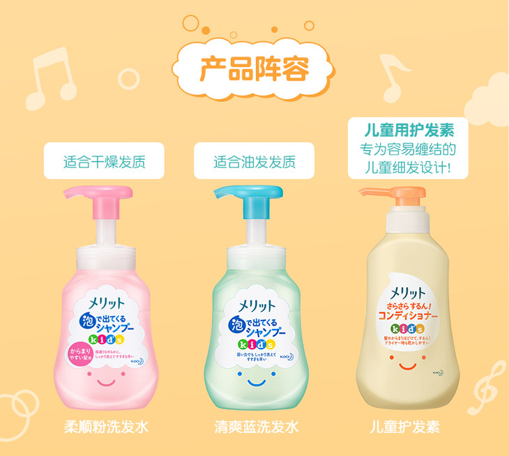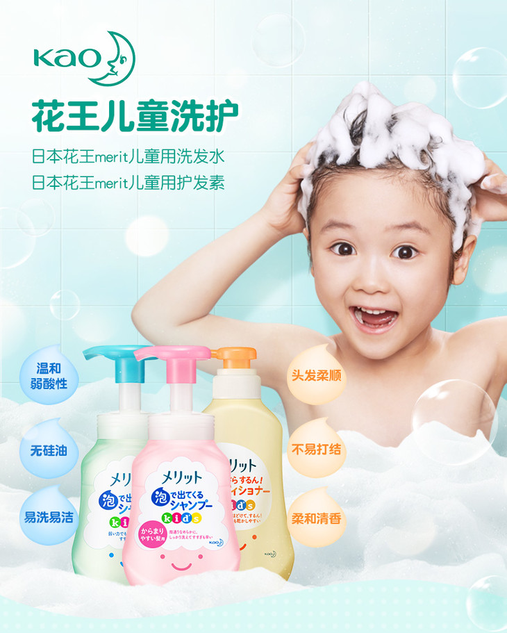 日本花王merit儿童泡泡洗发水无硅油温和300ml