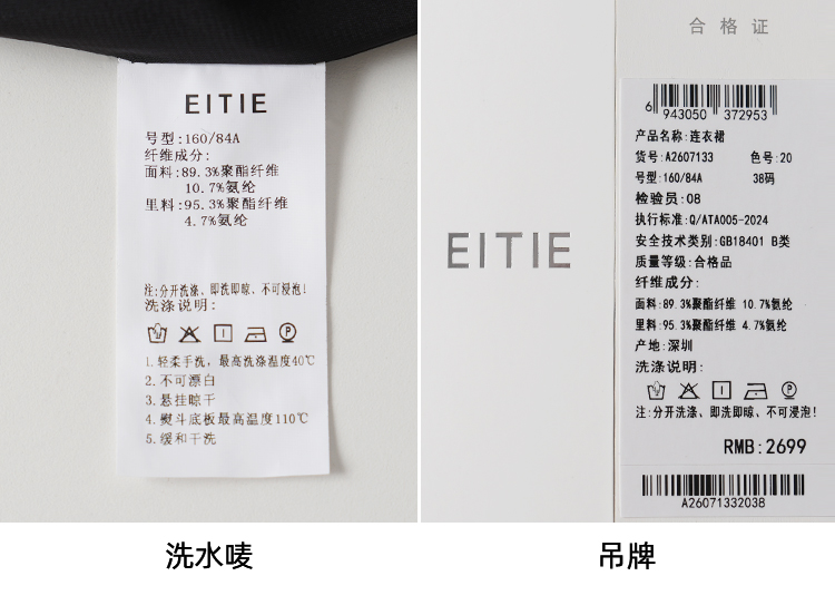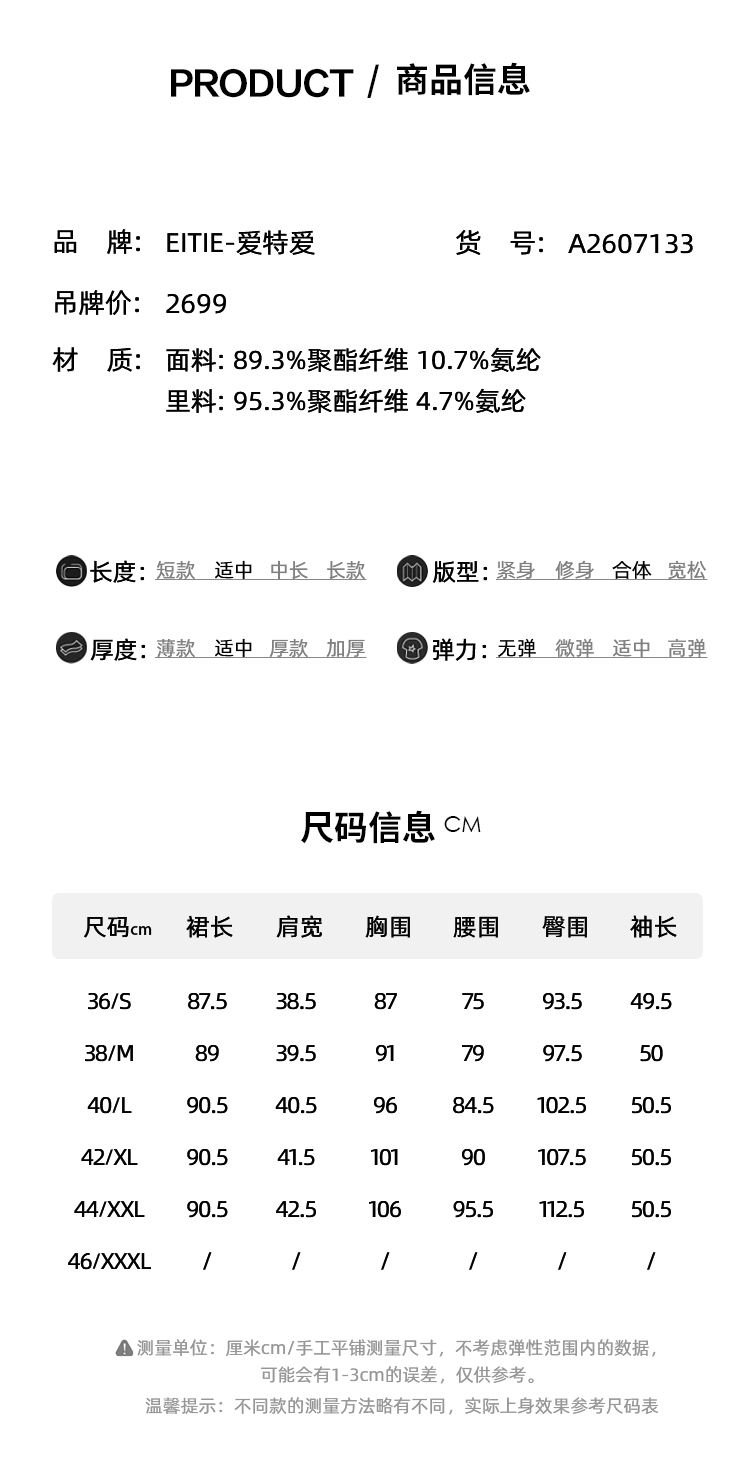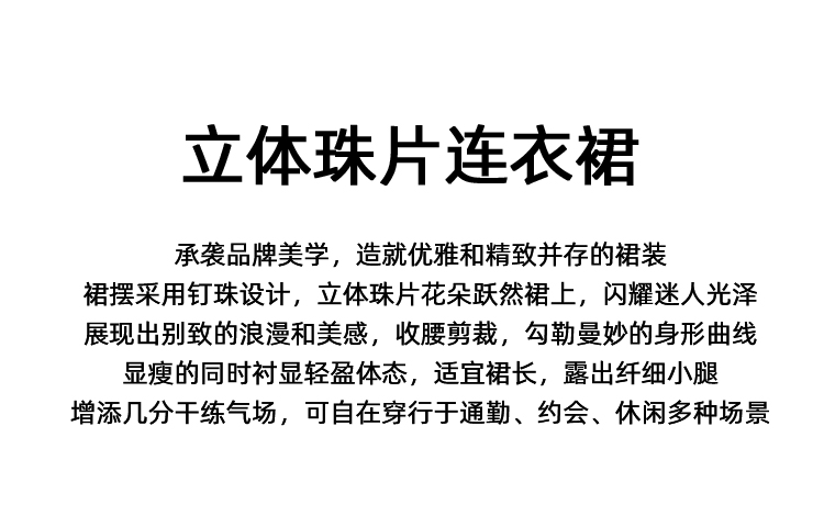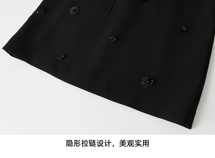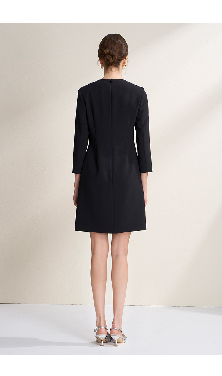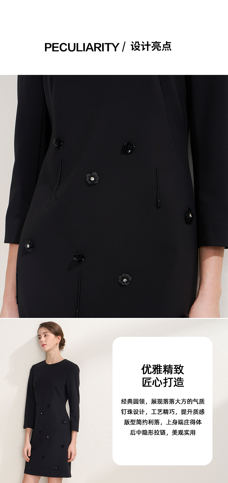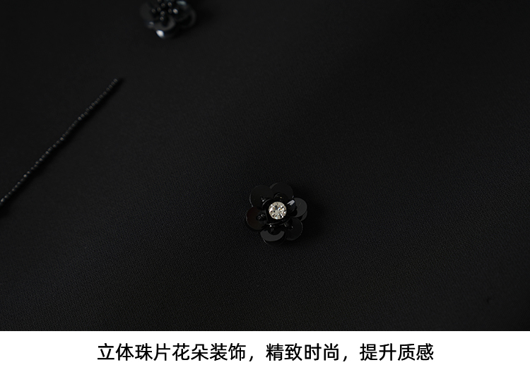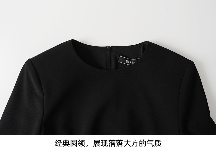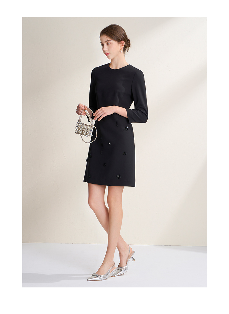 EITIE爱特爱气质圆领黑色亮片花朵装饰八分袖显瘦2026年春季新款连衣裙A2607133