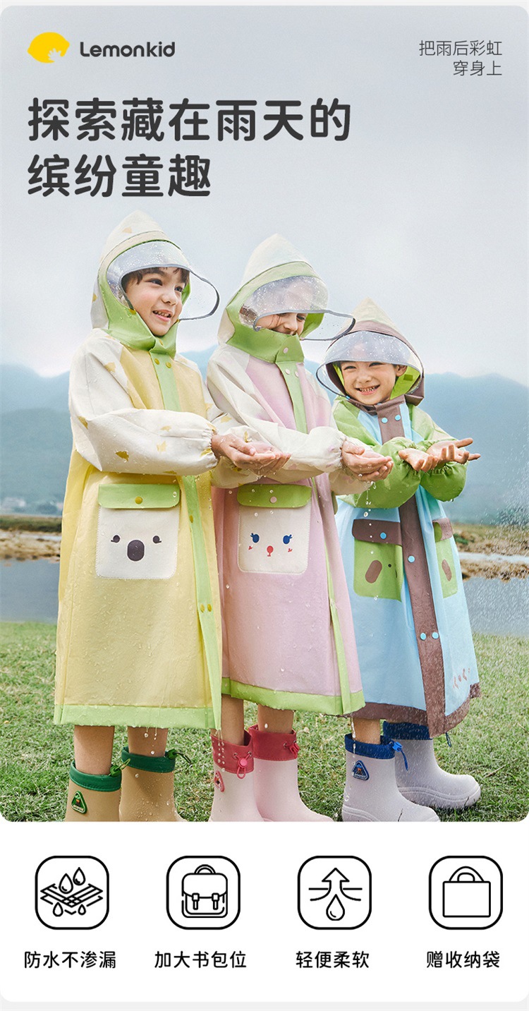 测评推荐-柠檬宝宝儿童雨衣男童女孩大童小学生带书包位上学专用雨披 配收纳袋
