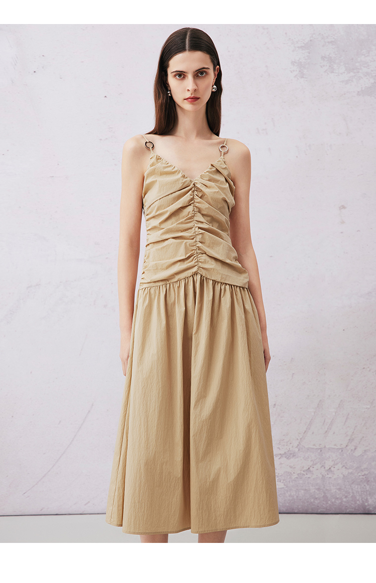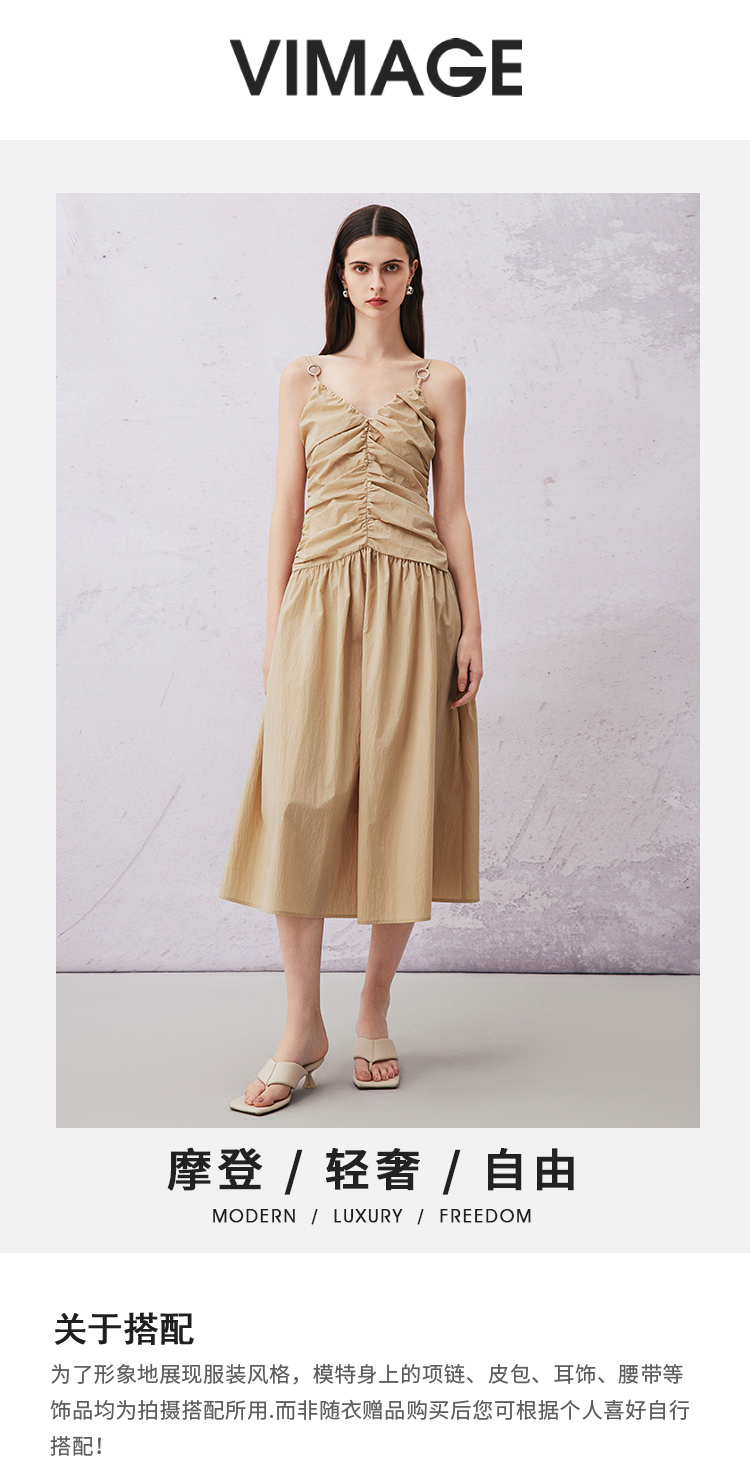 VIMAGE纬漫纪夏季新款V领显瘦洋气吊带连衣裙V2107718