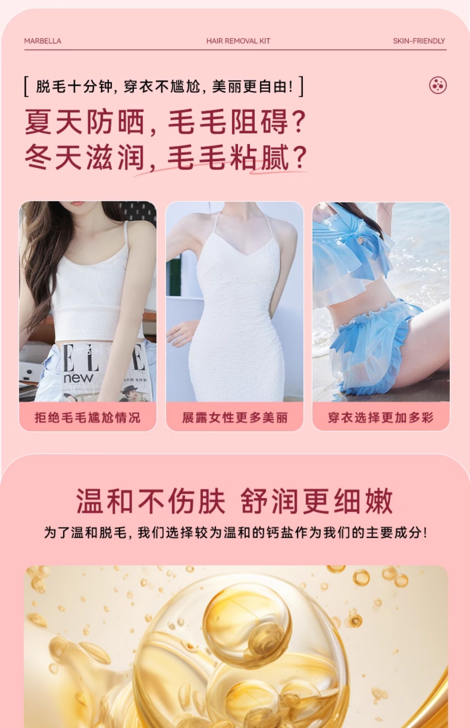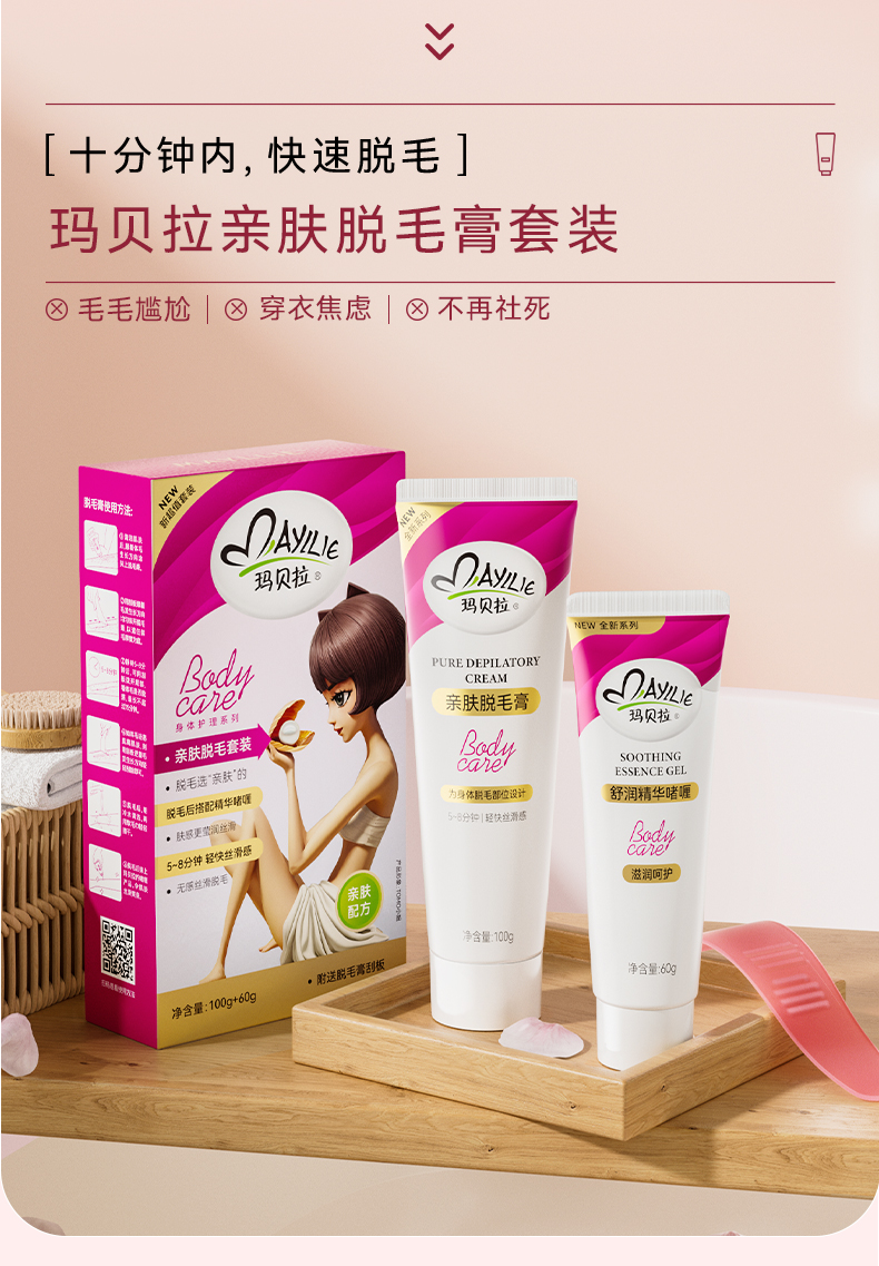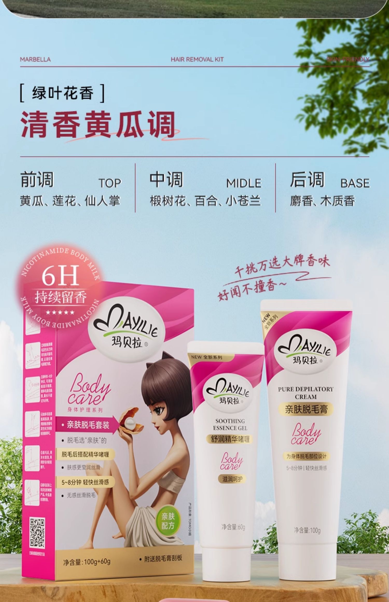 【私密脱毛】玛贝拉亲肤脱毛膏套装(脱毛膏30g+舒润精华啫喱15g)温和男女士腋下腿毛四肢手臂私密除毛脱毛学生